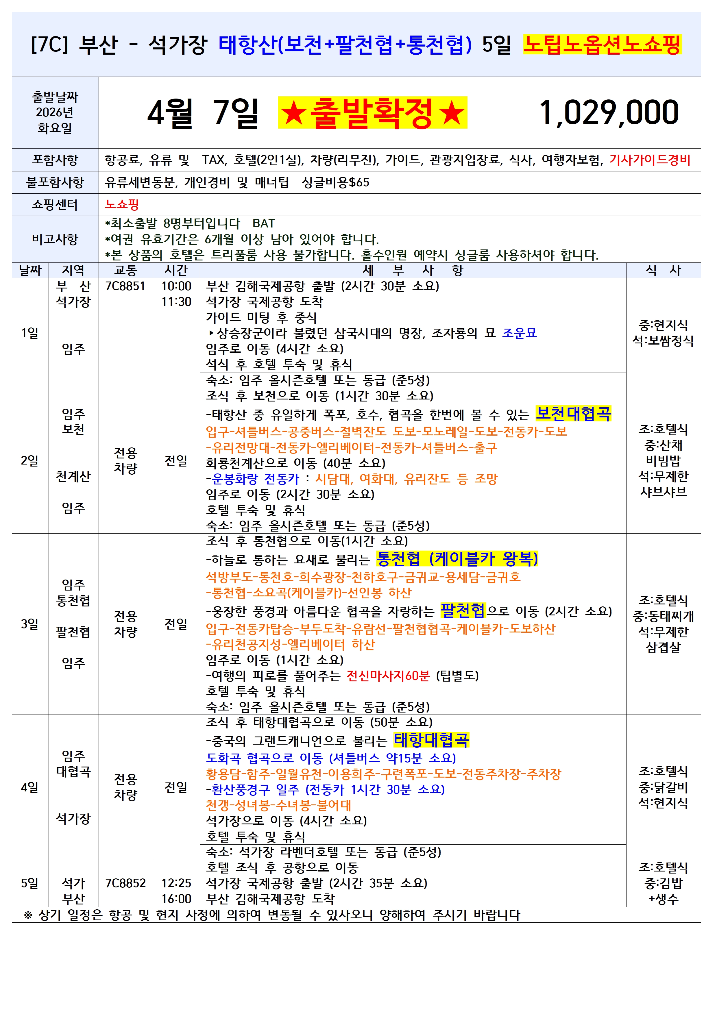 🔥선착순특가/집중모객🔥 [부산출발] 태항산 패키지