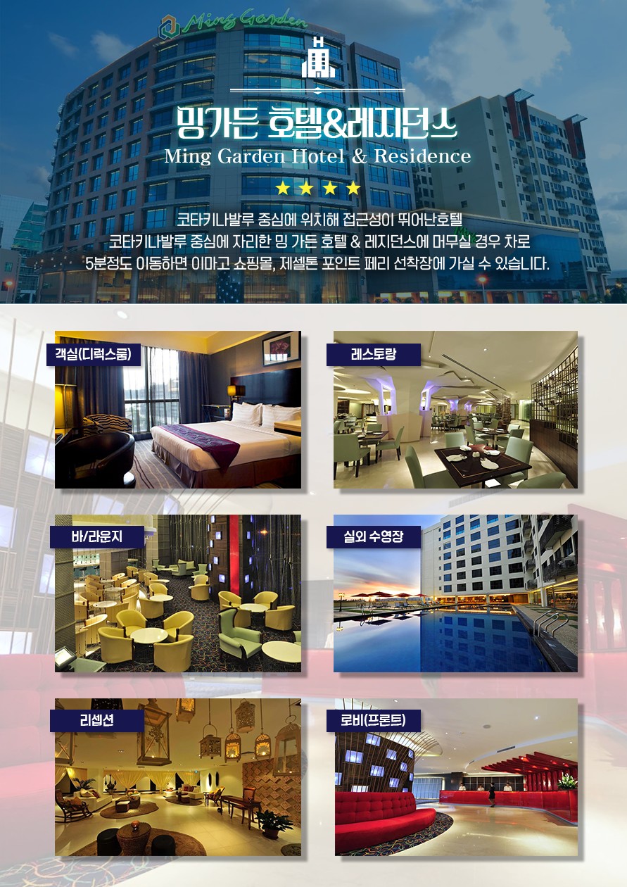 ✅ 아름다운 선셋과 다양한 해양스포츠, 반딧불이 있는 코타! 🏨 준특급호텔 - 밍가든 숙박 *시내위치,4성급 📍 친절한 현지가이드 + 노쇼핑 행사!! 🌇말레이시아 최고의 석양 명소 🌊맑고 투명한 에메랄드빛 바다 🏖️합리적인 가격의 휴양지 🍒현지 문화와 야시장 체험 ✈️직항 항공으로 더 가까이 ⛅연중 따뜻한 기후, 언제나 휴양 가능