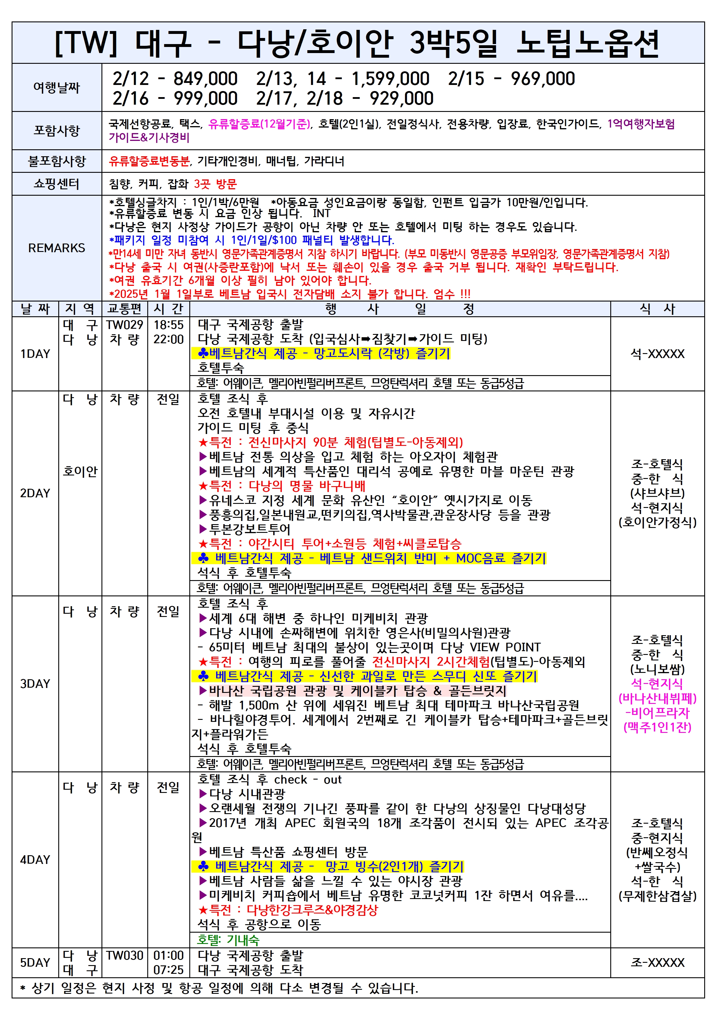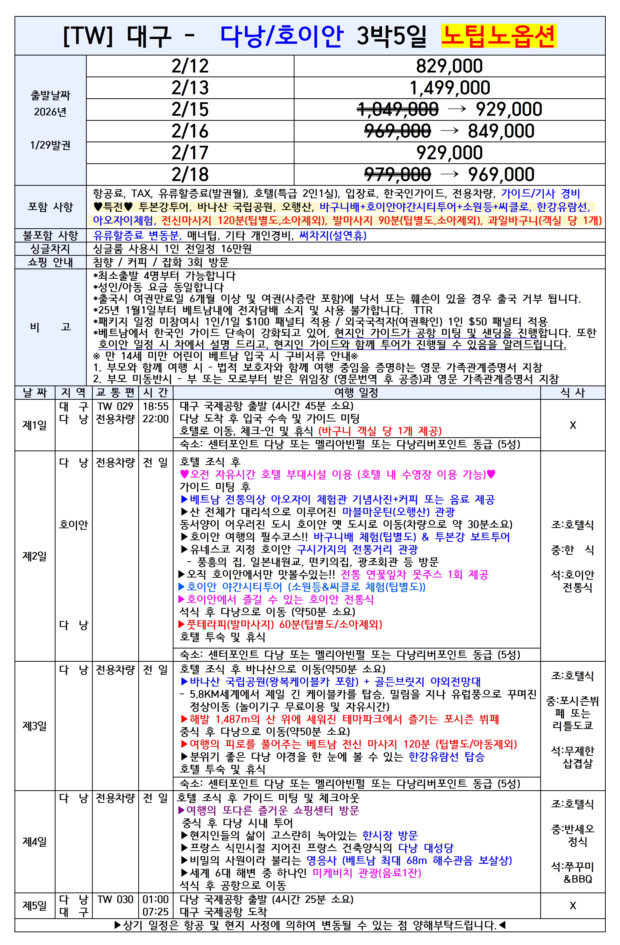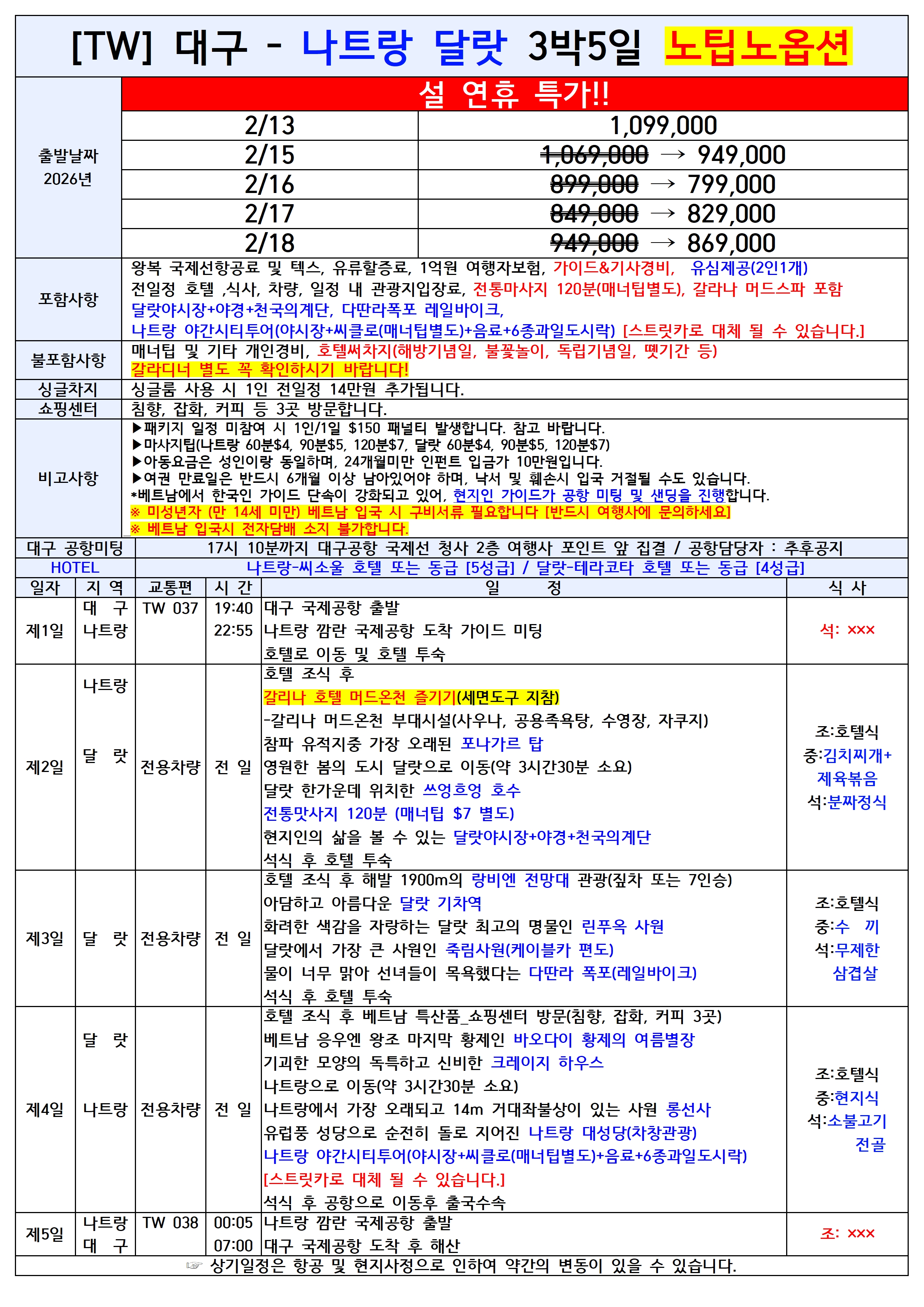 [2026년 설날연휴] 대구출발 동남아 패키지