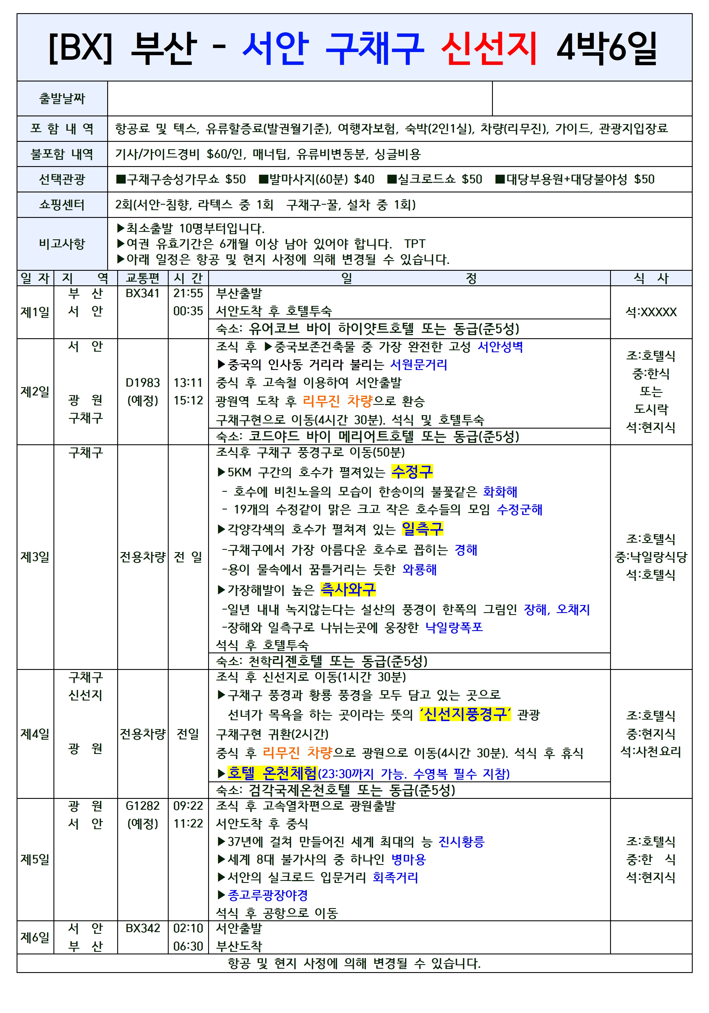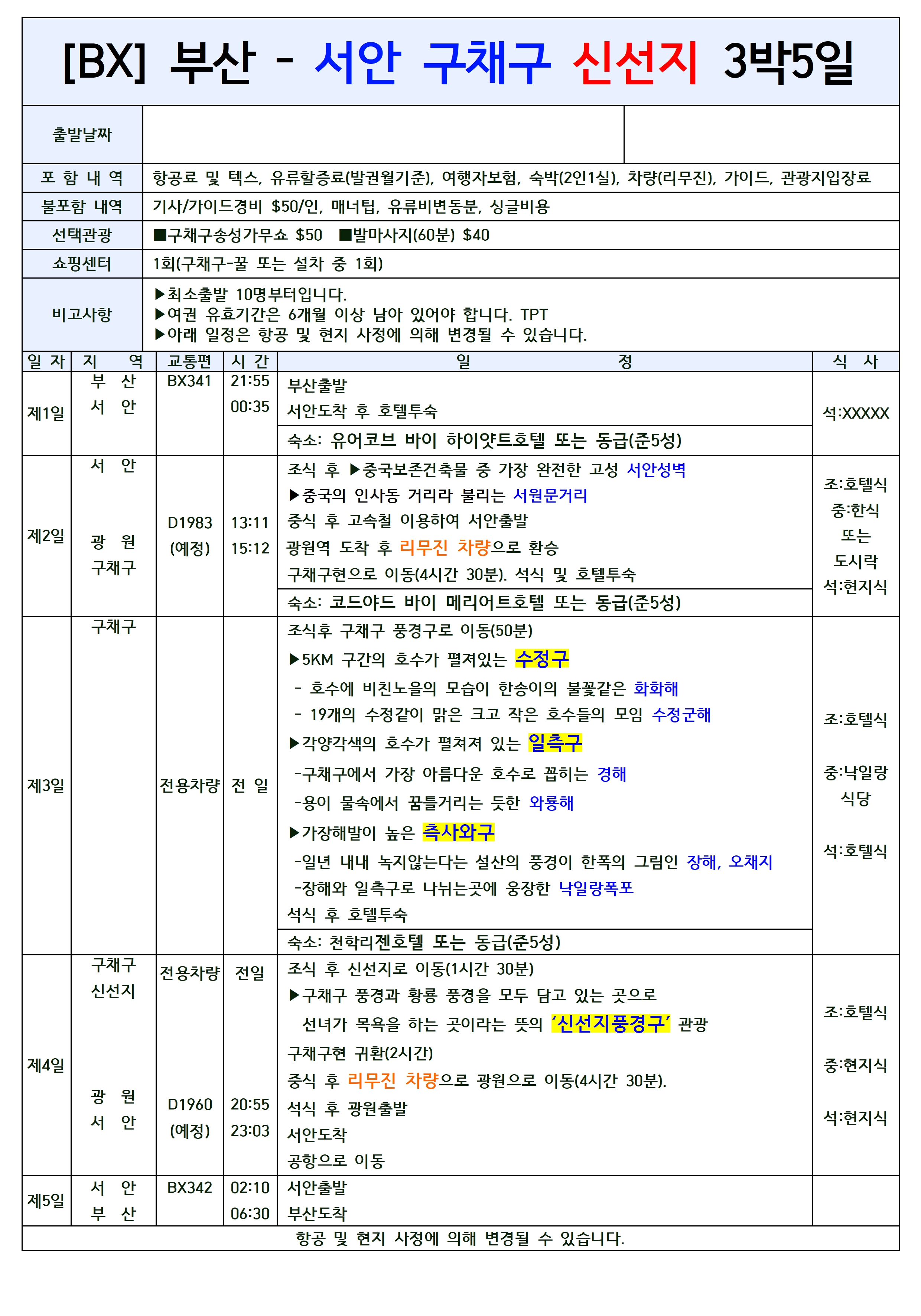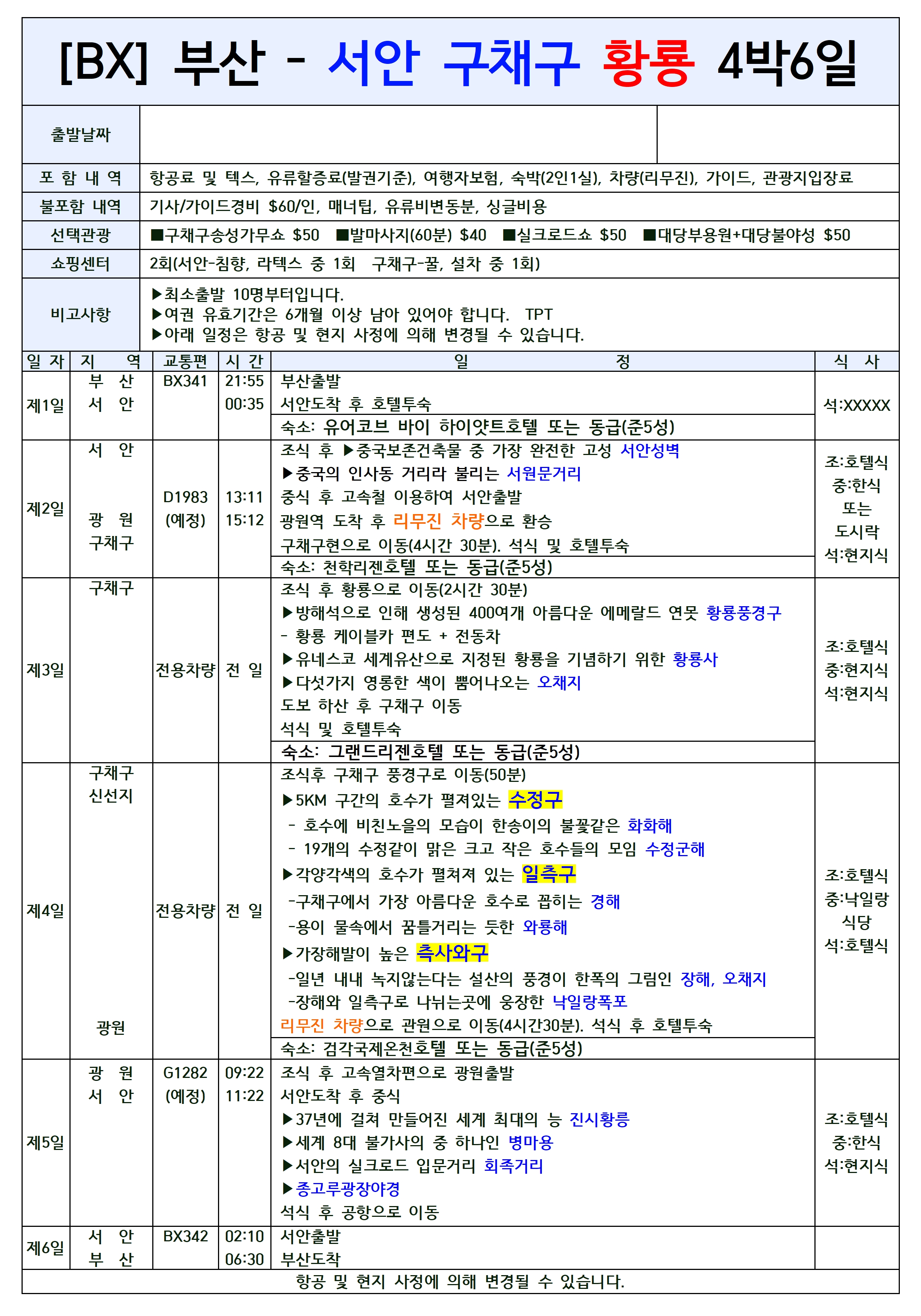 4️⃣ 역사의 도시 서안과 물의 도시 구채구를 함께 볼 수 있는 그야말로 1석 2조의 여행!