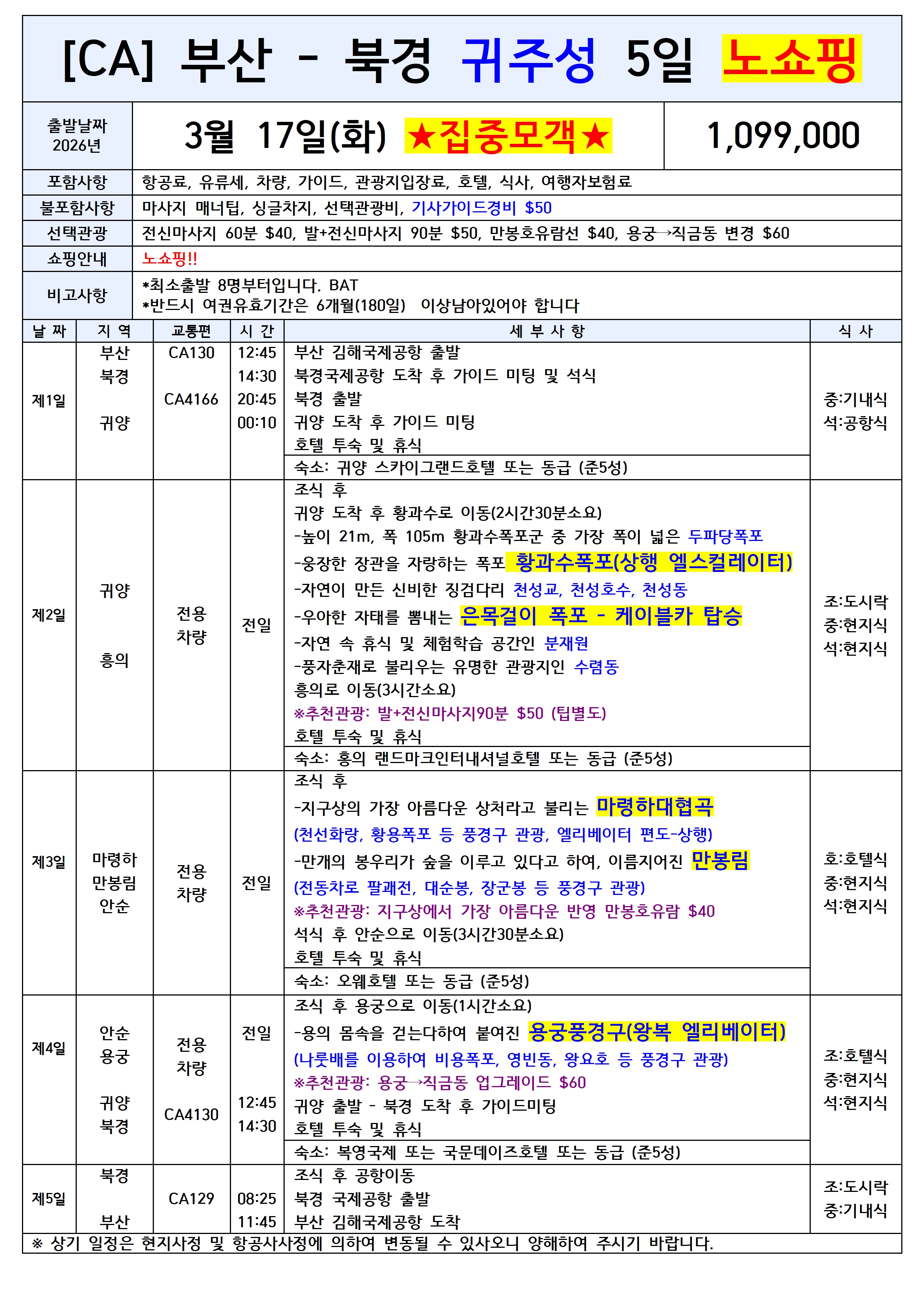 🔥출발확정/집중모객🔥[부산출발] 귀주성 만봉림 마령하 황과수폭포
