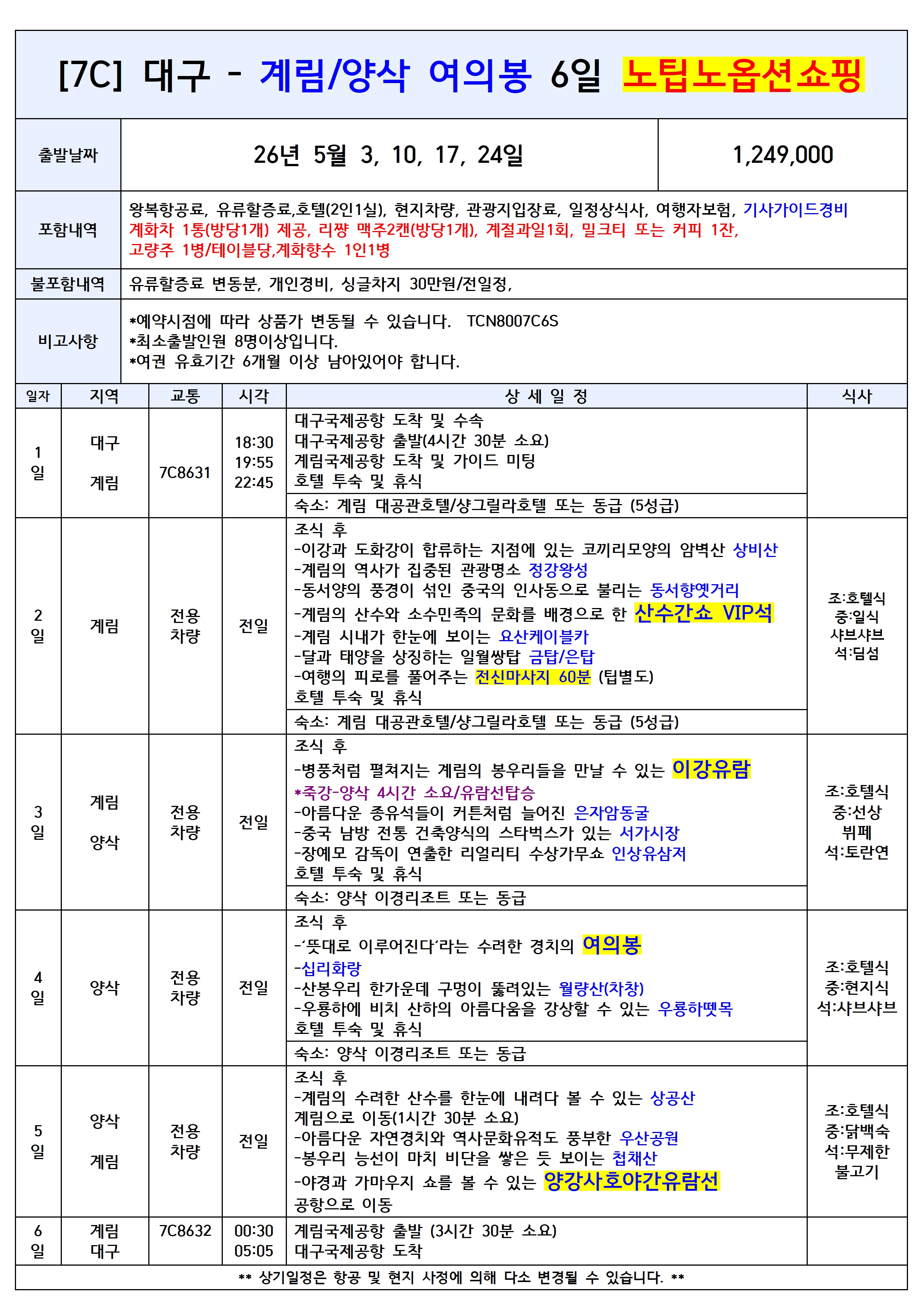 🍀천하제일의 산수! 중국 계림 5일 여행 ✨'산수화의 원조'라 불리는 중국 최고의 절경, 계림(구이린) 🏞️신비로운 카르스트 지형과 잔잔한 물길이 어우러진 아름다운 도시에서 자연이 주는 감동을 오롯이 느껴보세요