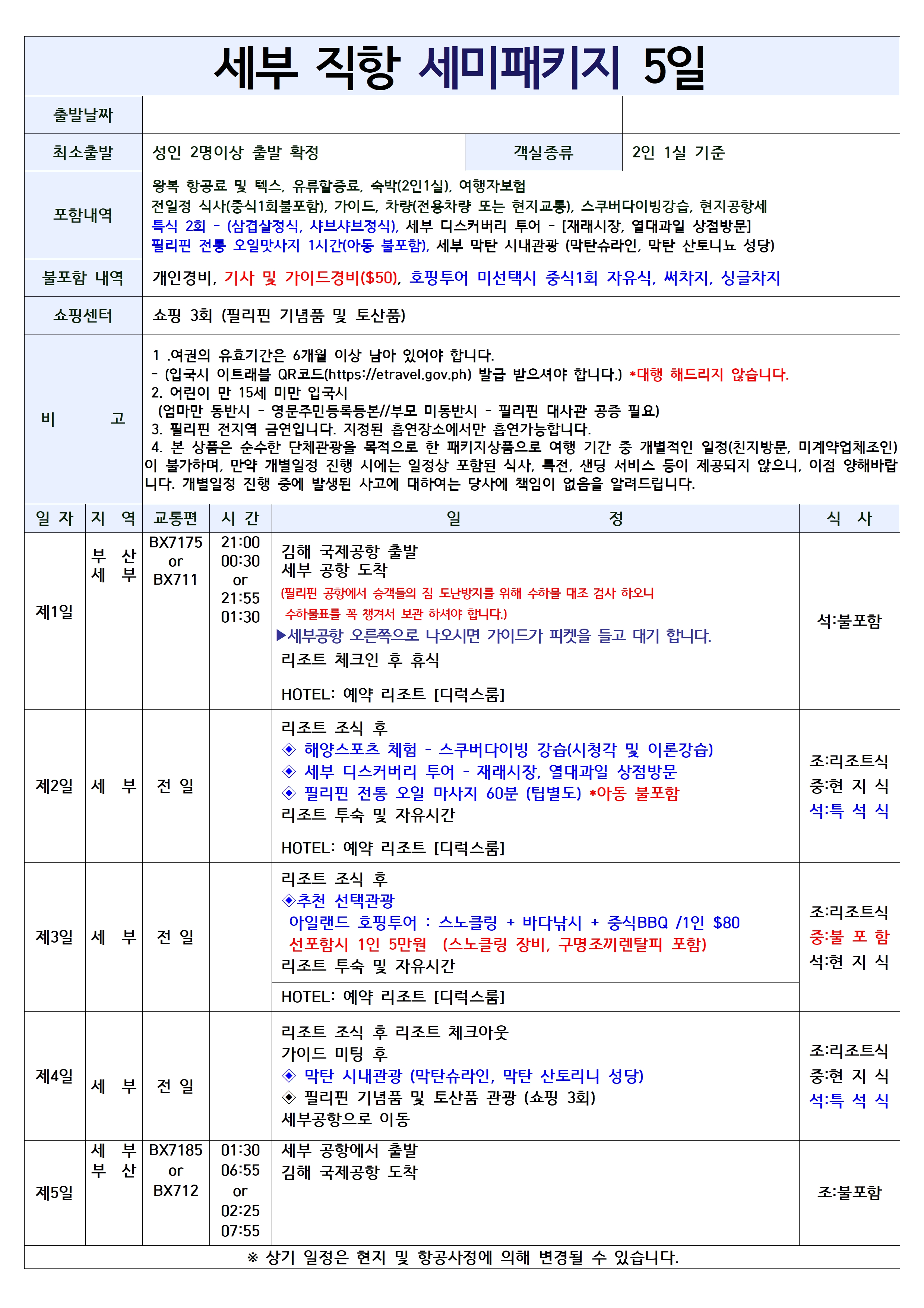 [부산출발] 세부 세미패키지 두짓타니 / 샹그릴라 5성급 에어부산