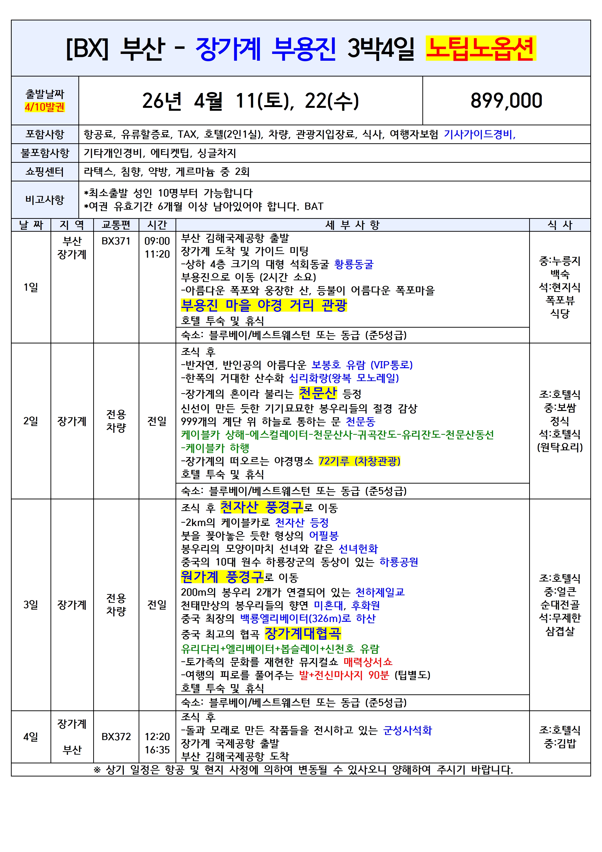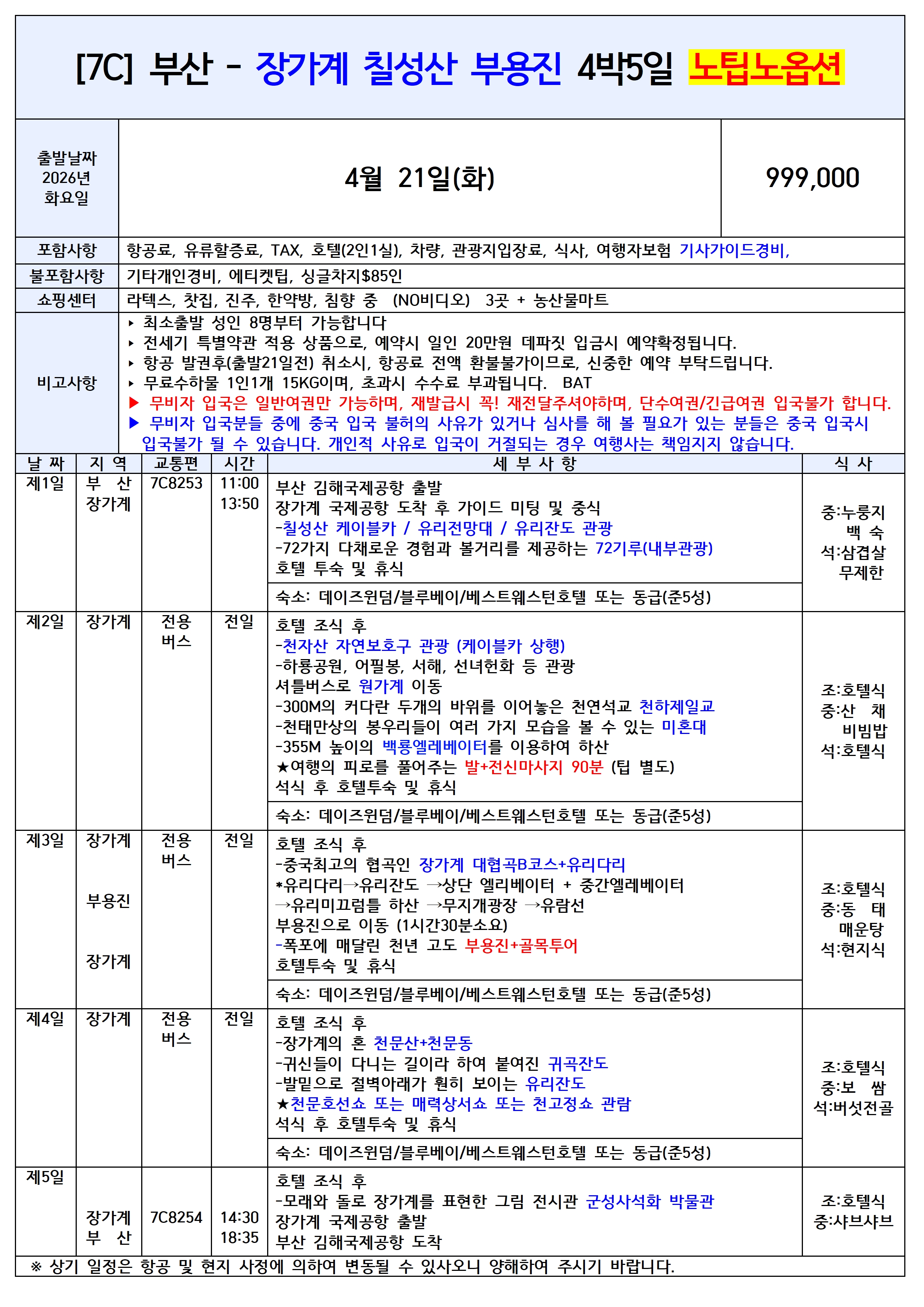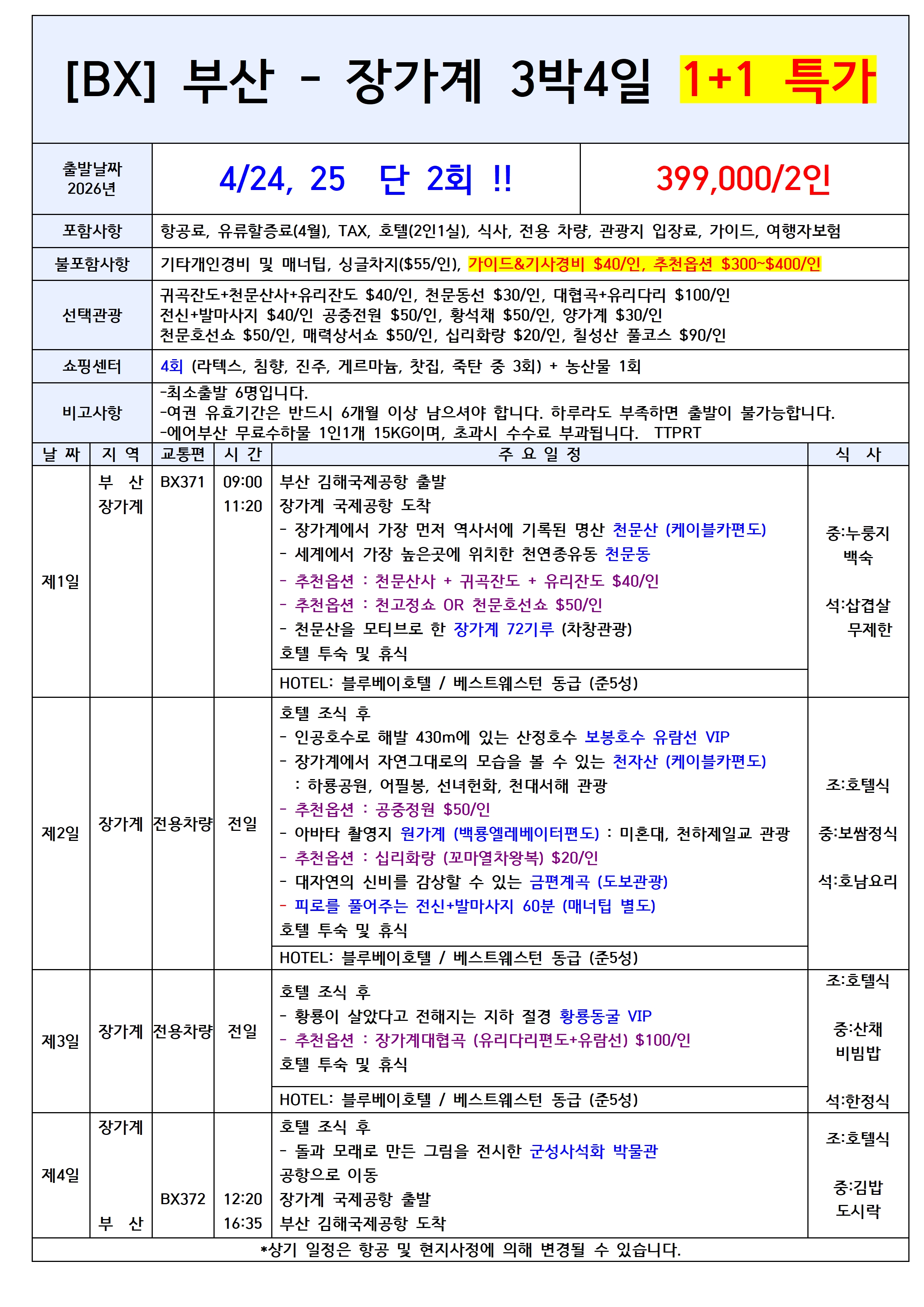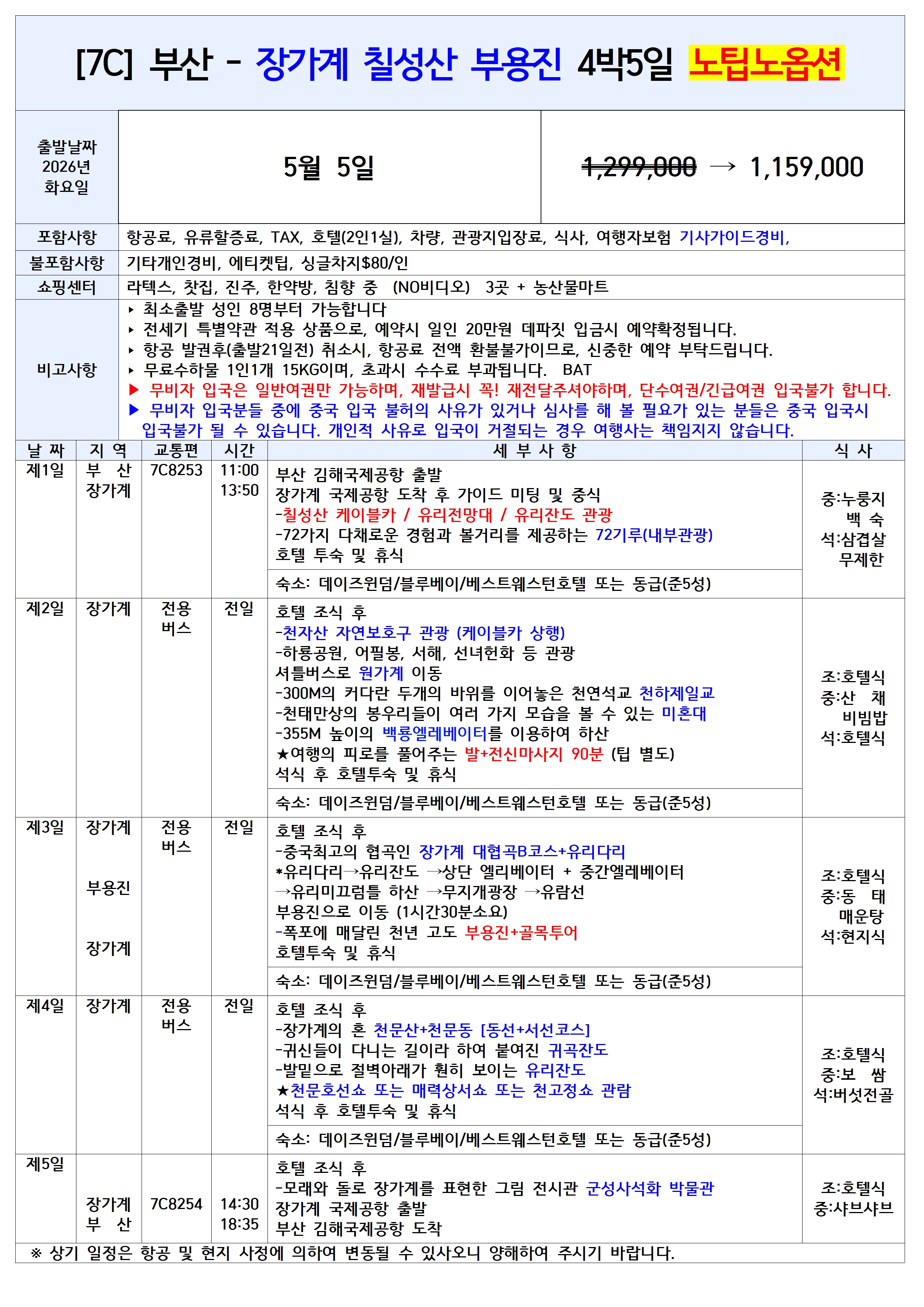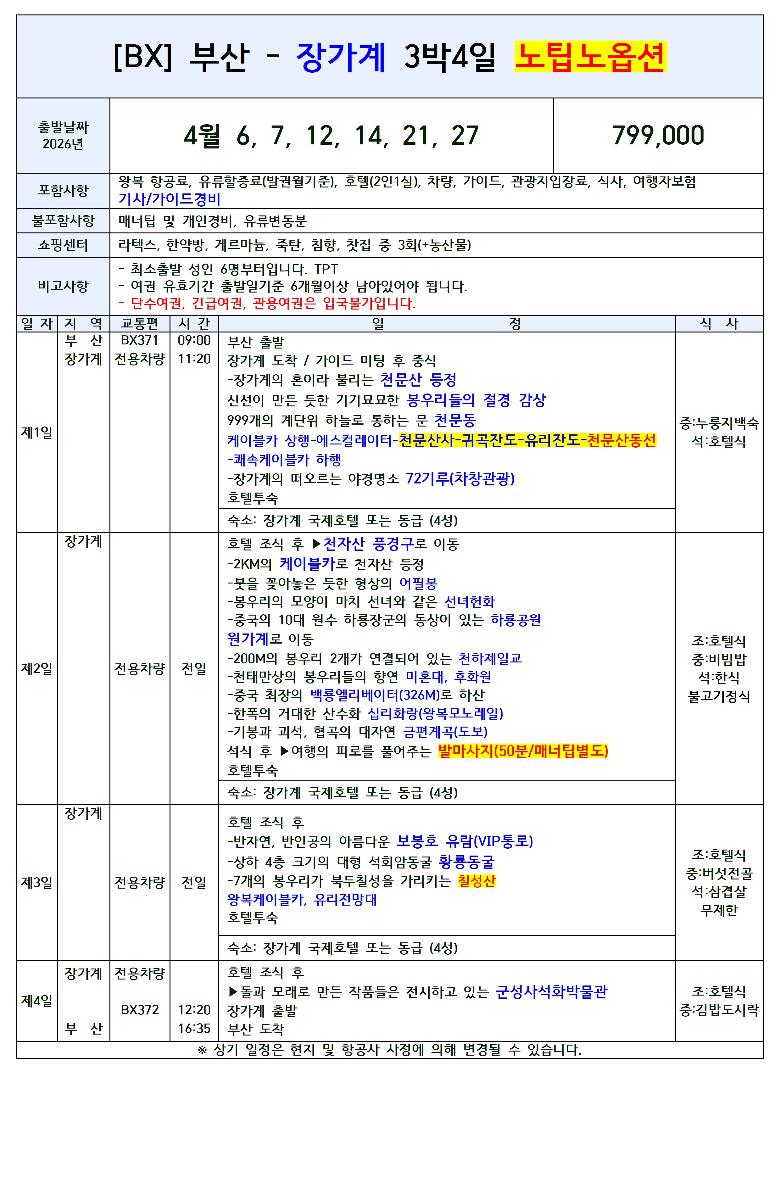 🔥선착순특가🔥[부산출발] 장가계 특가