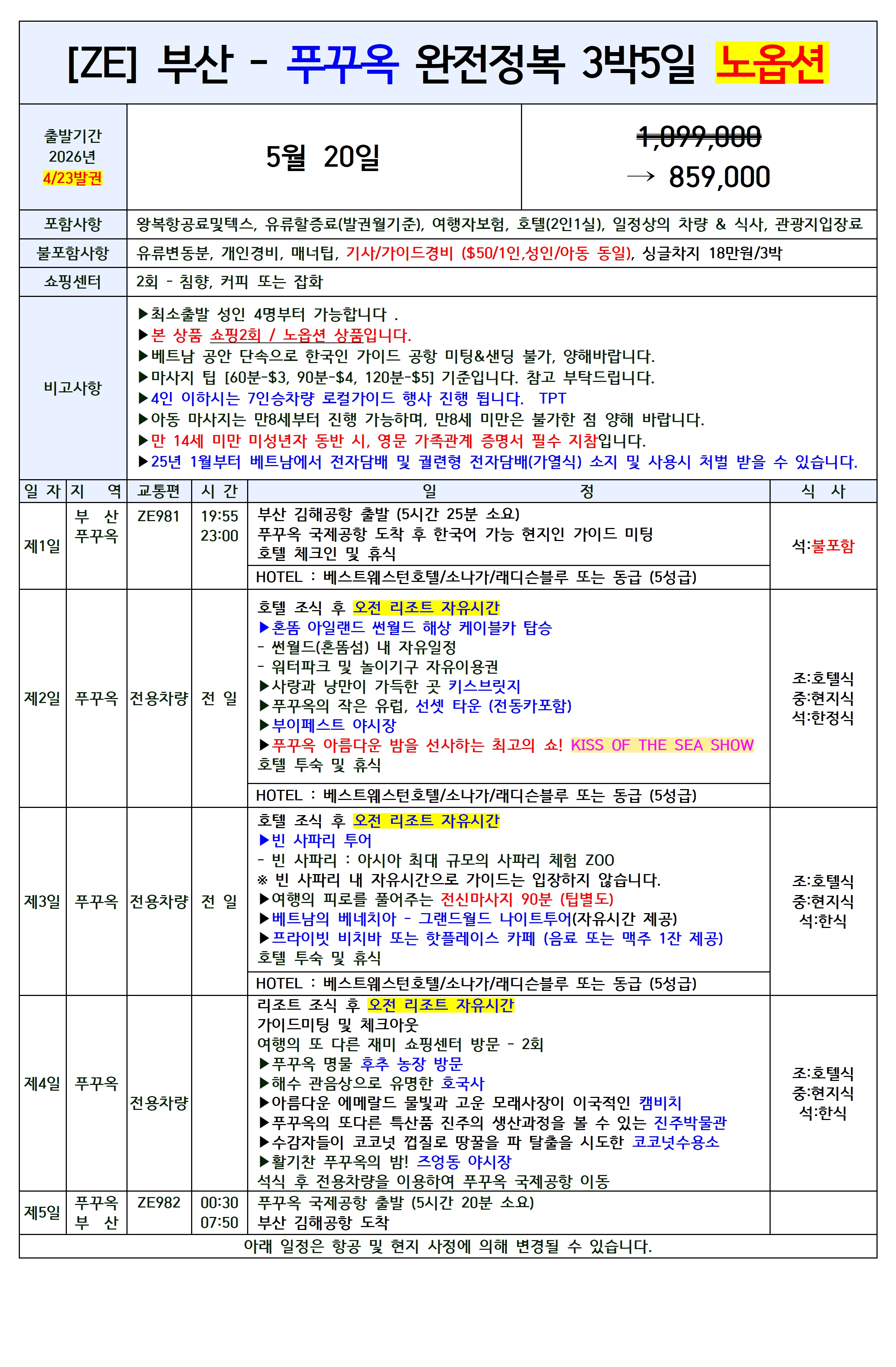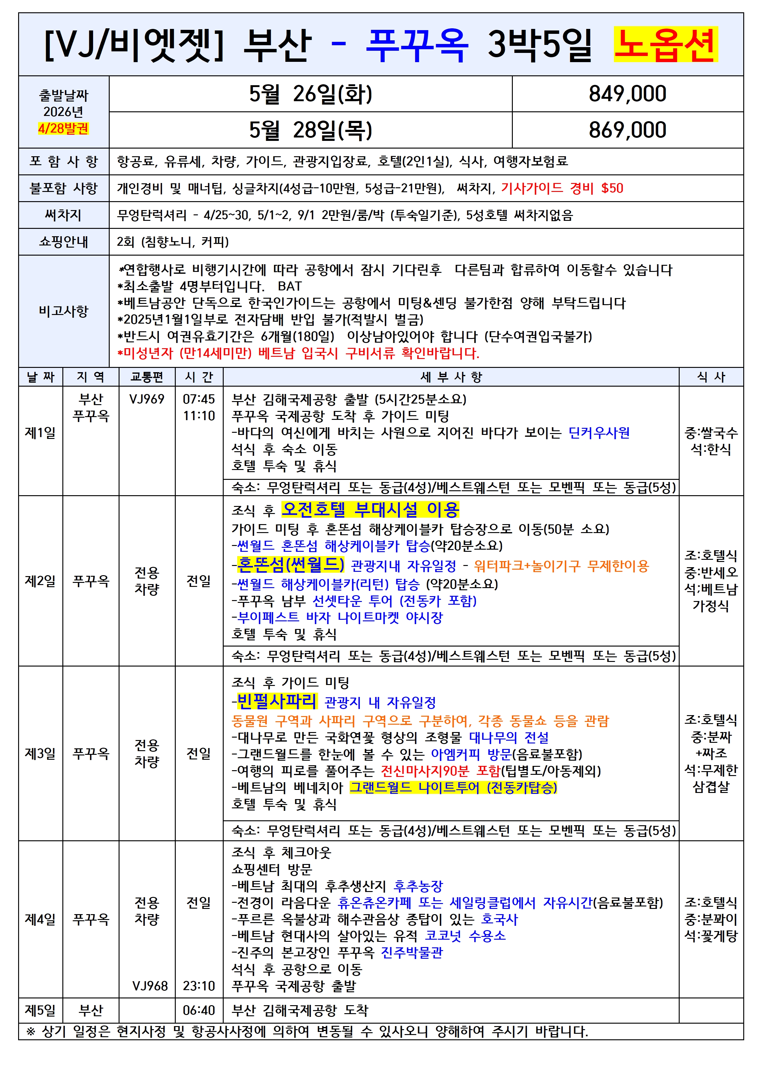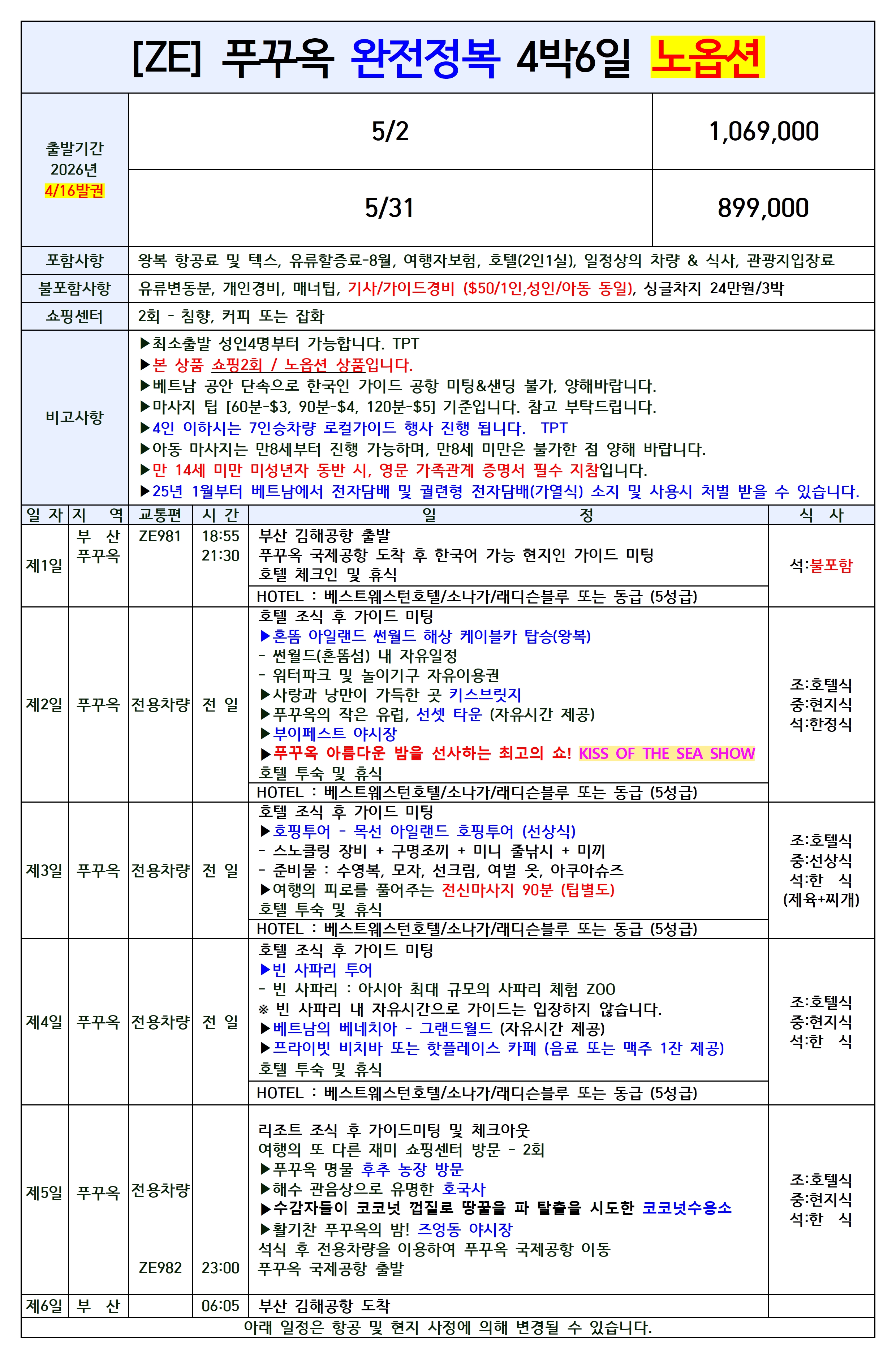 🔔스팟특가/집중모객🔔[부산출발] 푸꾸옥 완전정복