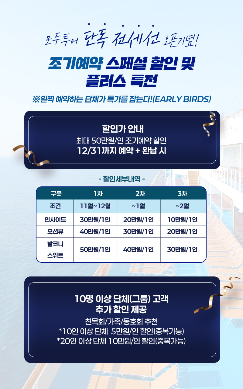 🚢 일본 북해도 퍼펙트 크루즈 일주 오타루+하코다테 🚢 ☀️ 여름의 시작을 북해도에서 제대로 시원하게 📅 2026년 6월 19일(금) 출발 ~ 25일(목) 6박7일 💖크루즈 전문 가이드 승선부터 귀국까지 인솔 및 현지 가이드 서비스를 제공 💖한국어 선상신문, 한국인 승무원 상주, 한국어 기항지(선택 시) 관광 서비스 💖정찬식사, 갈라디너쇼, 엔터테인먼트 프로그램 참가