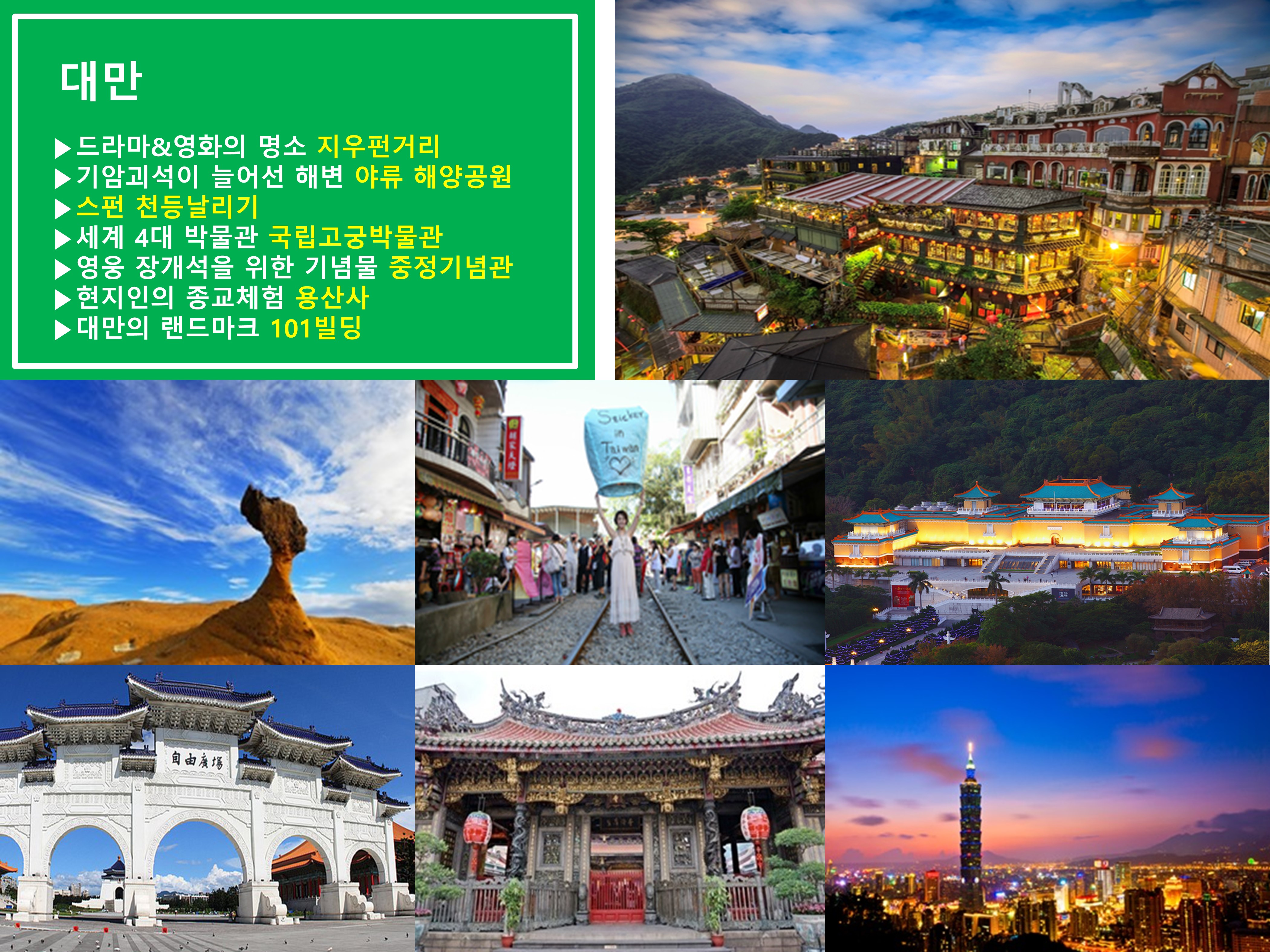 🎁단수이(영화속 명소)관광 🎁특식 2회(딤섬,샤브샤브)포함 🎁스펀(천등날리기)관광 🎁지우펀, 야류해양공원, 서문정거리