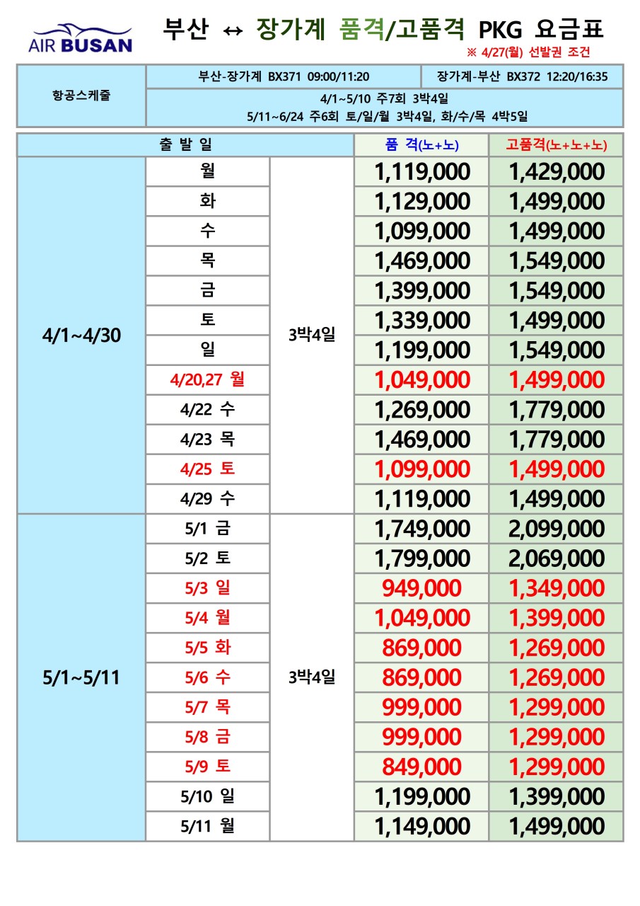 ● 4박 일정 시, 부용진 일정 추가