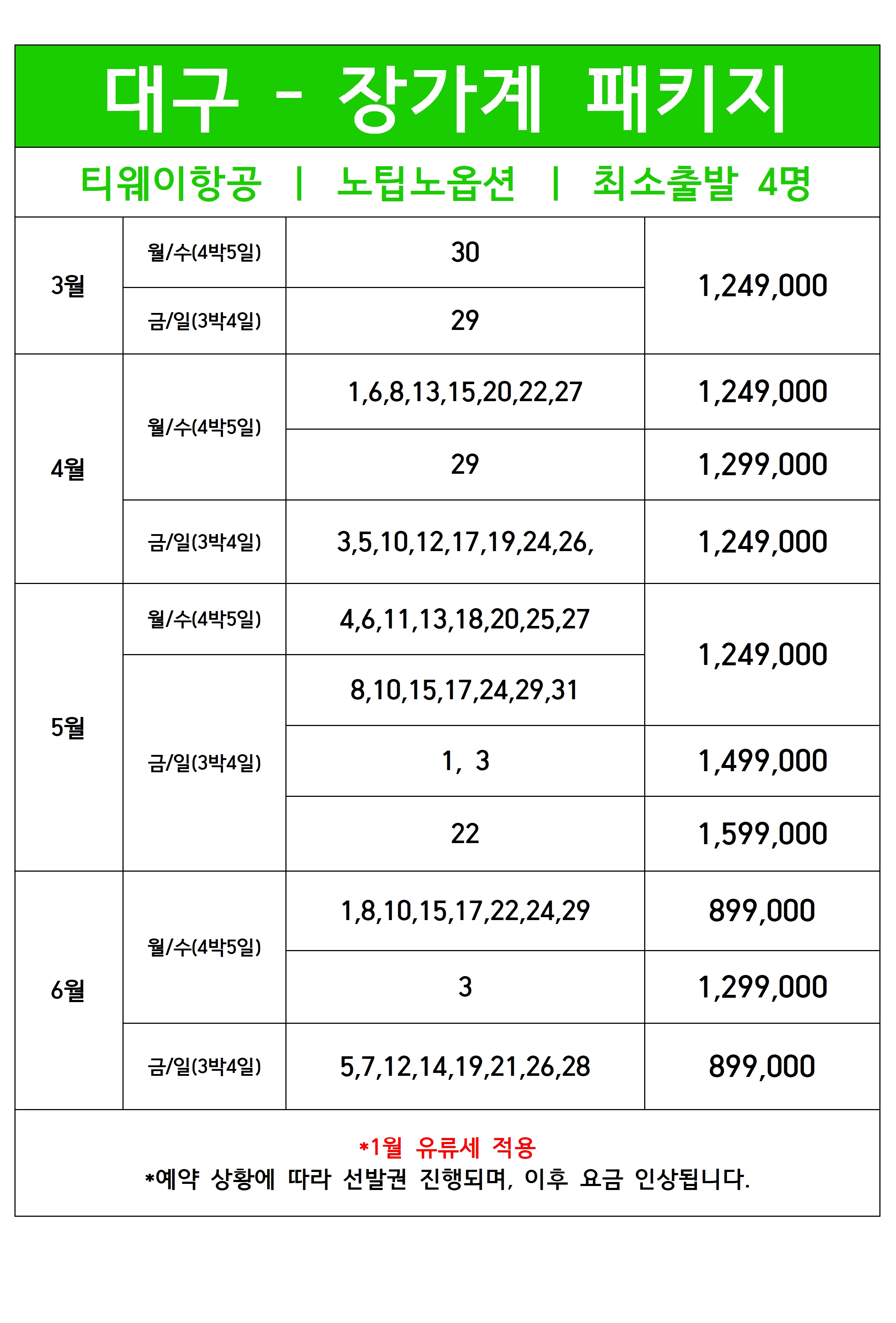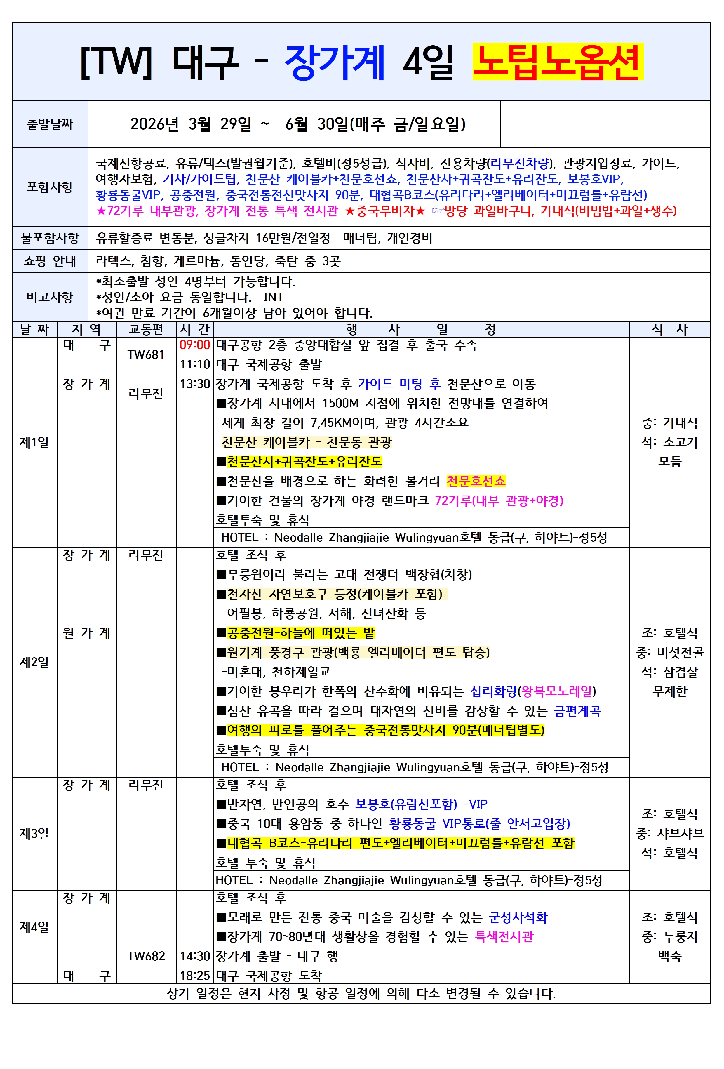 [대구출발] 장가계 4일/5일 노팁노옵션 티웨이항공