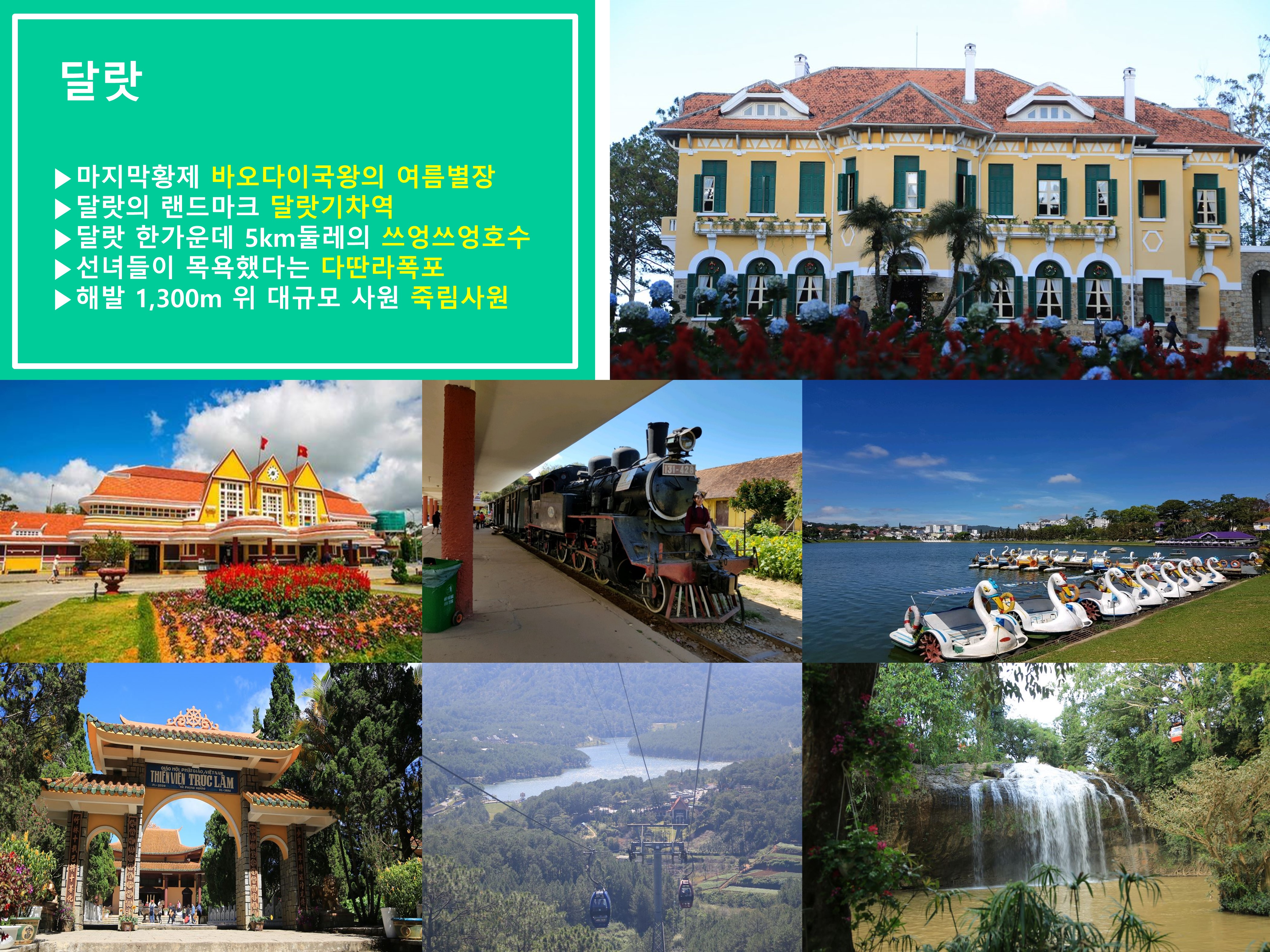 📍NO팁/NO옵션! 📍5성급 호텔 📍전신마사지 120분+90분 총 2회(팁별도) 📍다딴라 폭포 레일바이크 포함 📍죽림사 케이블카 포함 📍랑비엥 지프투어 포함 📍열대과일 시식 📍달랏 야경&야시장 투어 📍나트랑 야시장 투어