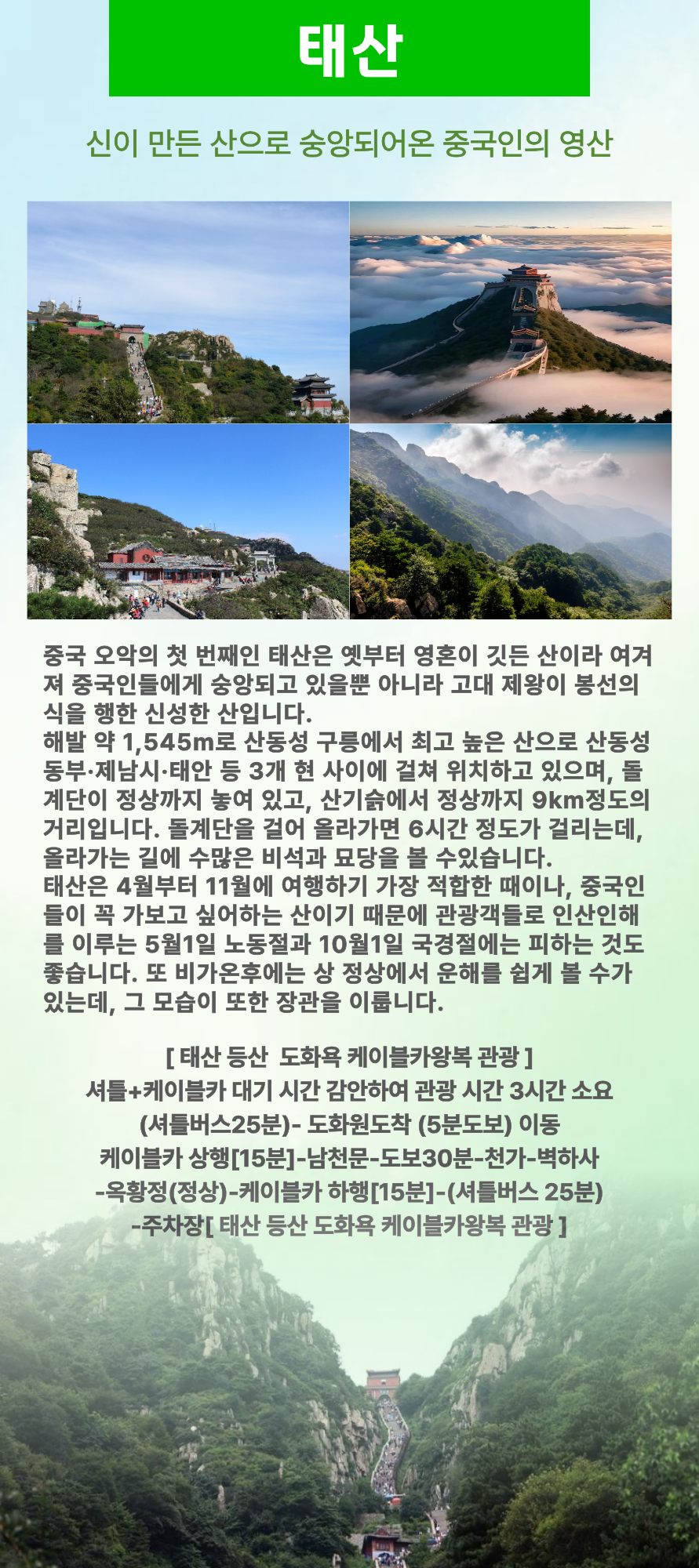 공자가 사랑했던 산 중국제일 태산, 웅장한 광경과 아름다운 산수화의 조화로 아름다운 여행 떠나보세요.