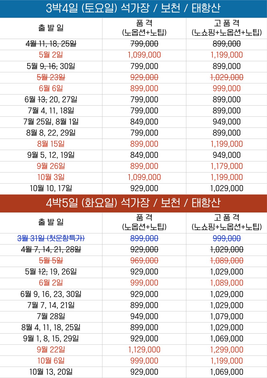 📍매주 화요일(4박5일), 토요일(3박4일) 스케줄