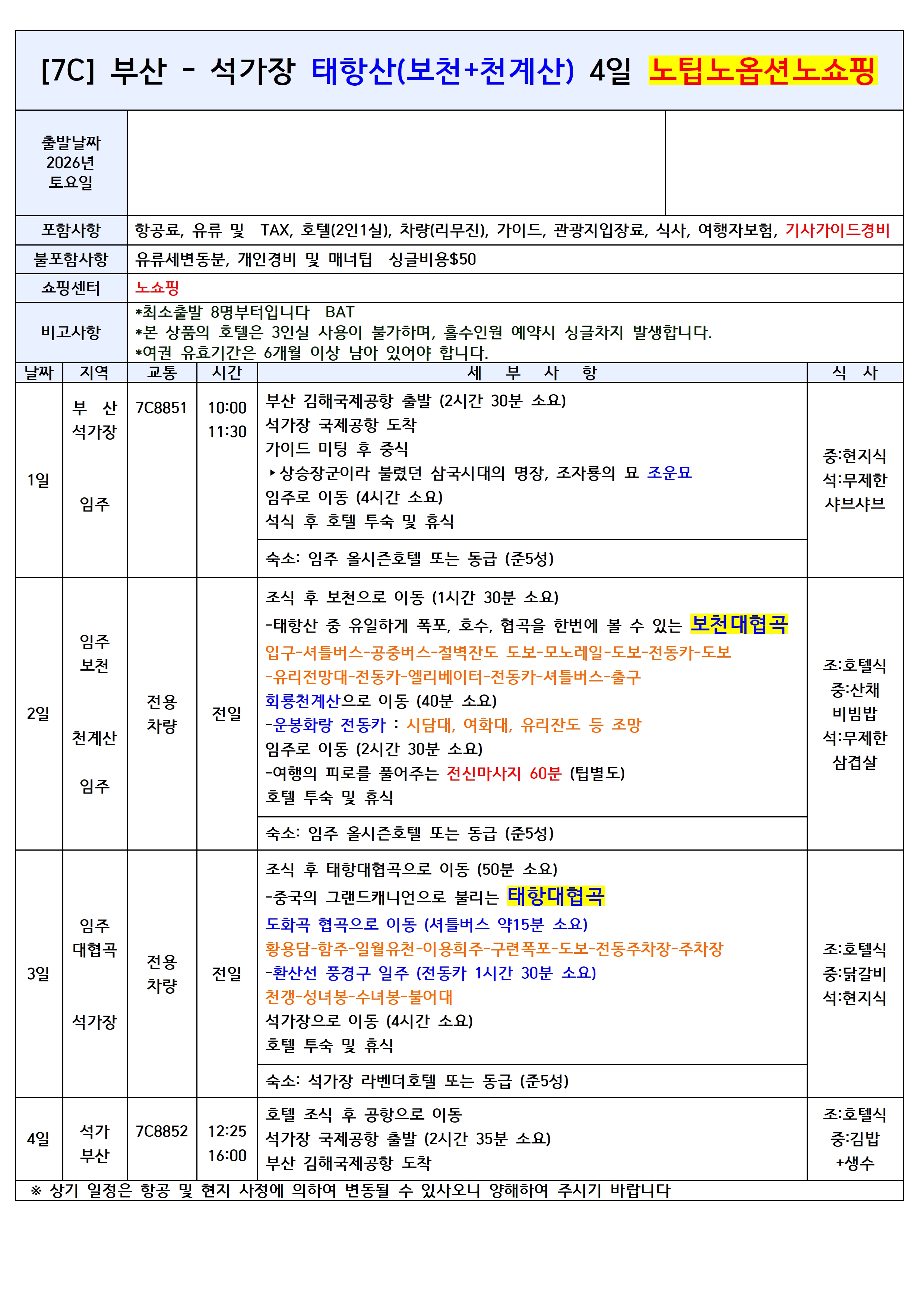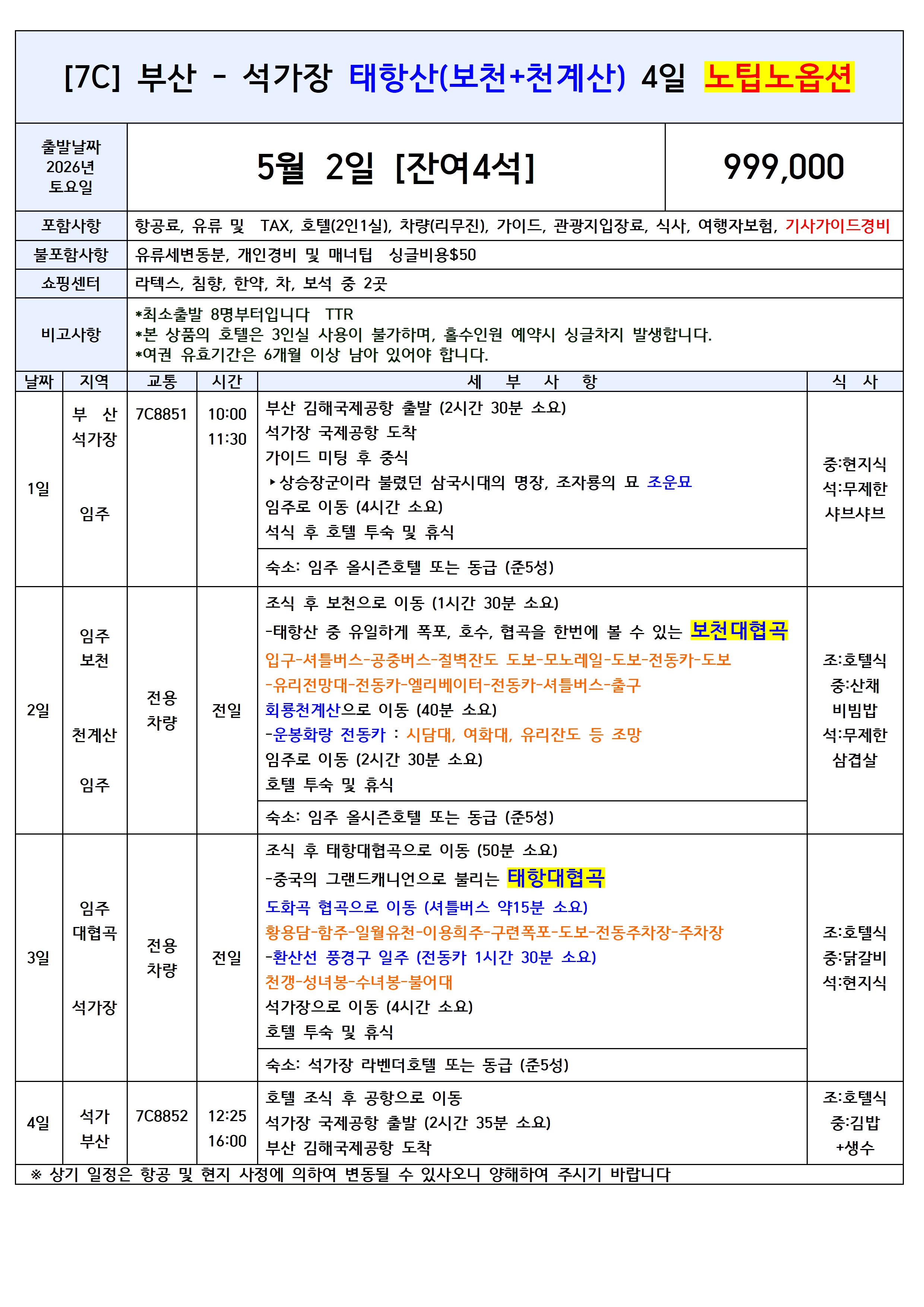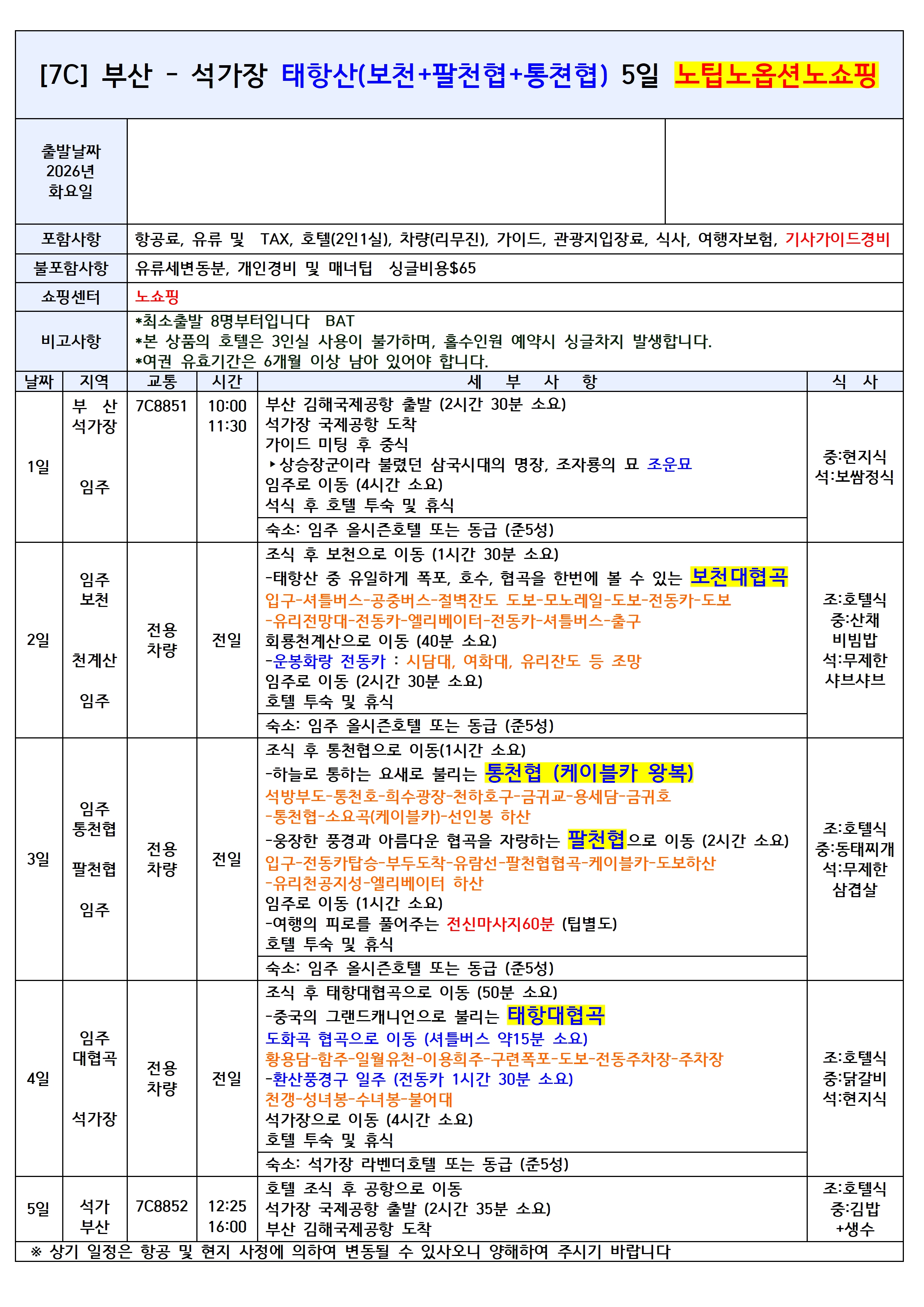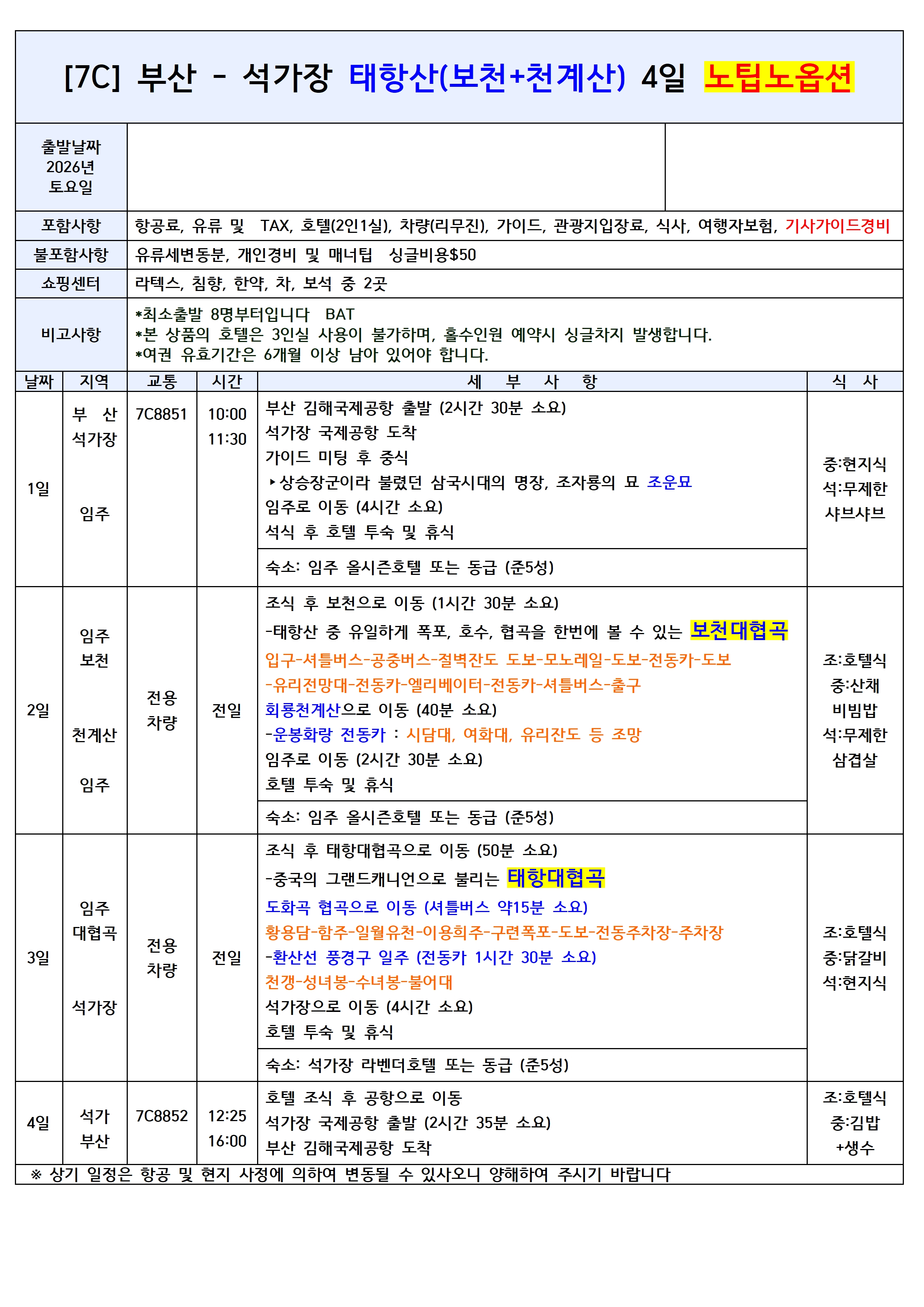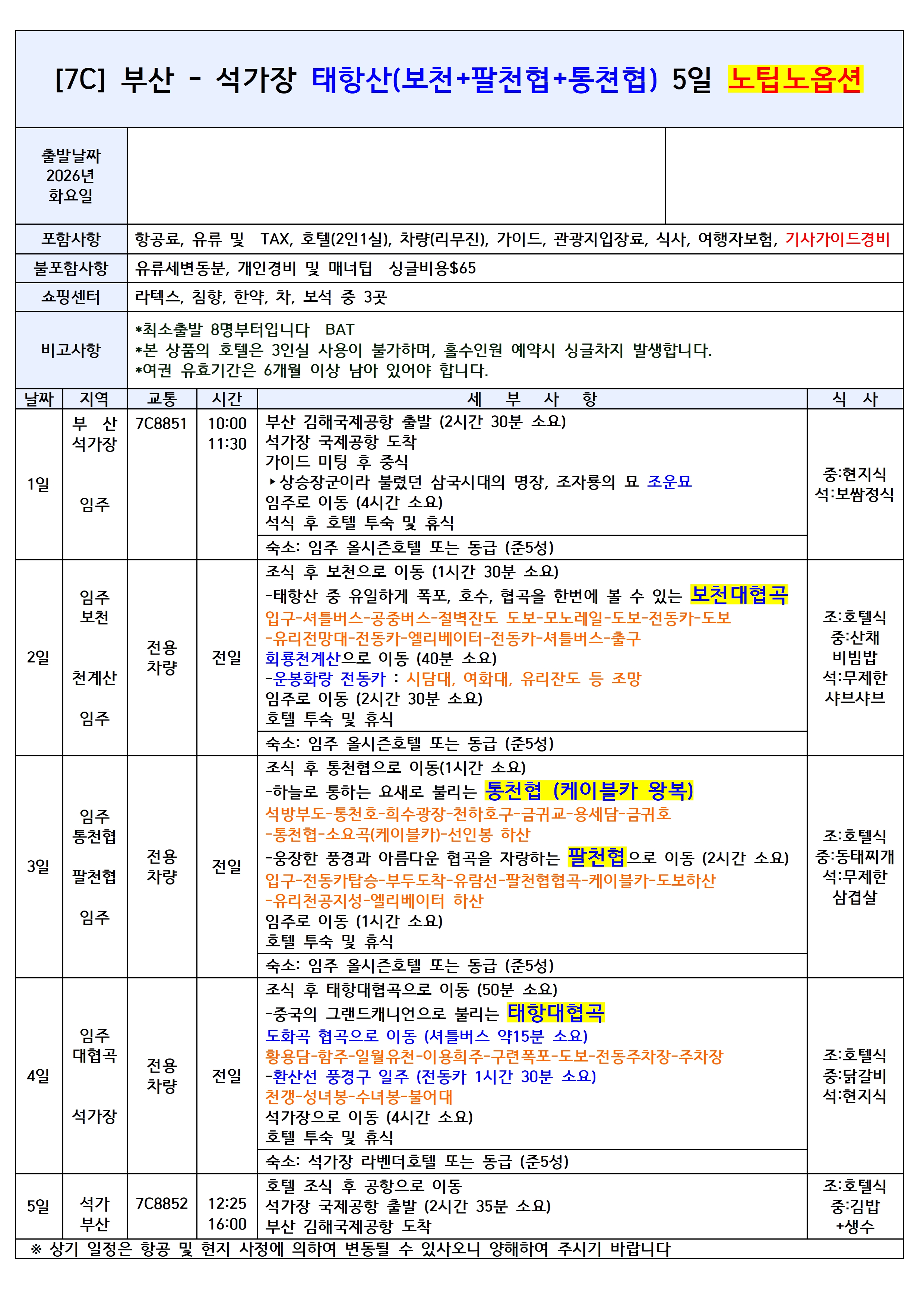 ✔️태항산 여행의 필수 옵션 포함