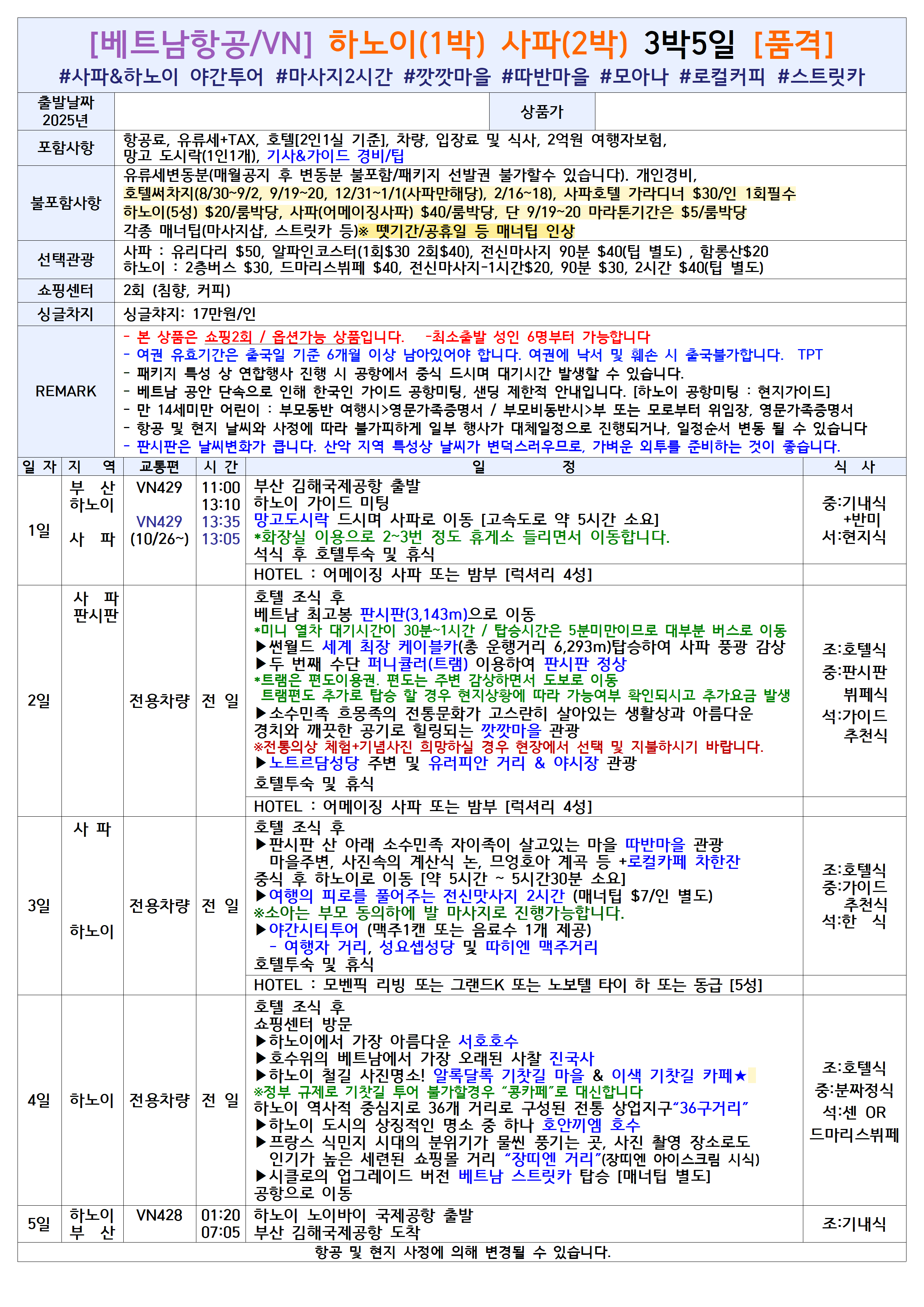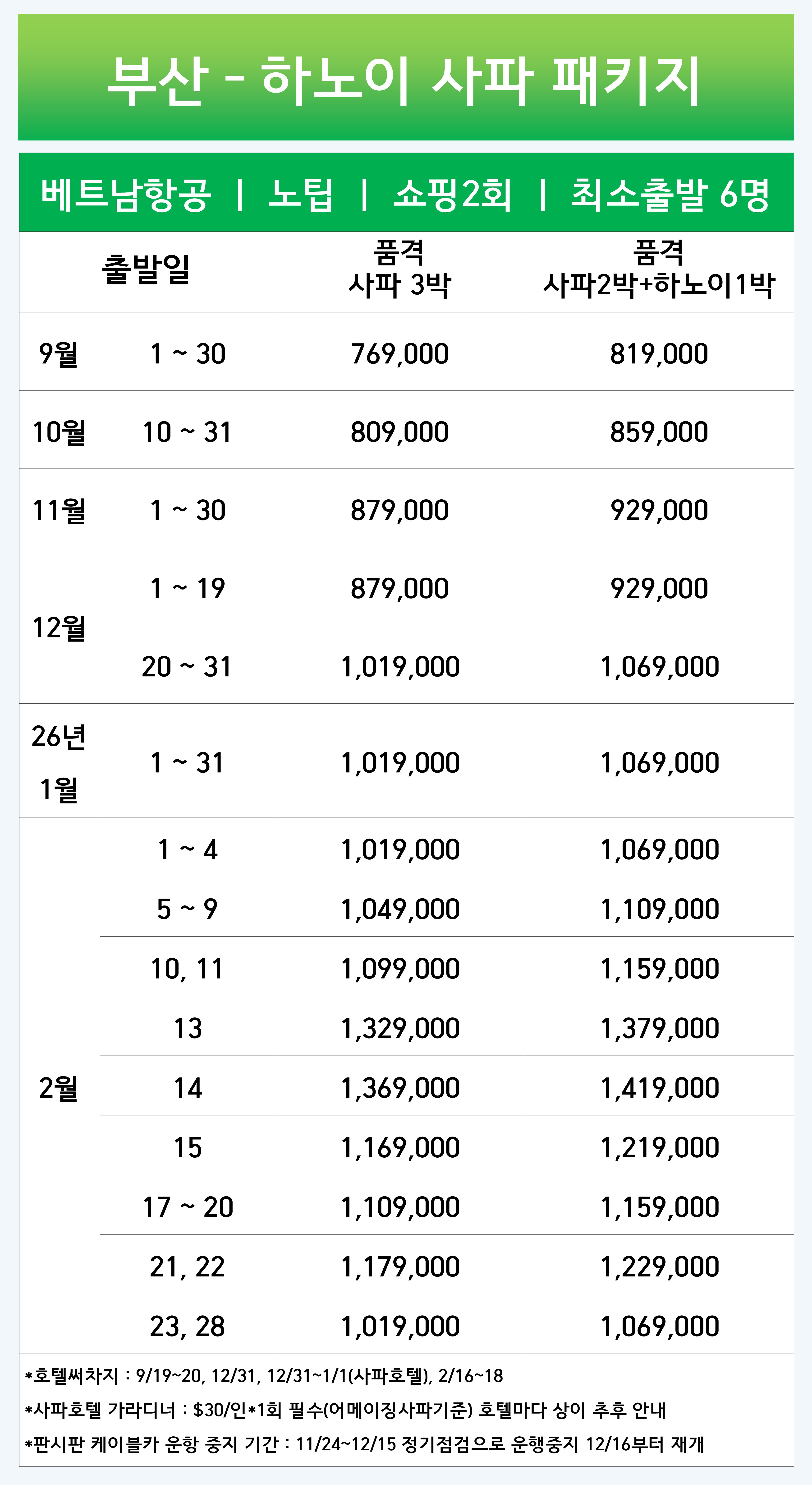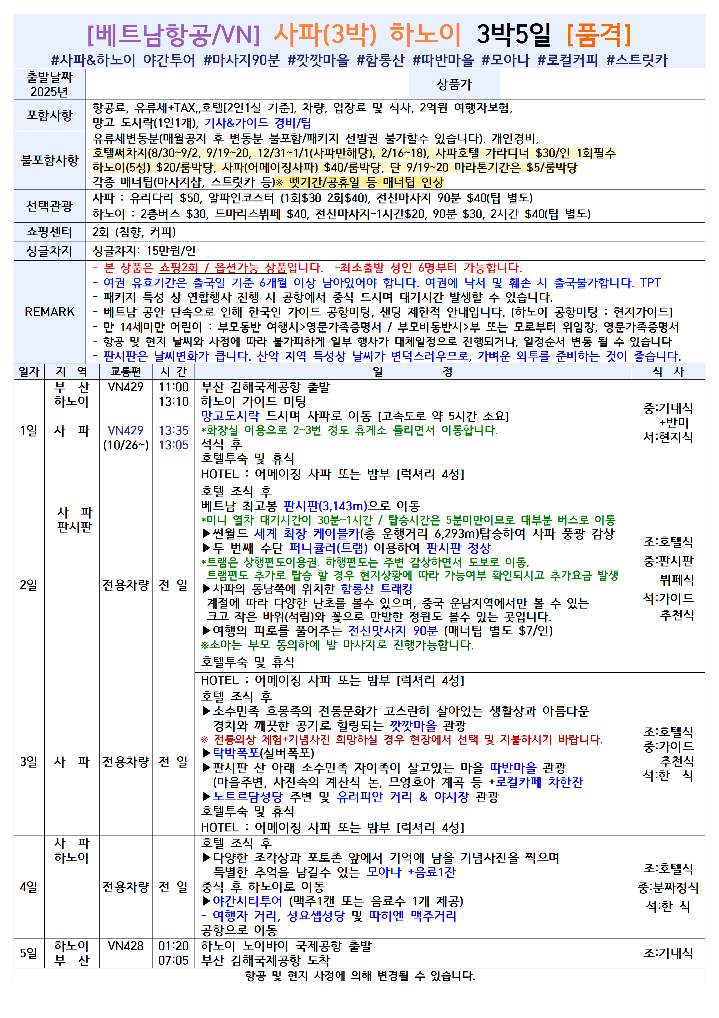 📍사파 럭셔리4성 UP + 하노이5성으르 UP