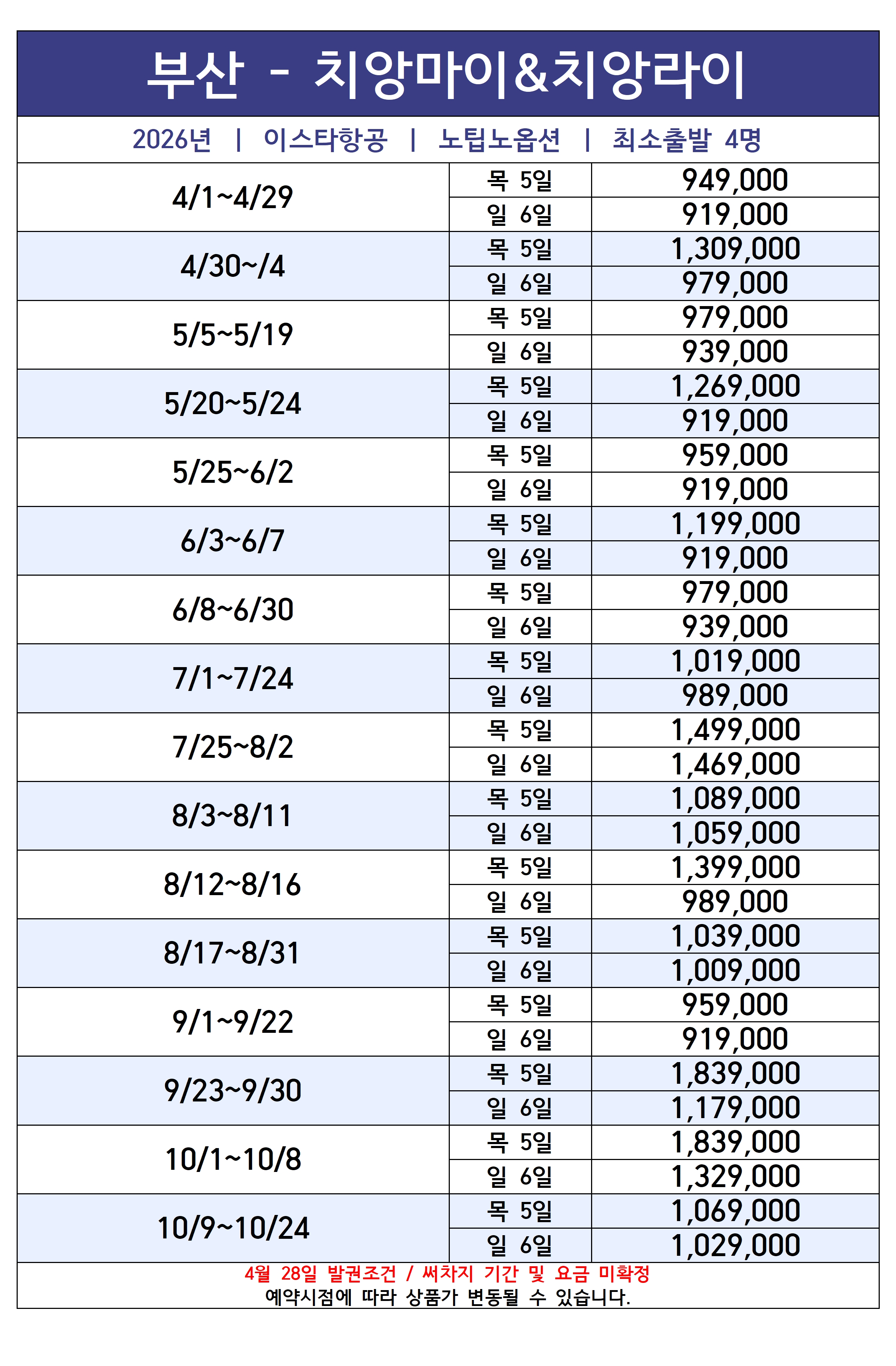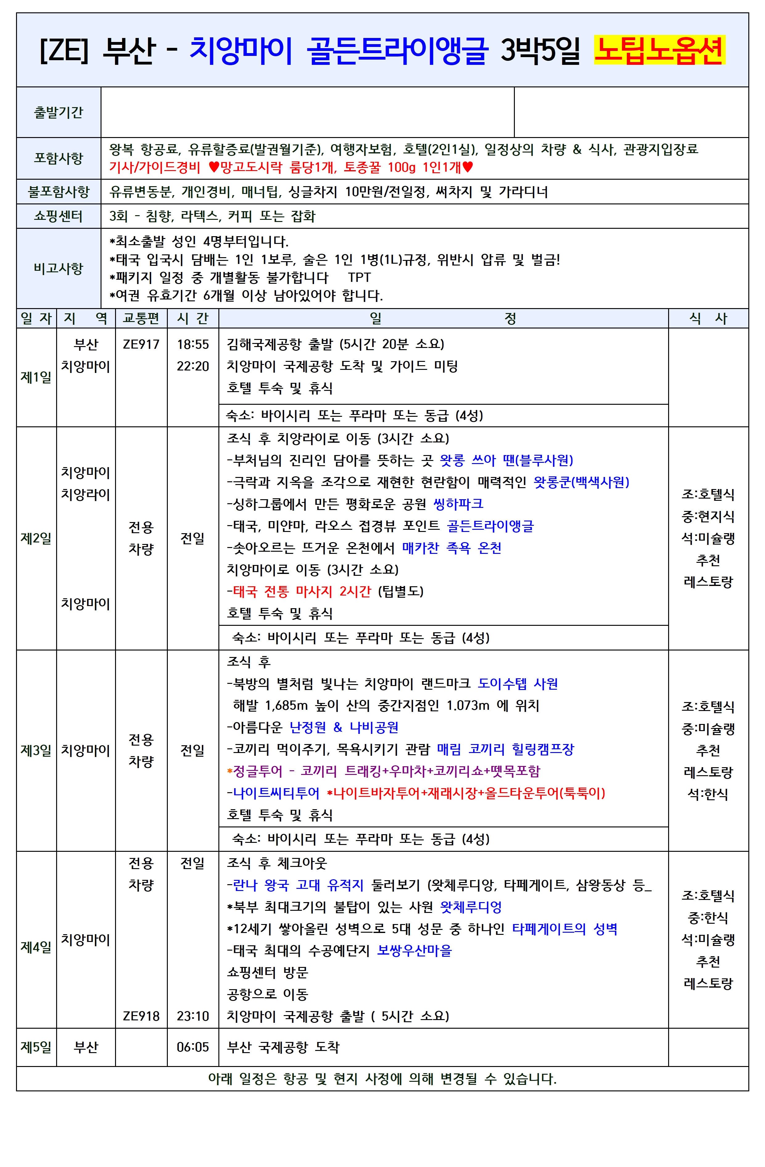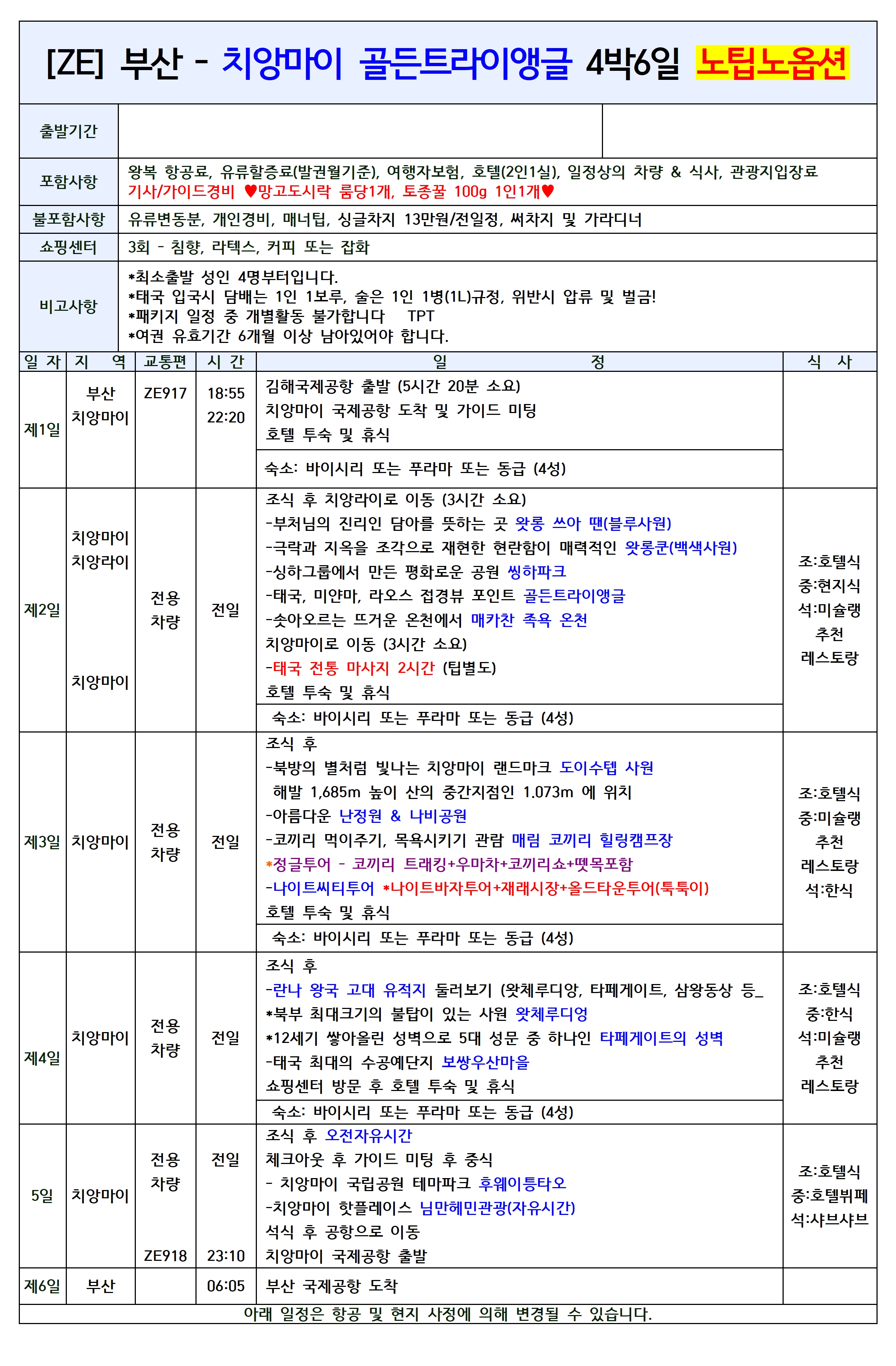 부산 -치앙마이 미슐랭 & 골든트라이앵글 5일/6일