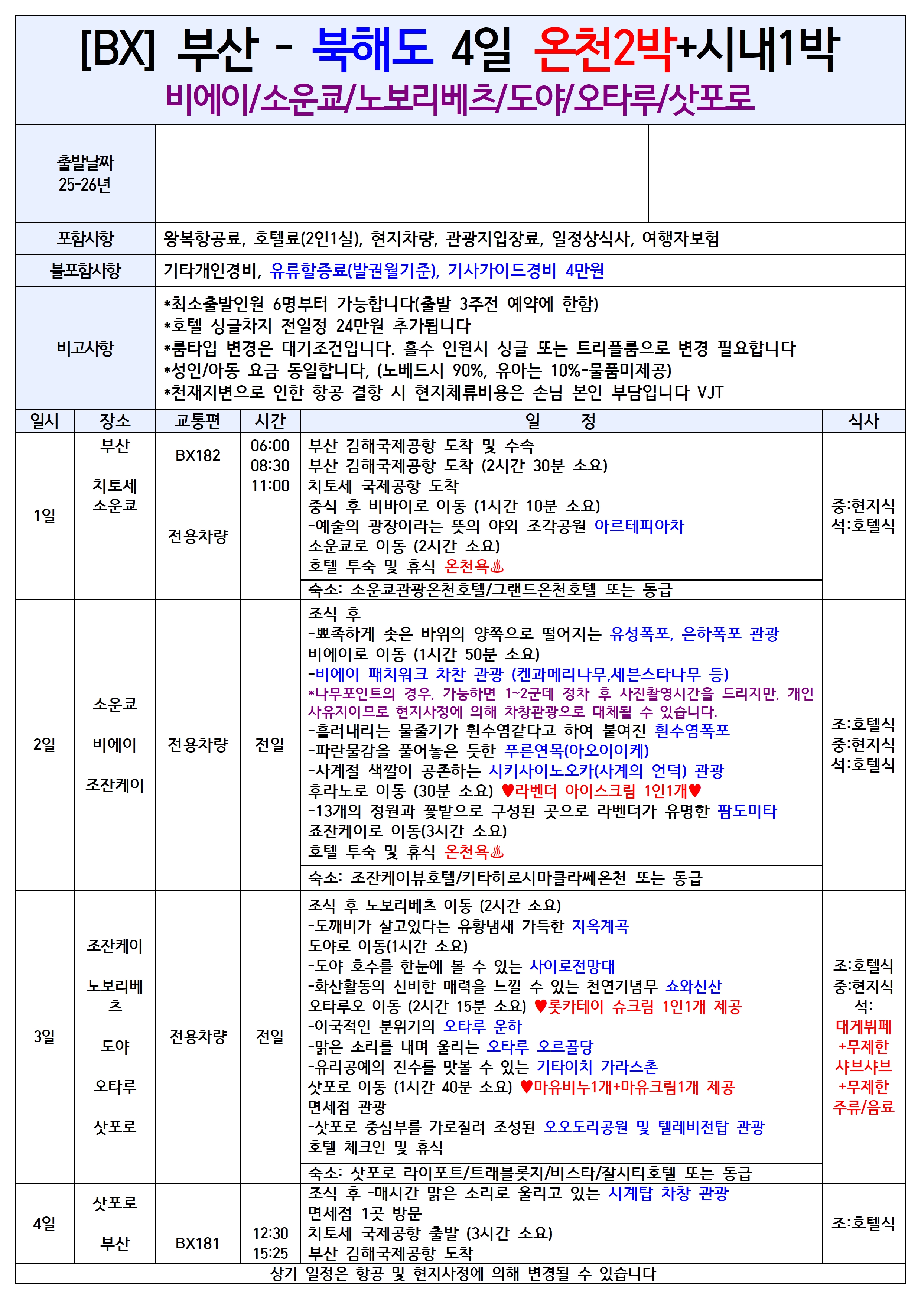 [부산출발] 북해도 비에이 4일 품격 패키지