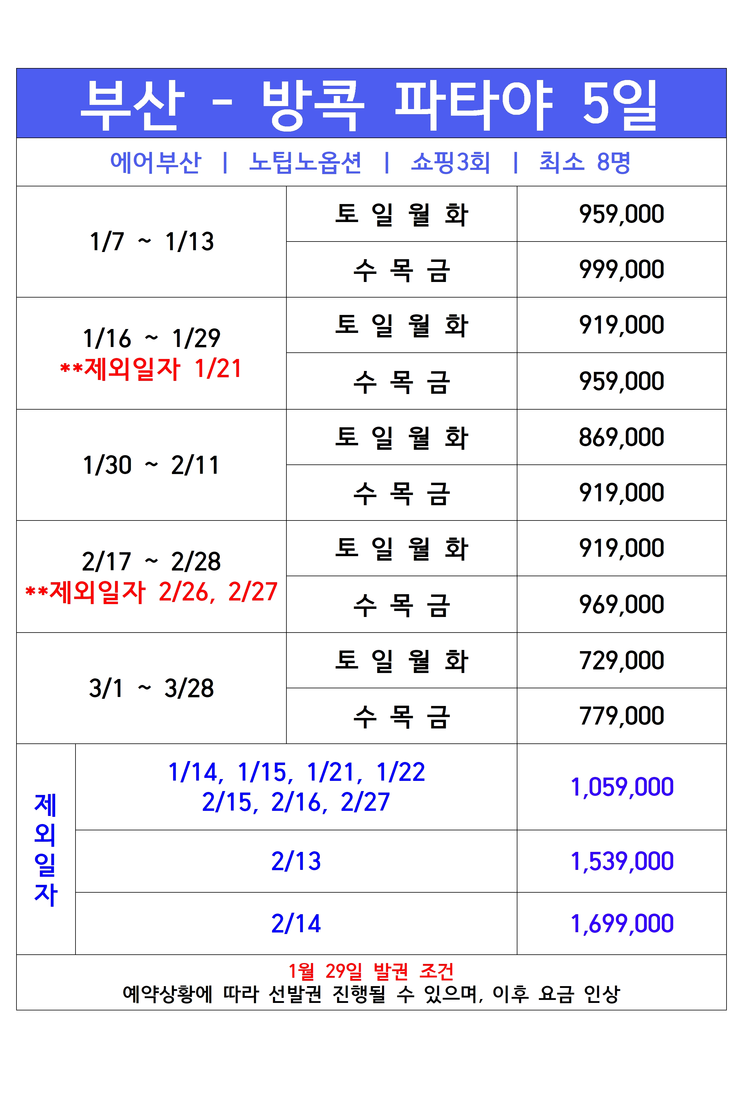 [부산출발] 방콕 파타야 3박5일 노팁노옵션 에어부산