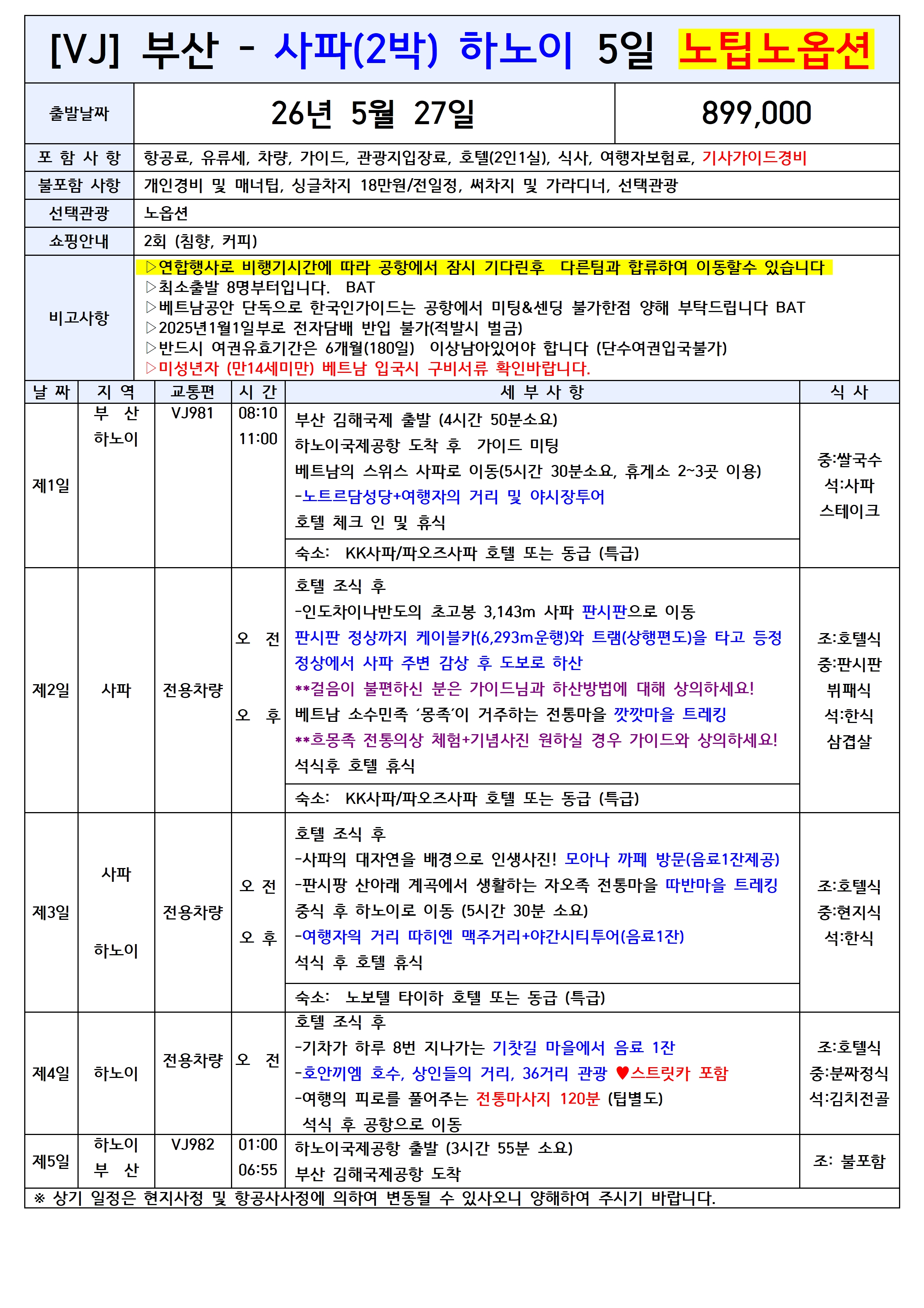 🔥선착순특가🔥[부산출발] 하노이 사파 5일