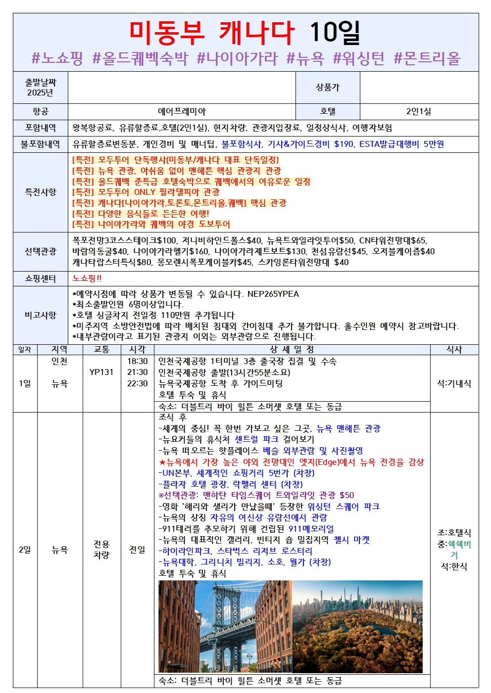 📍캐나다[나이아가라,토론토,몬트리올,퀘벡] 핵심 관광
