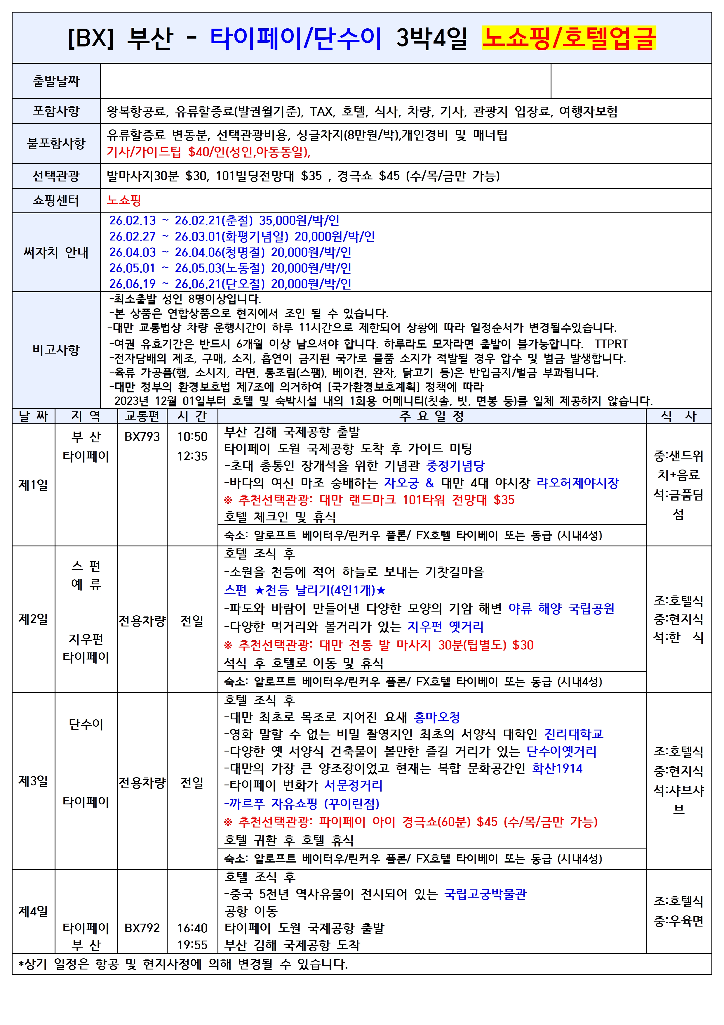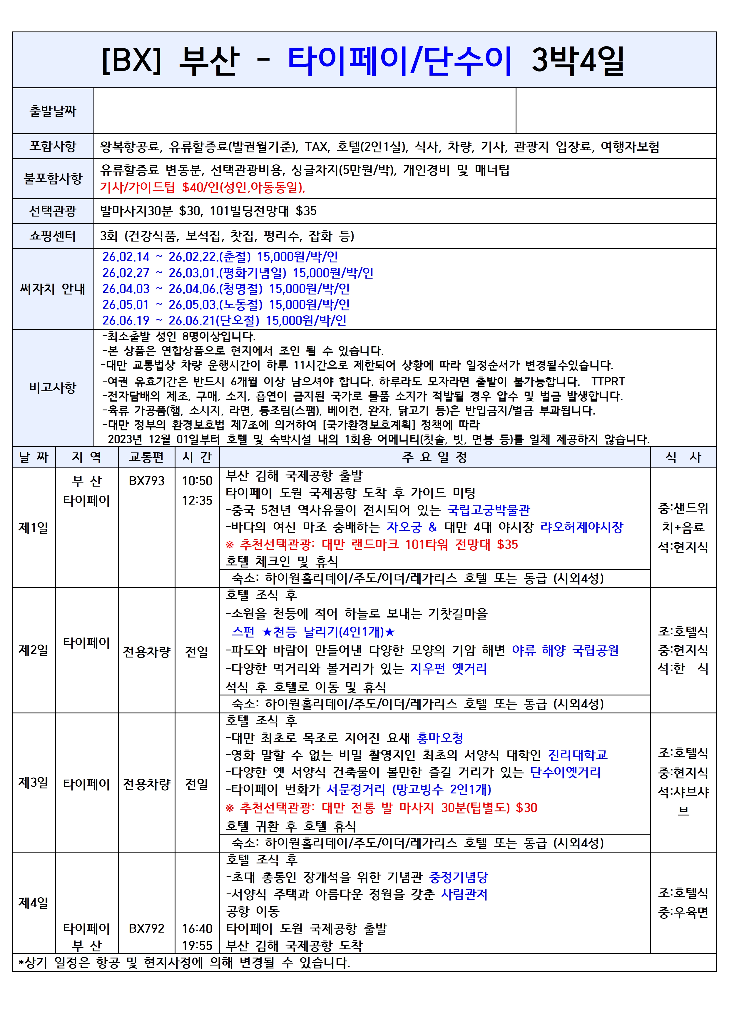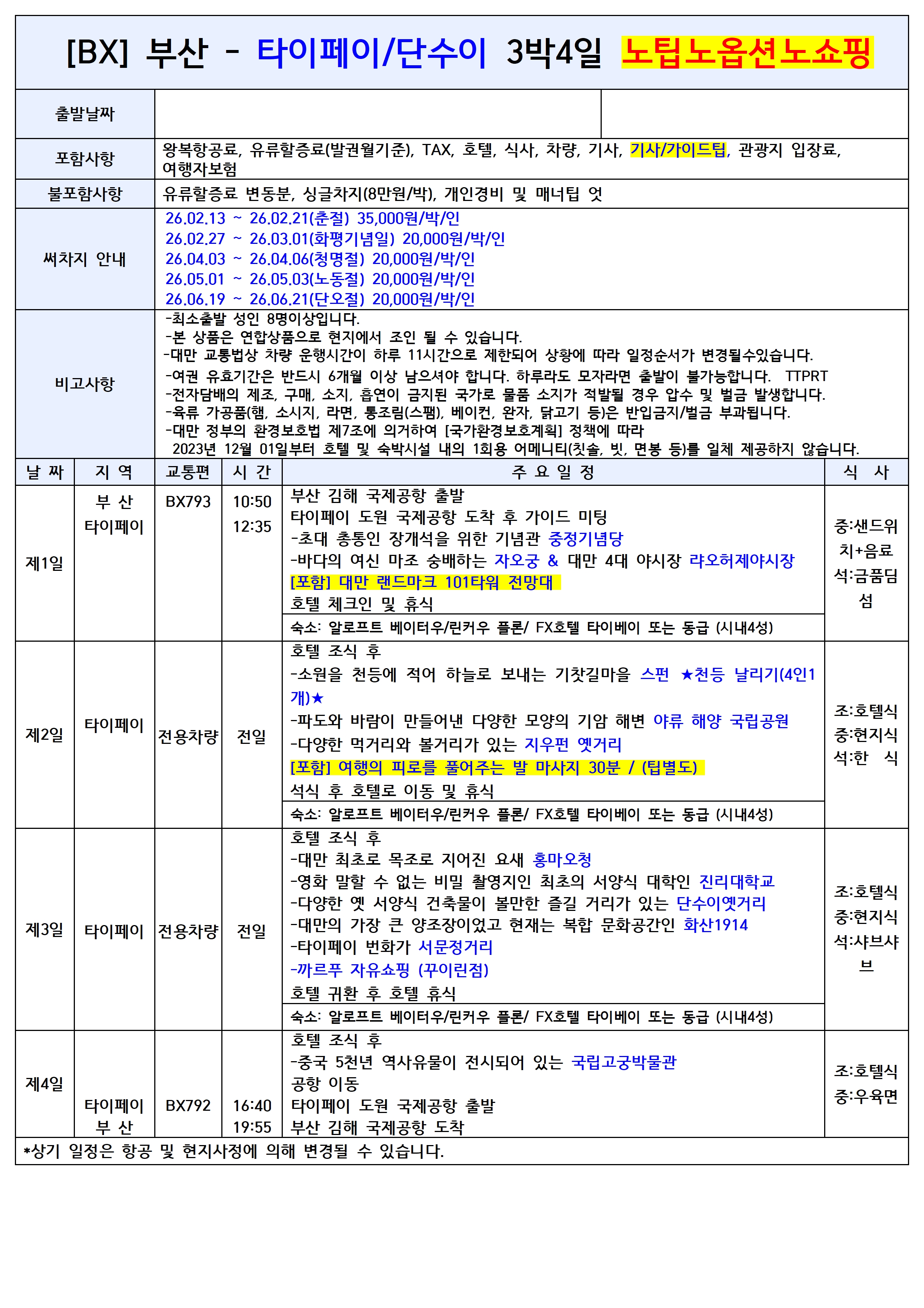타이페이 품격 PKG