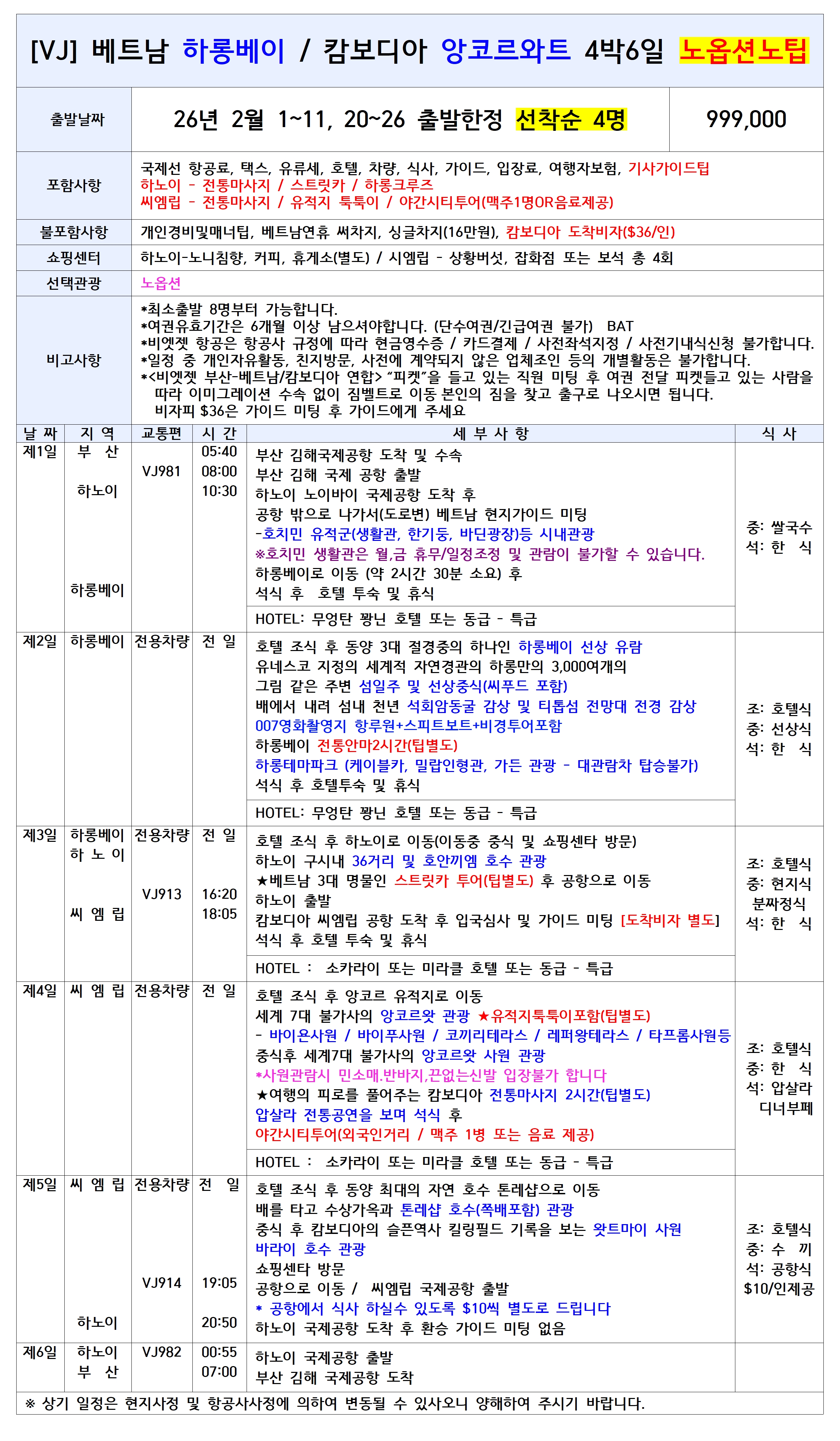 🚨출발확정/집중모객🚨[부산출발] 베트남 하롱베이 캄보디아 앙코르와트 6일 노팁노옵션