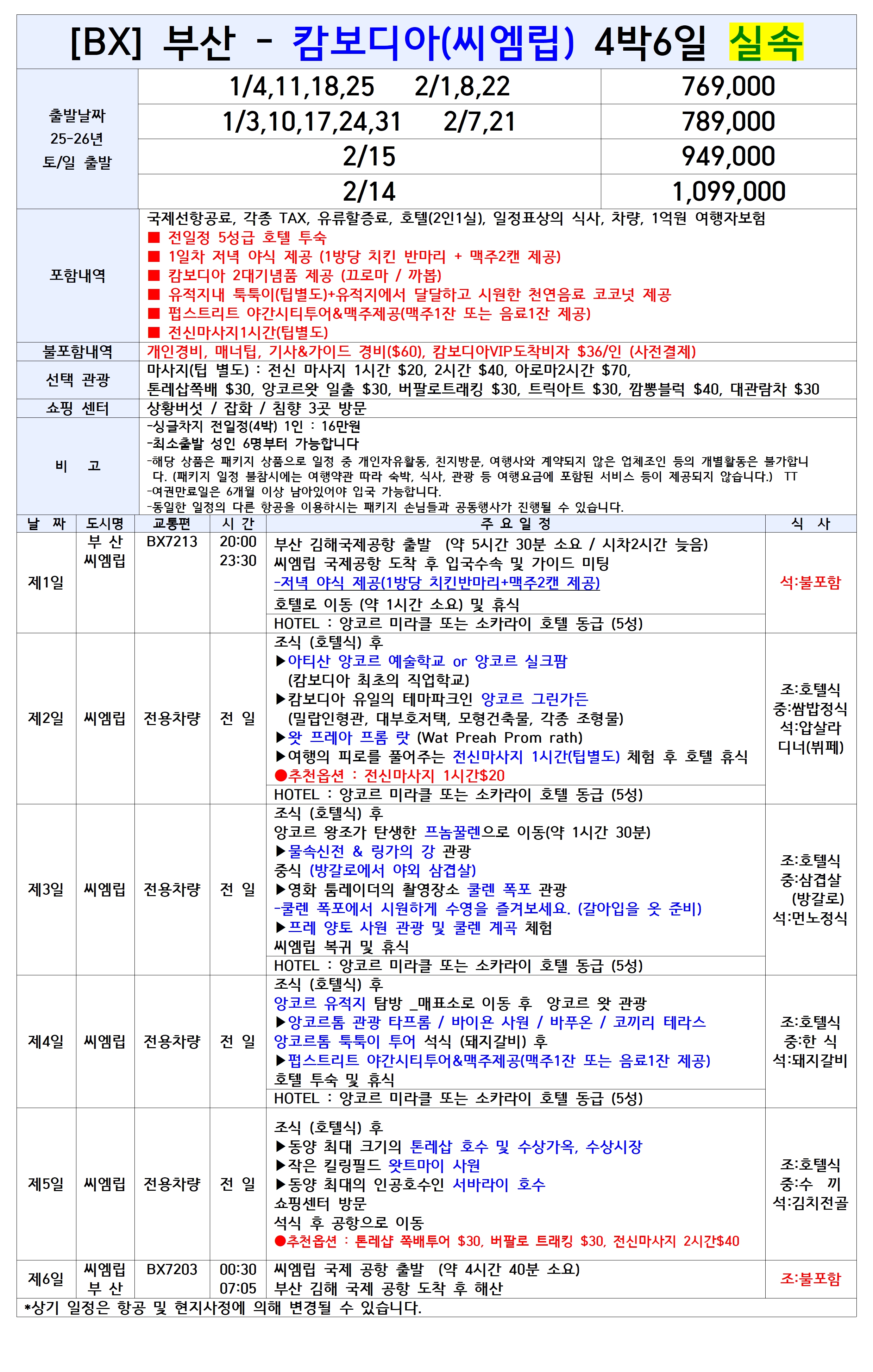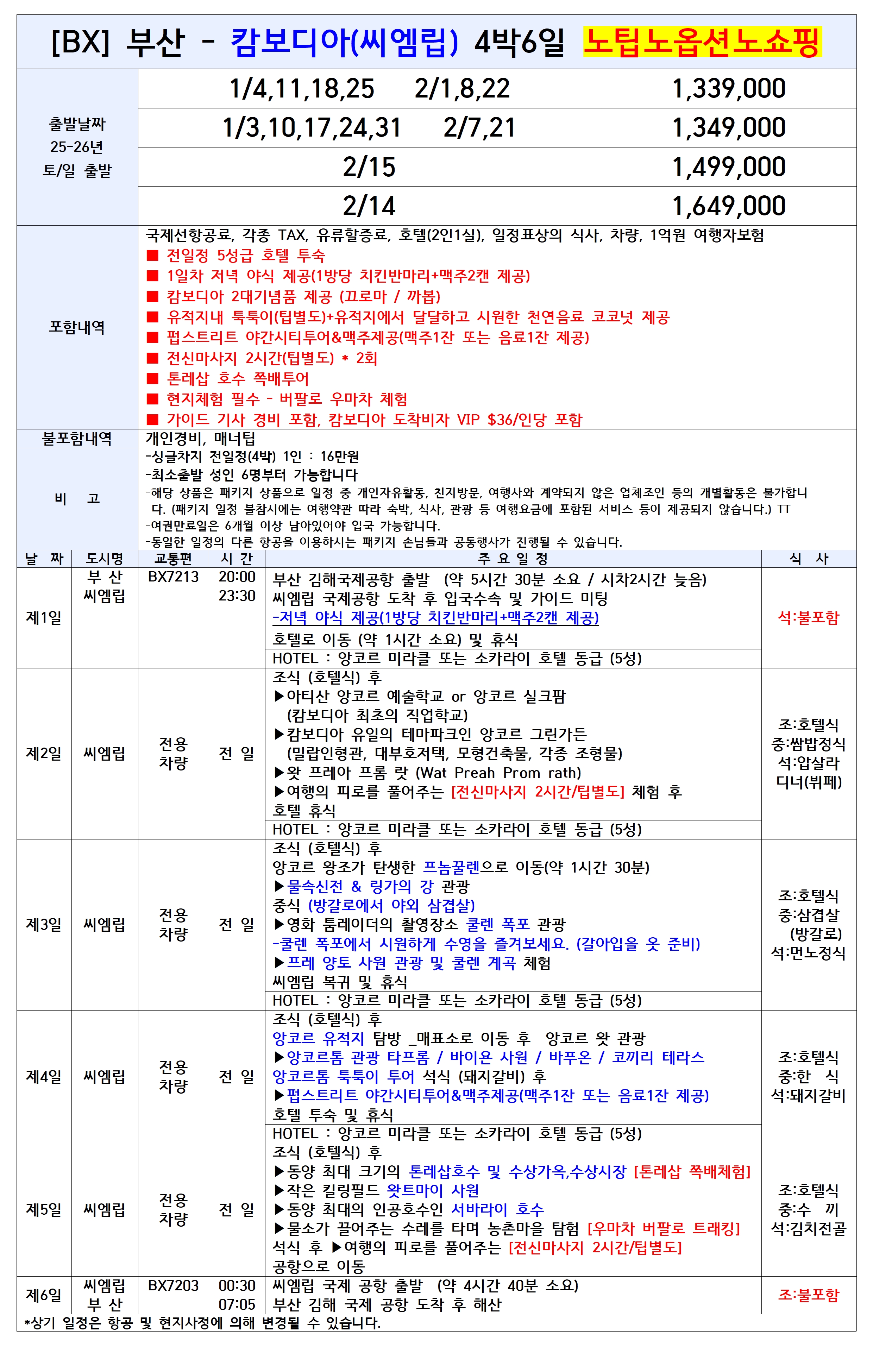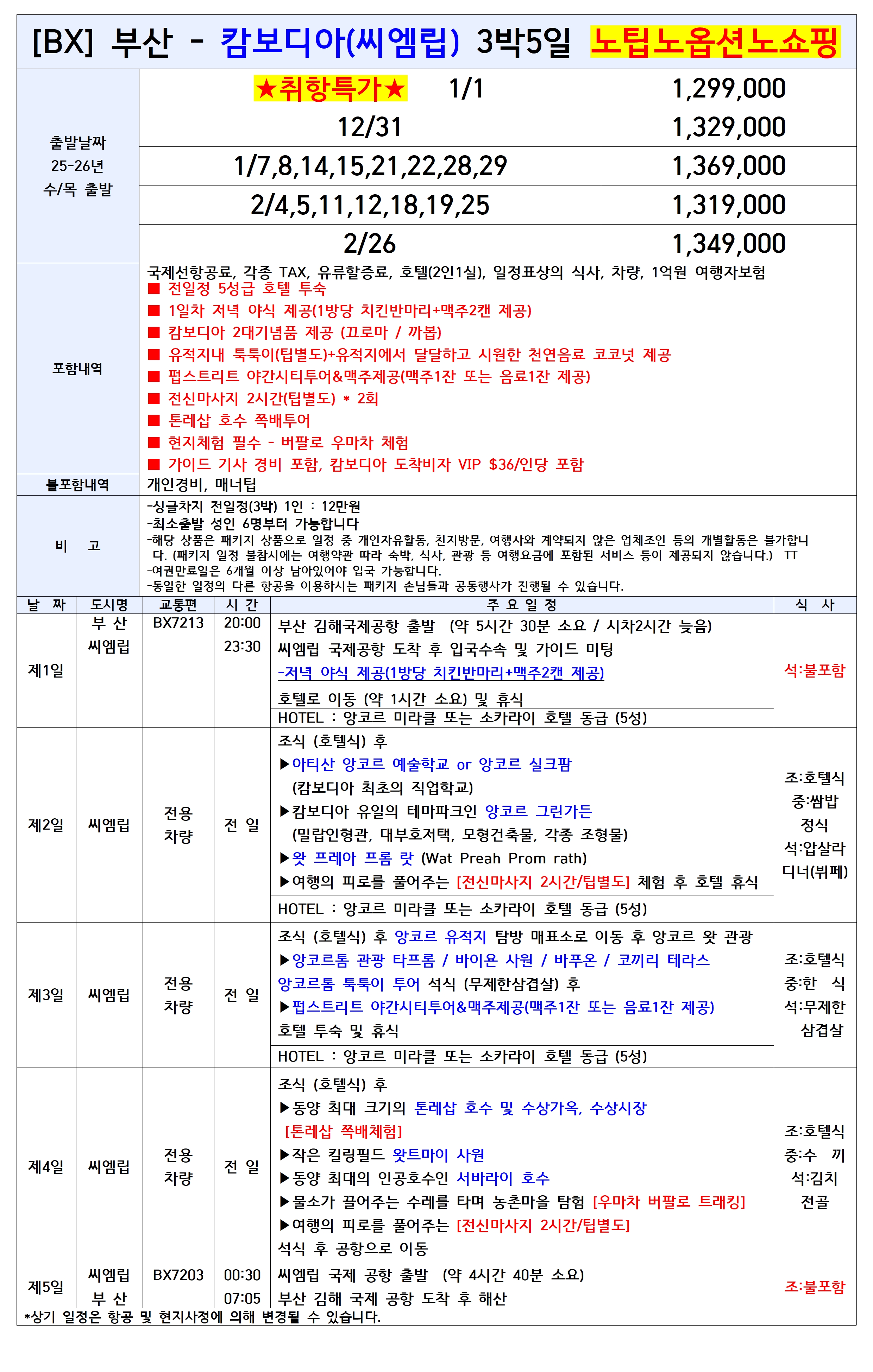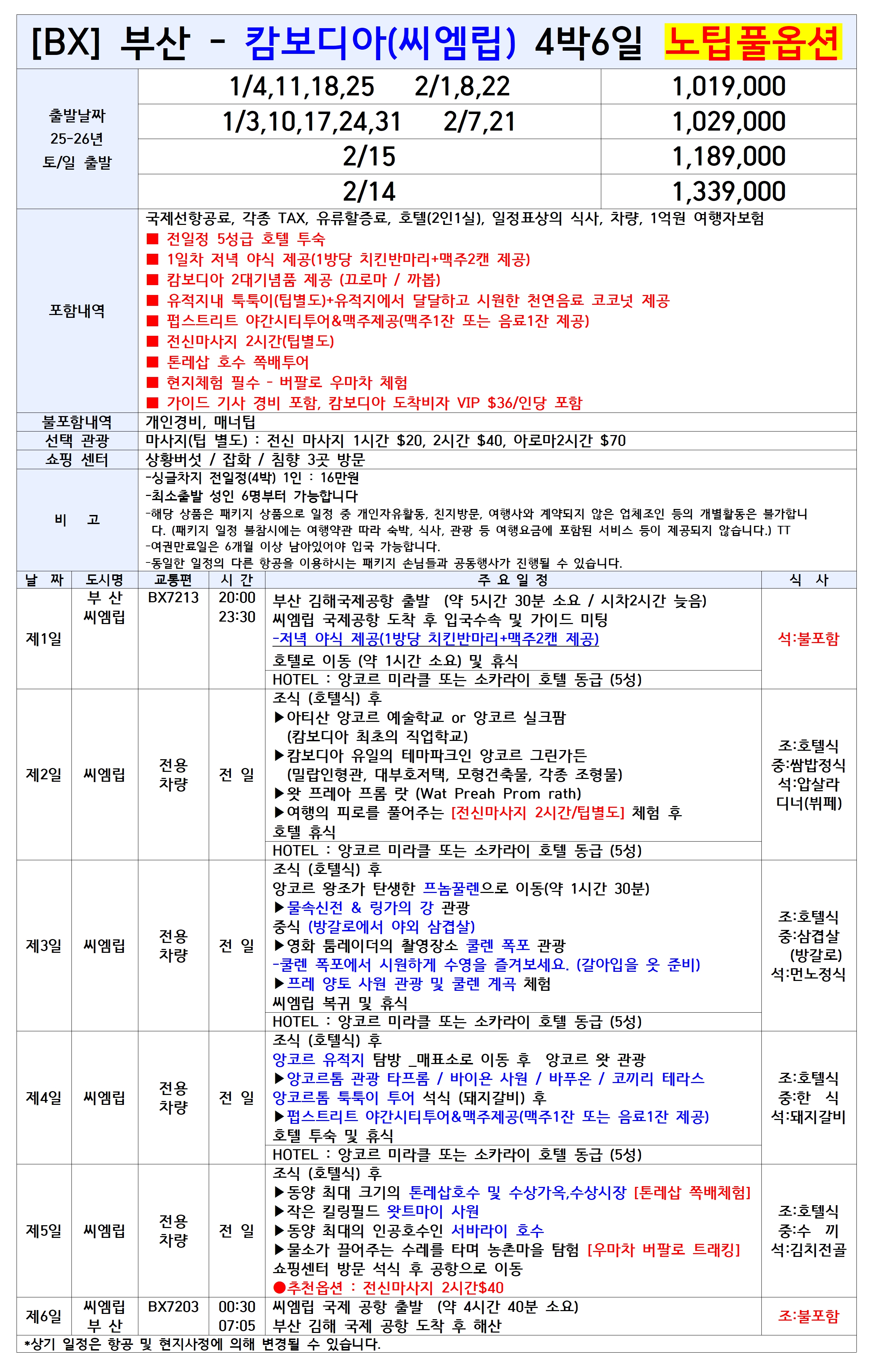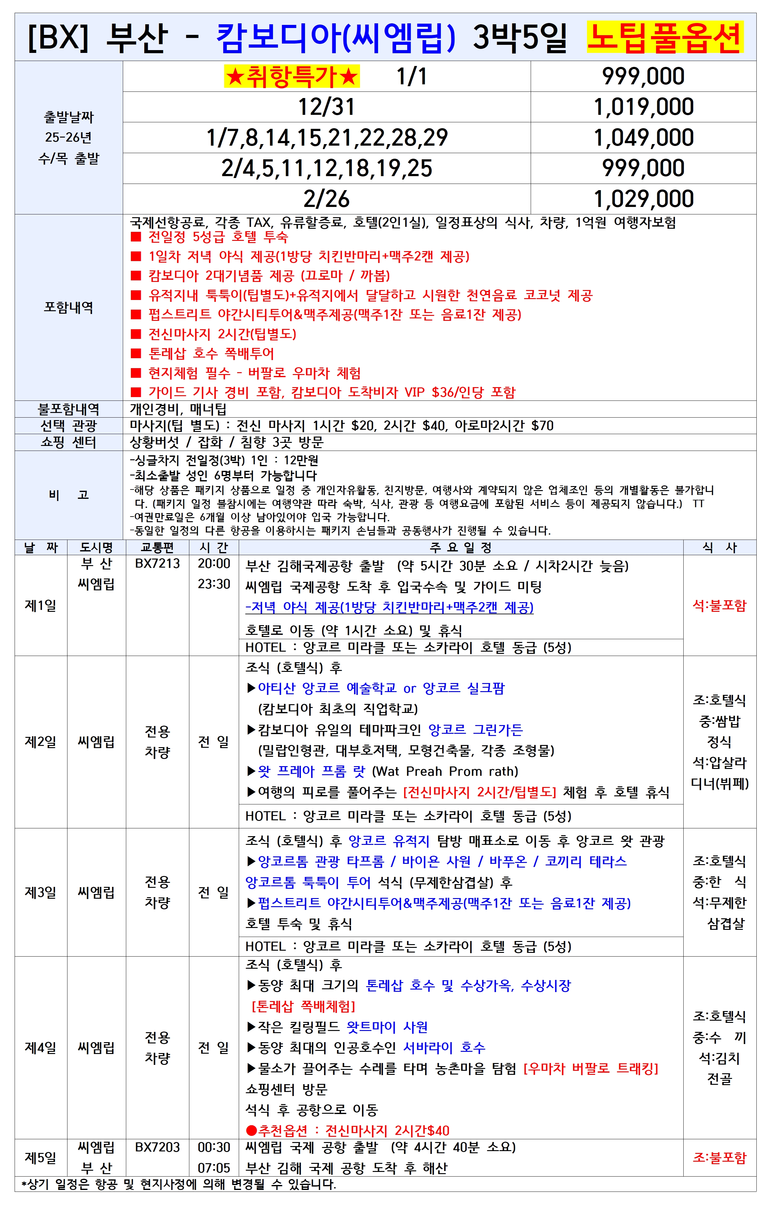 [부산출발] 캄보디아 씨엠립 전세기 실속 VS 노팁풀옵션 VS 노팁노옵션노쇼핑 에어부산