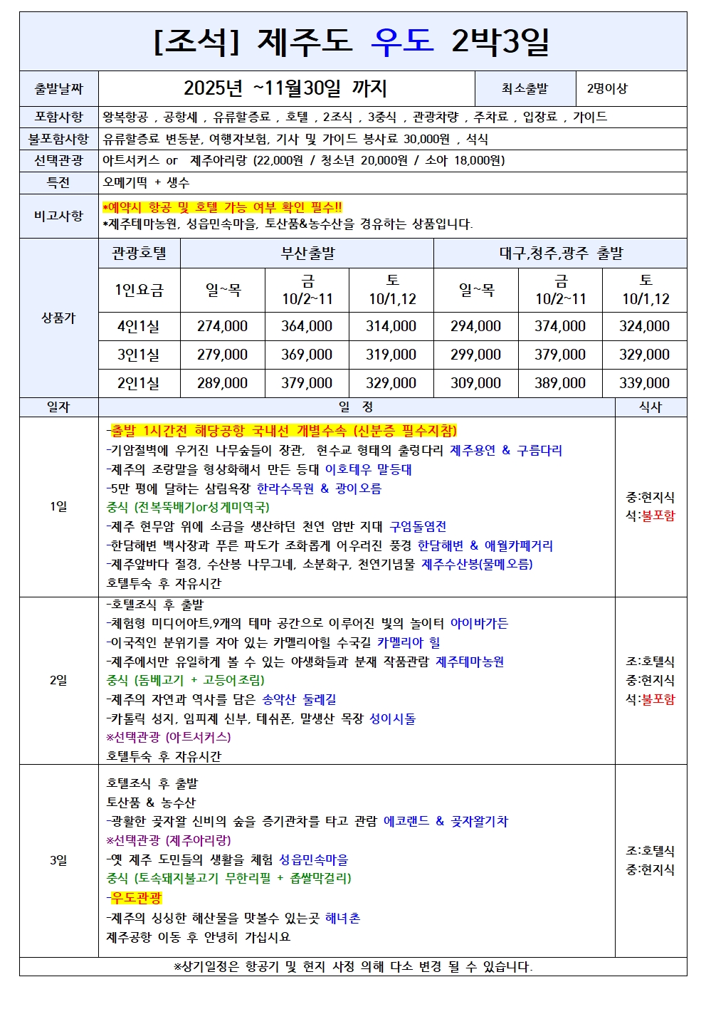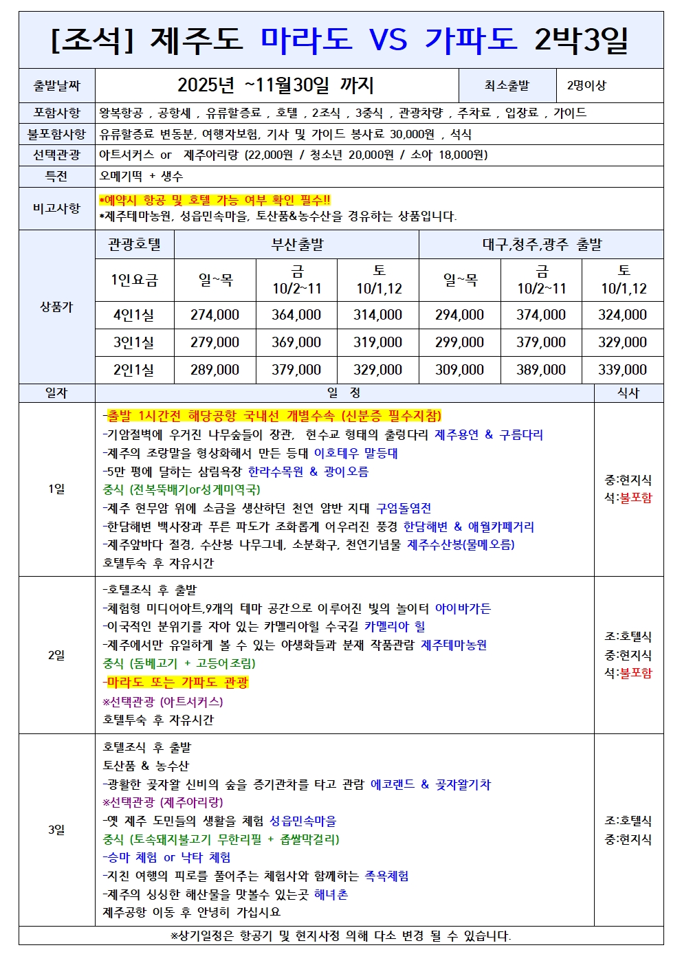 제주도 마라도/가파도/우도 2박3일 패키지