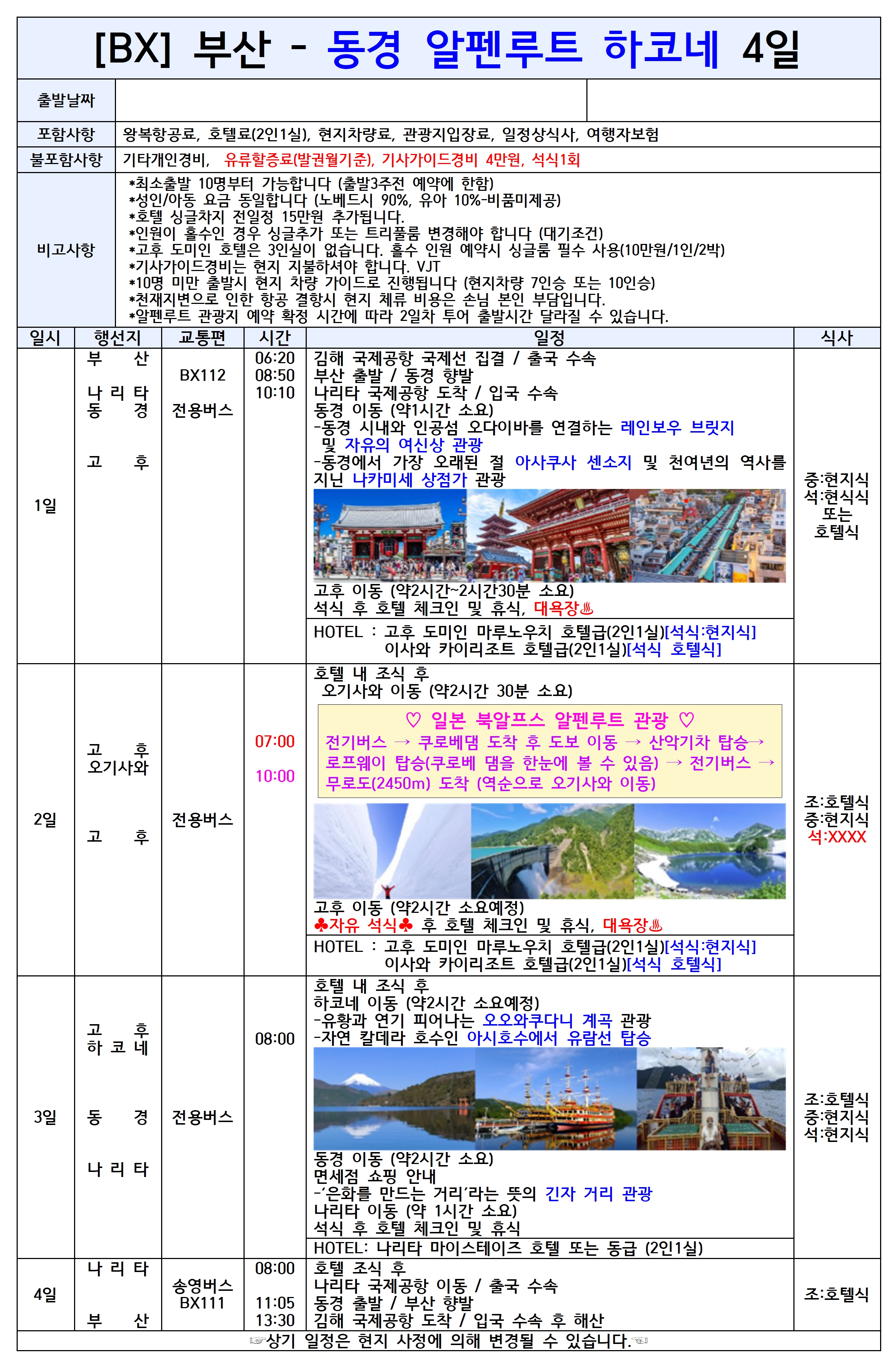 [부산출발] 동경 알펜루트 하코네 4일 에어부산