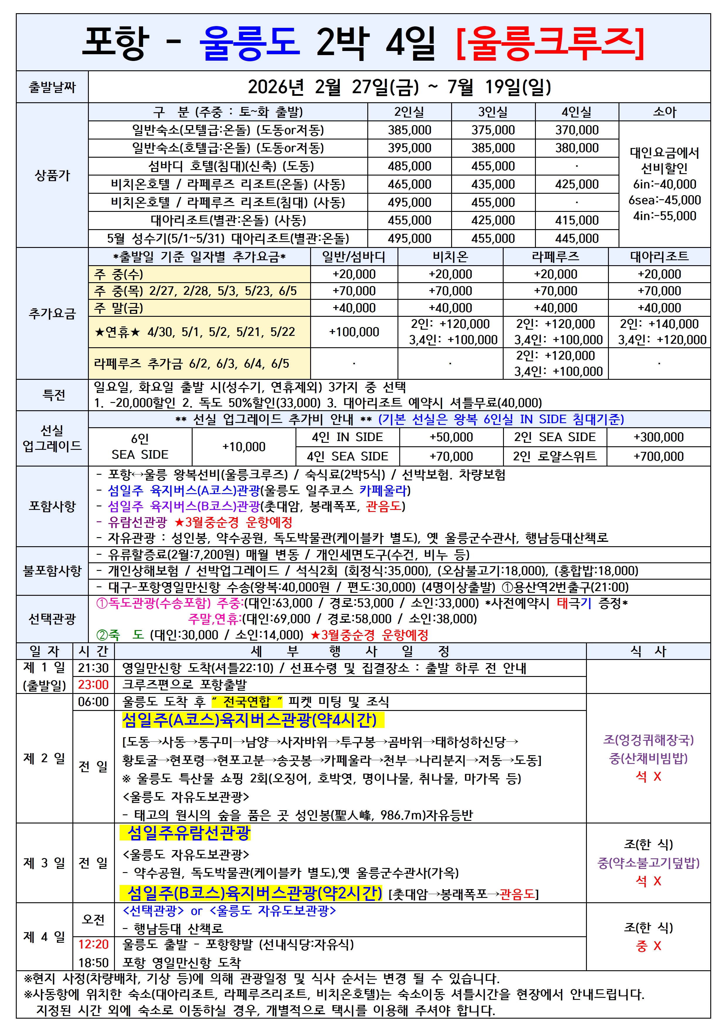 [포항출발] 울릉도 2박4일 울릉크루즈