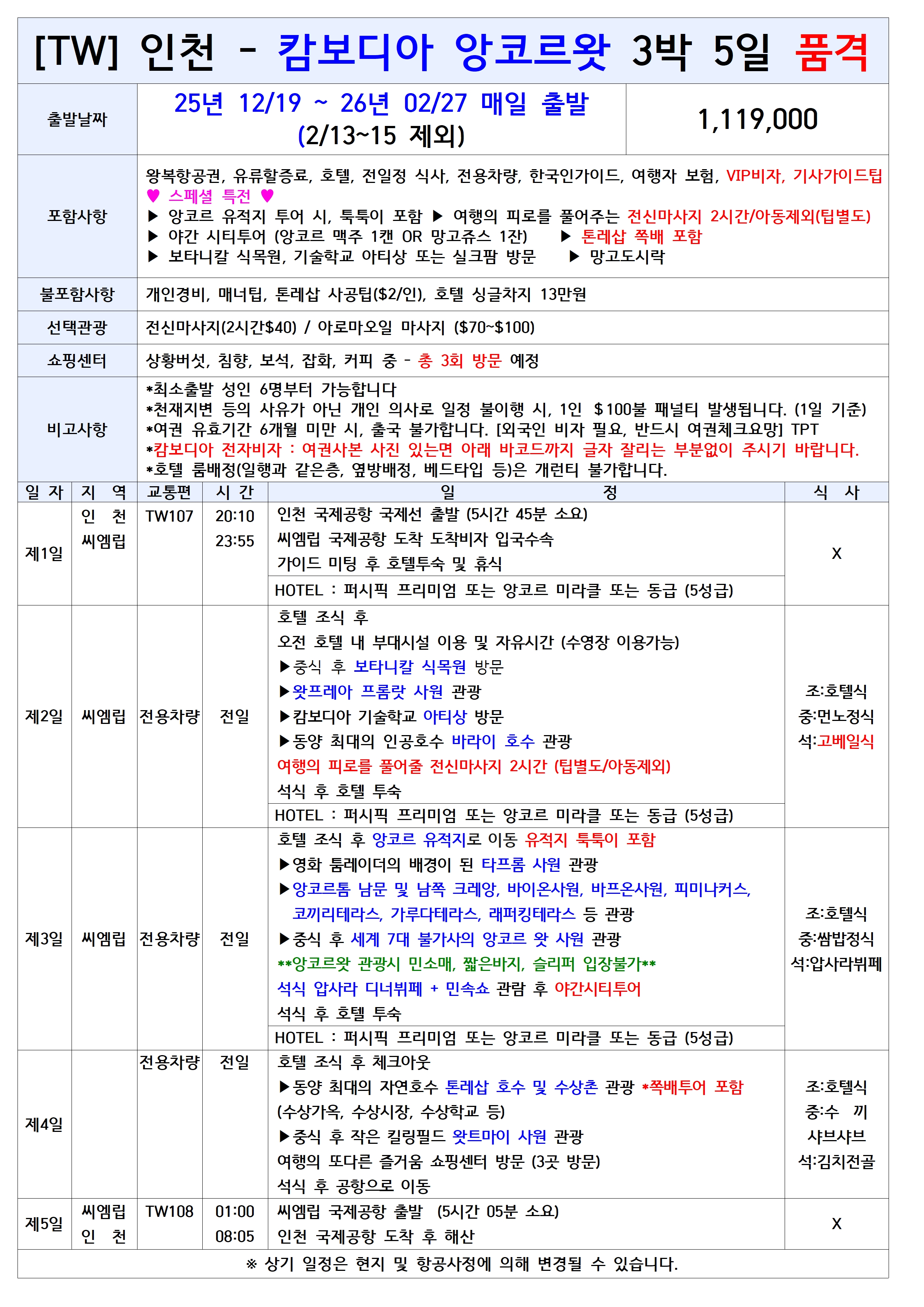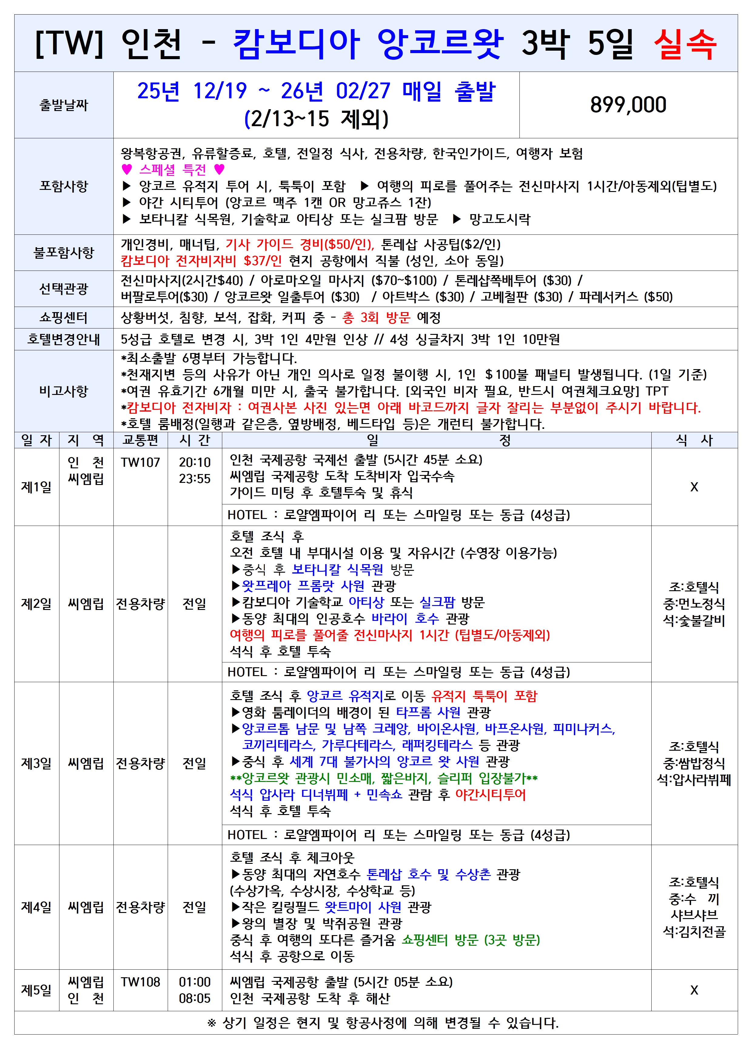 [인천출발] 캄보디아 씨엠립 앙코르와트 5일 실속/품격 티웨이항공