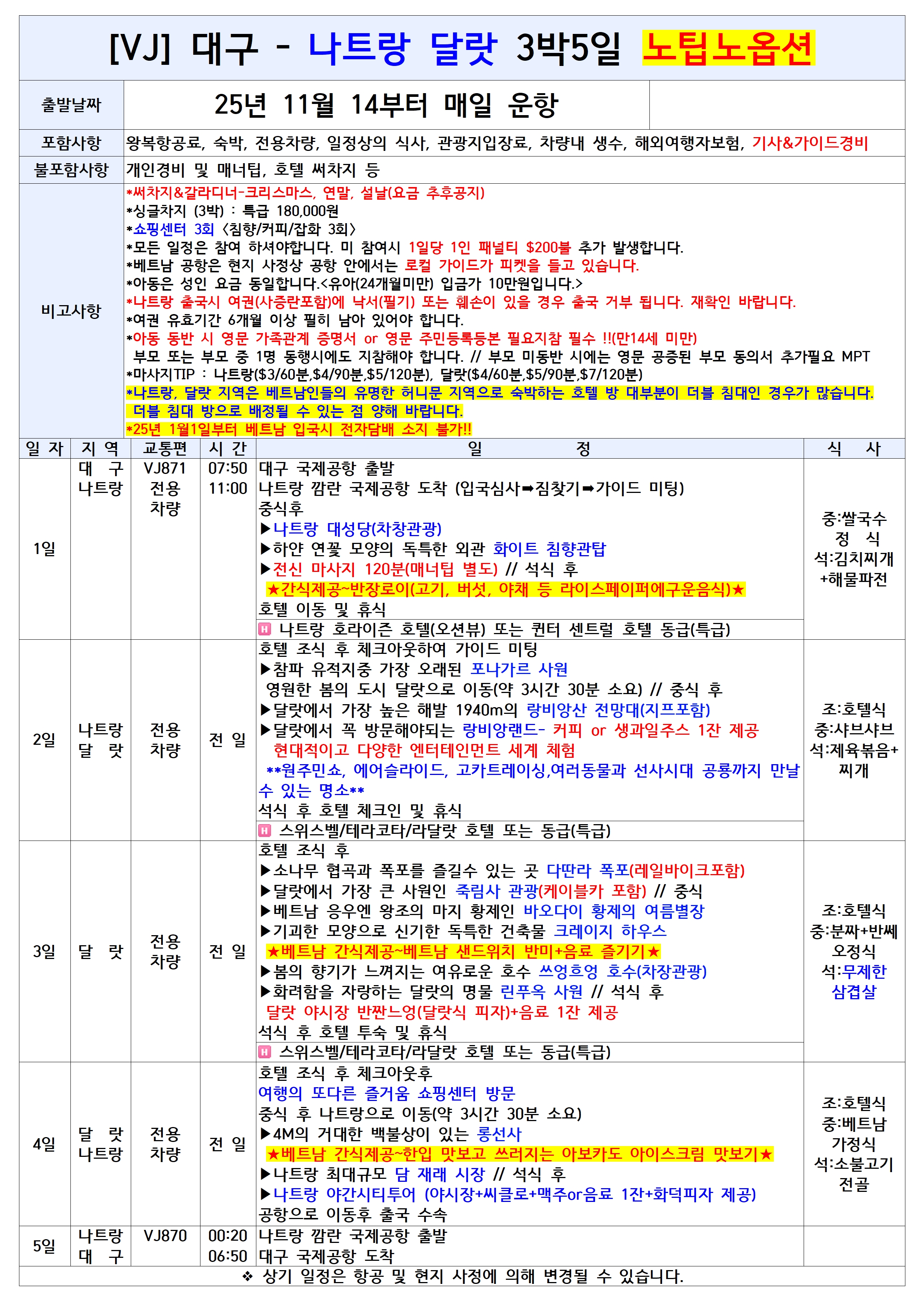 🥳 재운항 프로모션 비엣젯 대구출발 나트랑 !!! 💕대구VJ 나트랑/달랏 패키지 ✈️ 2025년 11월 14일~ 매일출발