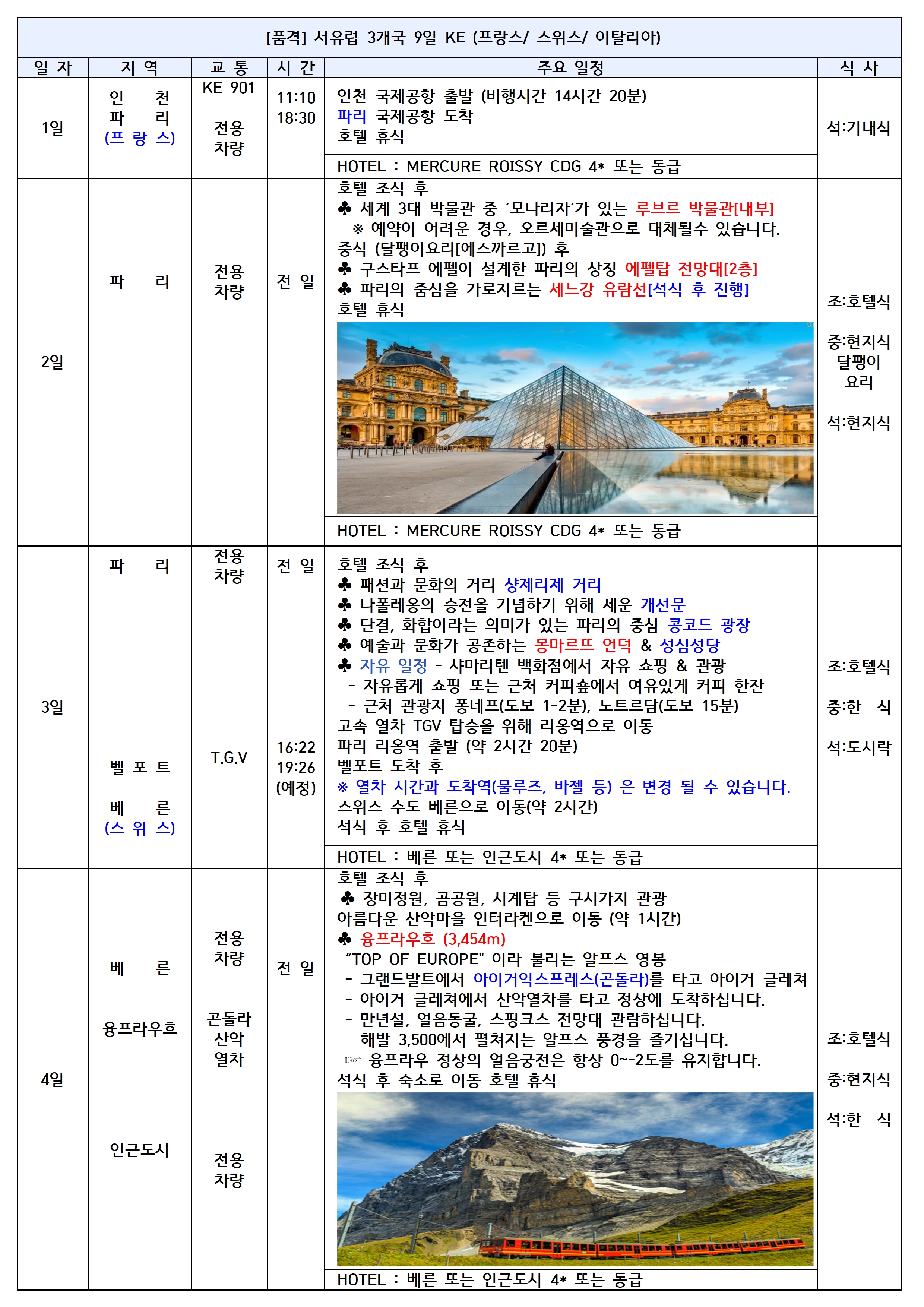 서유럽 3개국 (프랑스, 스위스, 이탈리아) 9일