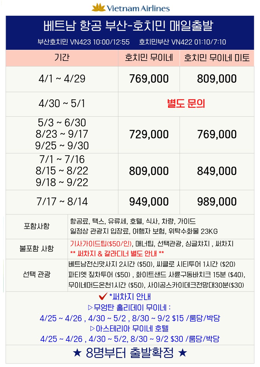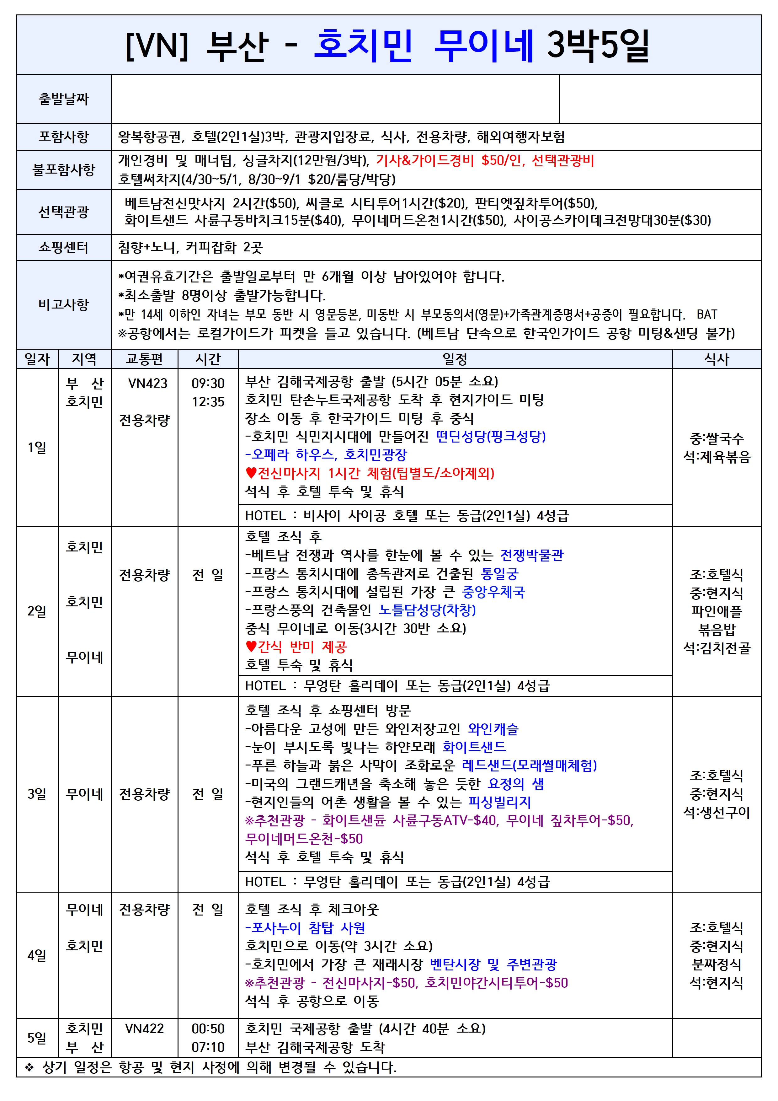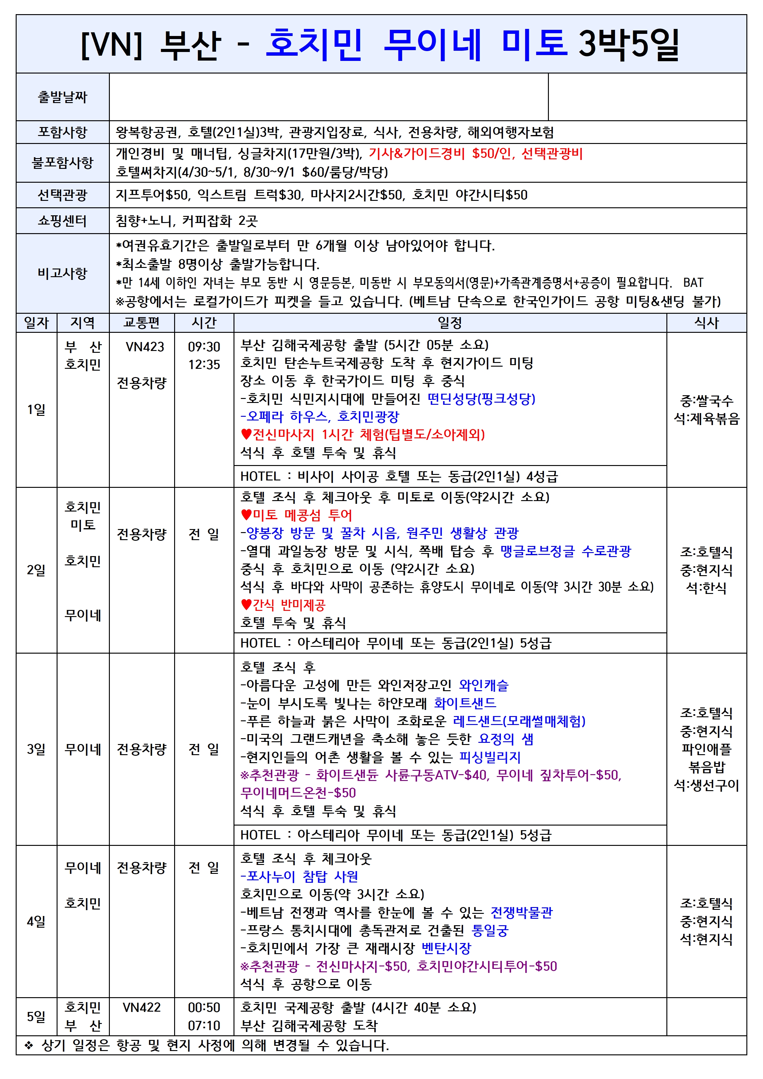 [부산출발] 호치민 무이네 미토 3박5일 패키지 베트남항공