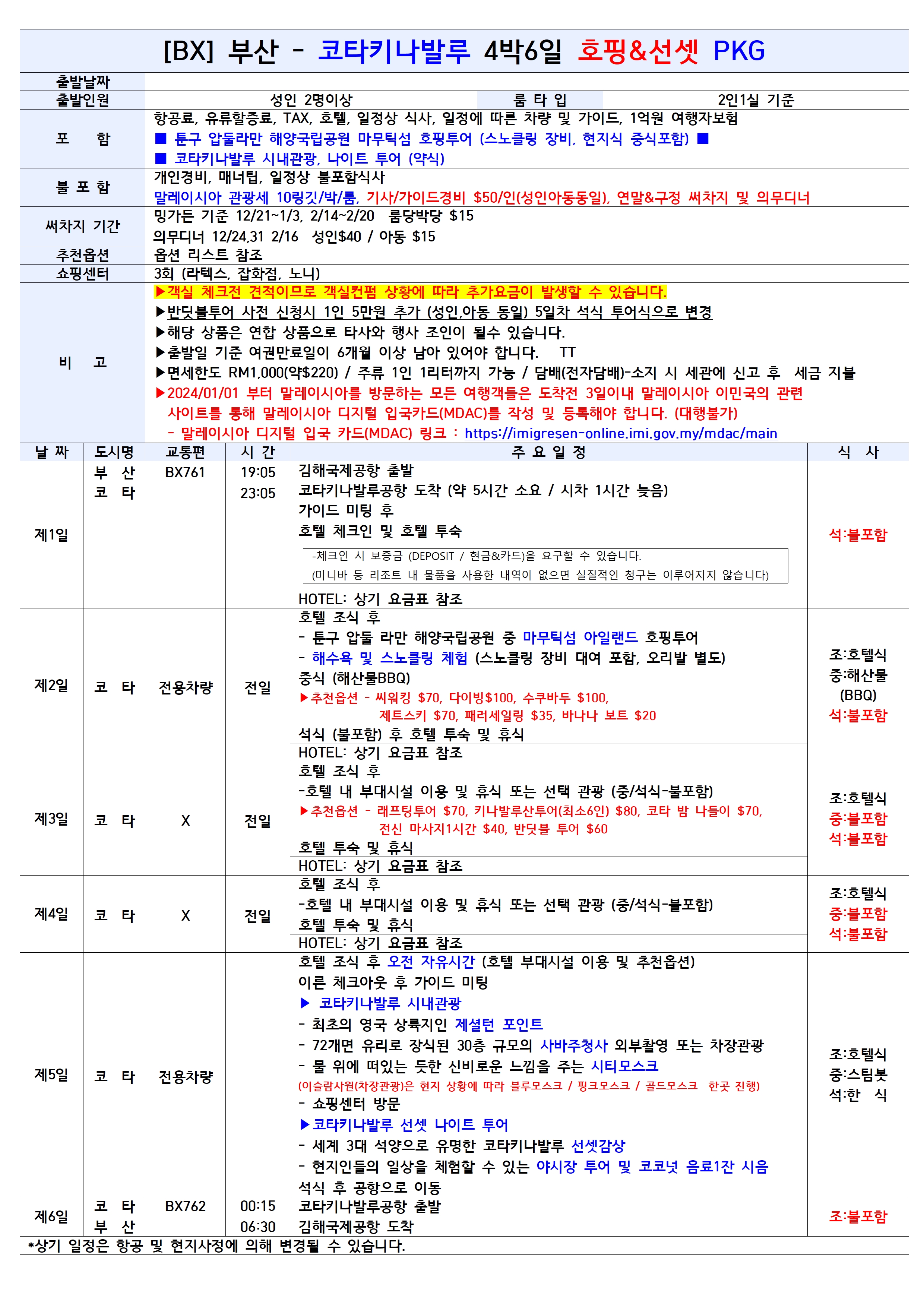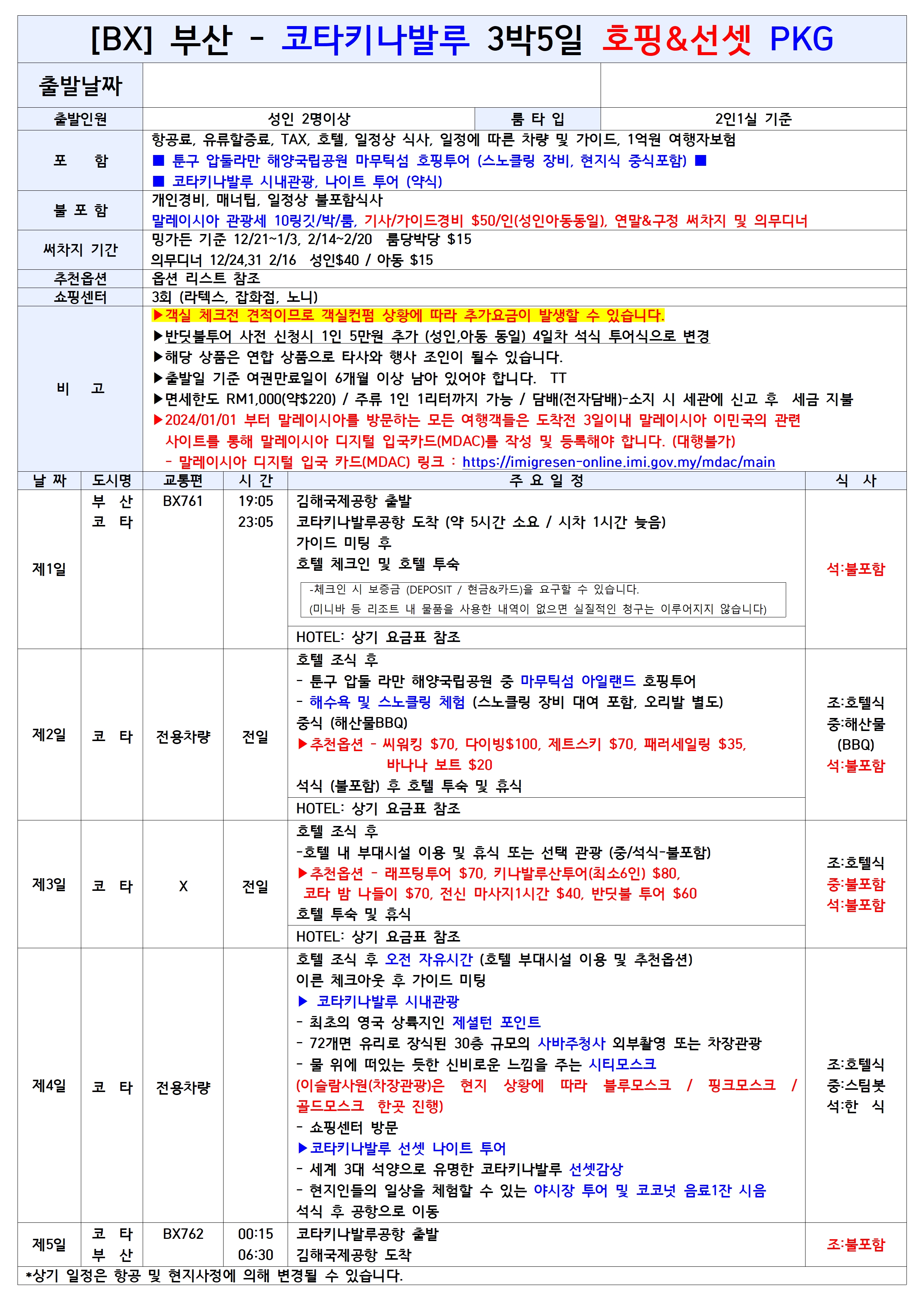 호핑&선셋 나이트투어 포함 💥4성 밍가든 호텔 💥 툰구 압둘 라만 해양국립공원 중 마무틱섬 아일랜드 호핑투어 코타키나발루 시내관광 - 최초의 영국 상륙지인 제셜턴 포인트 - 72개면 유리로 장식된 30층 규모의 사바주청사 외부촬영 또는 차장관광 - 물 위에 떠있는 듯한 신비로운 느낌을 주는 시티모스크 코타키나발루 선셋감상, 야시장 투어 및 코코넛 음료1잔 시음