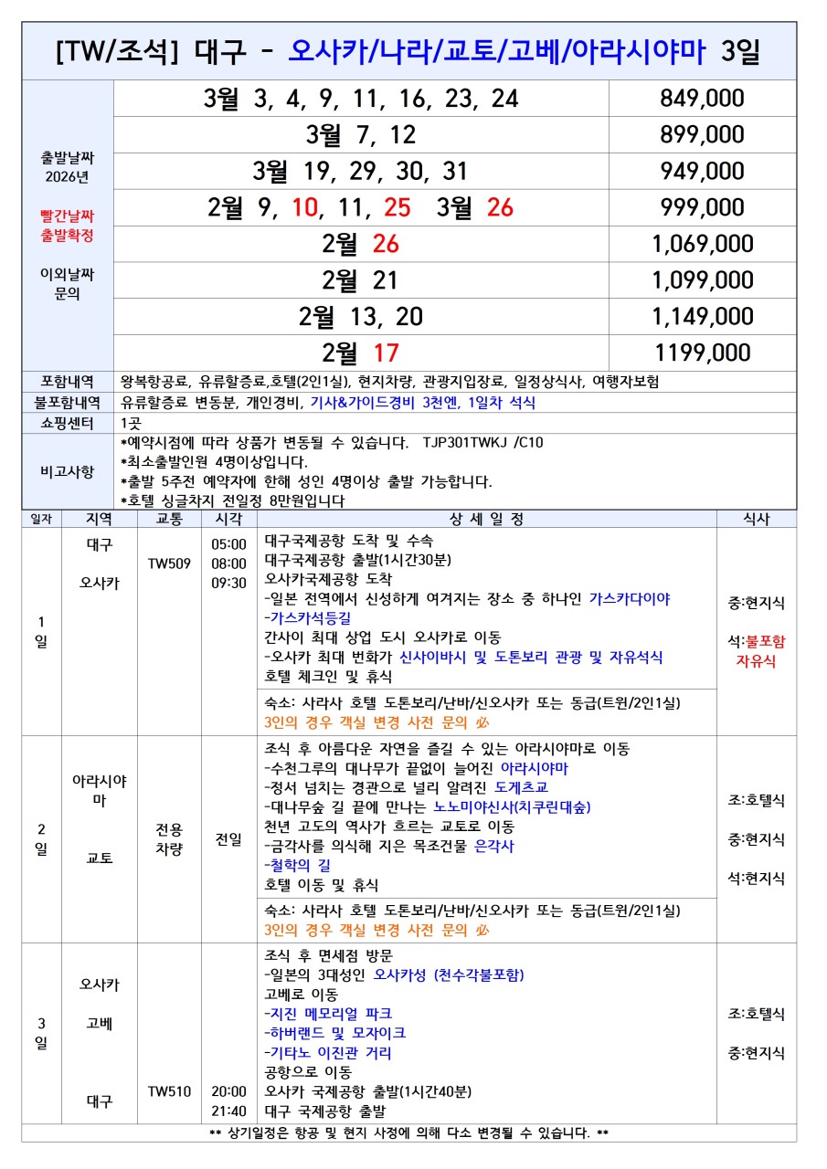💥선착순특가/집중모객💥[대구출발] 오사카 패키지