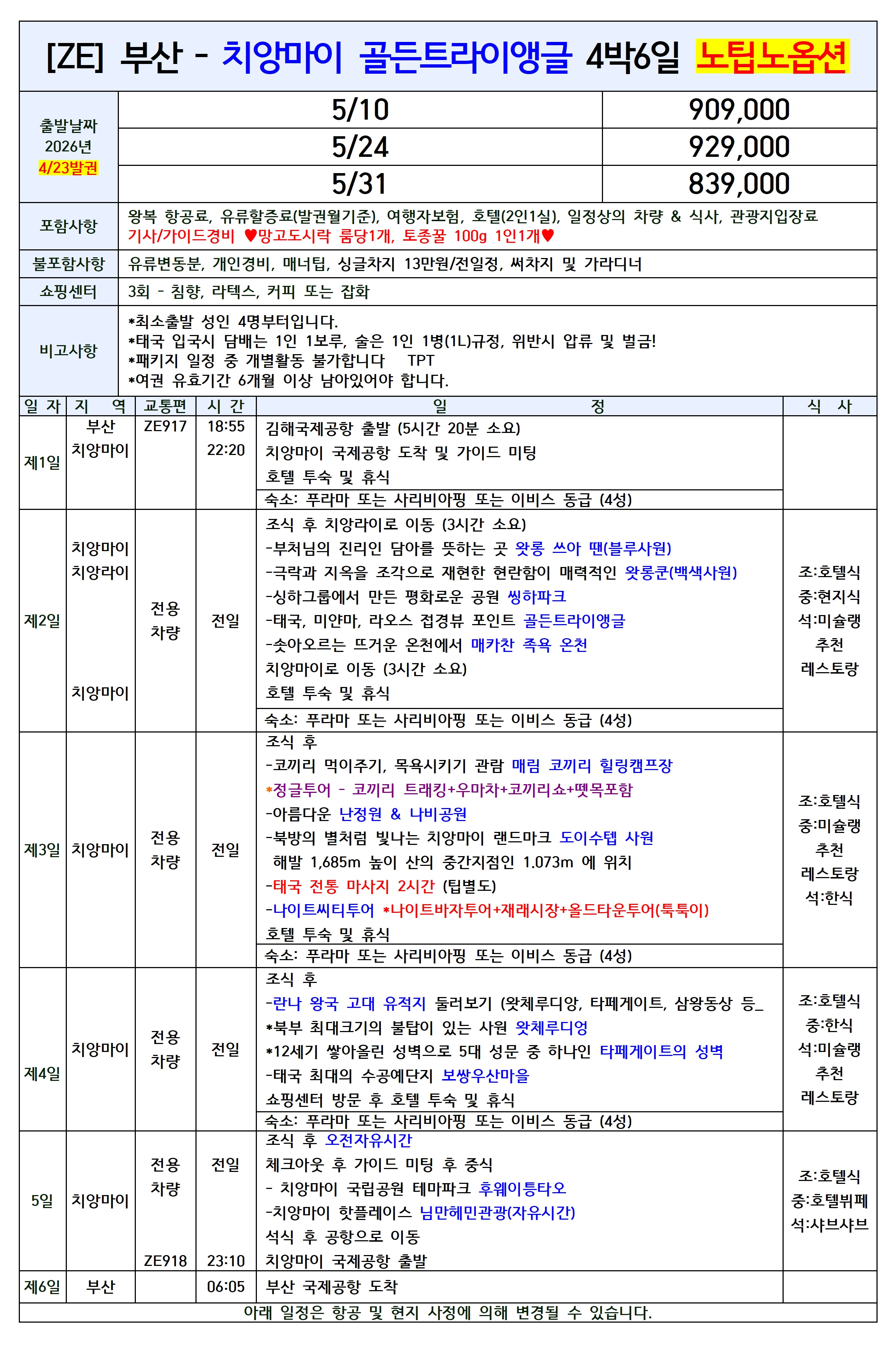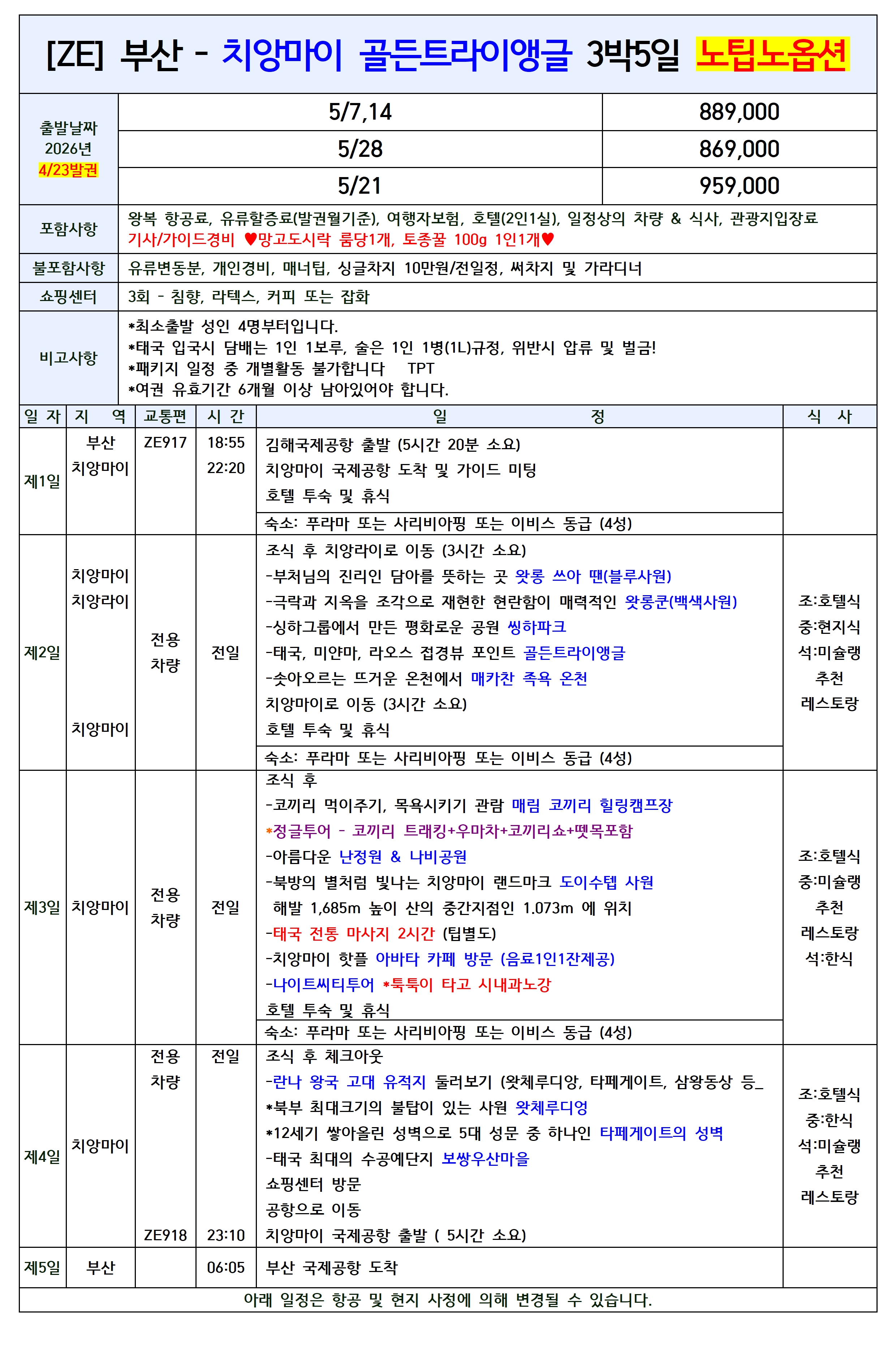 🚨선착순특가/집중모객🚨 [부산출발] 치앙마이 치앙라이 패키지 이스타항공
