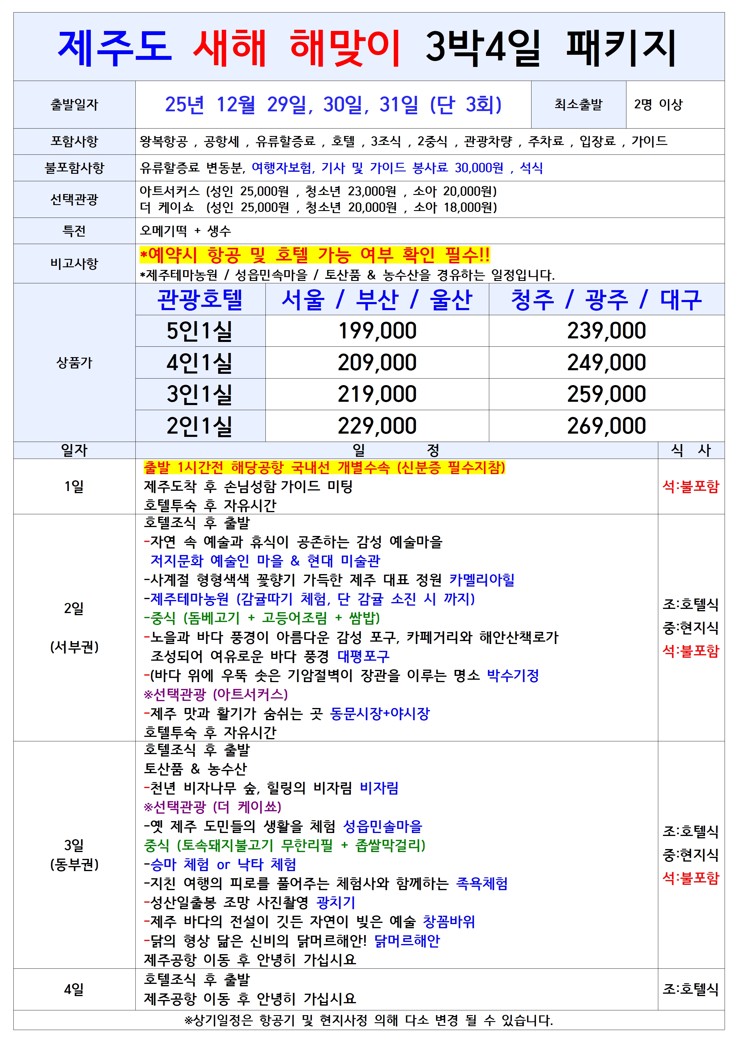 제주도 새해 해맞이 패키지 3박4일