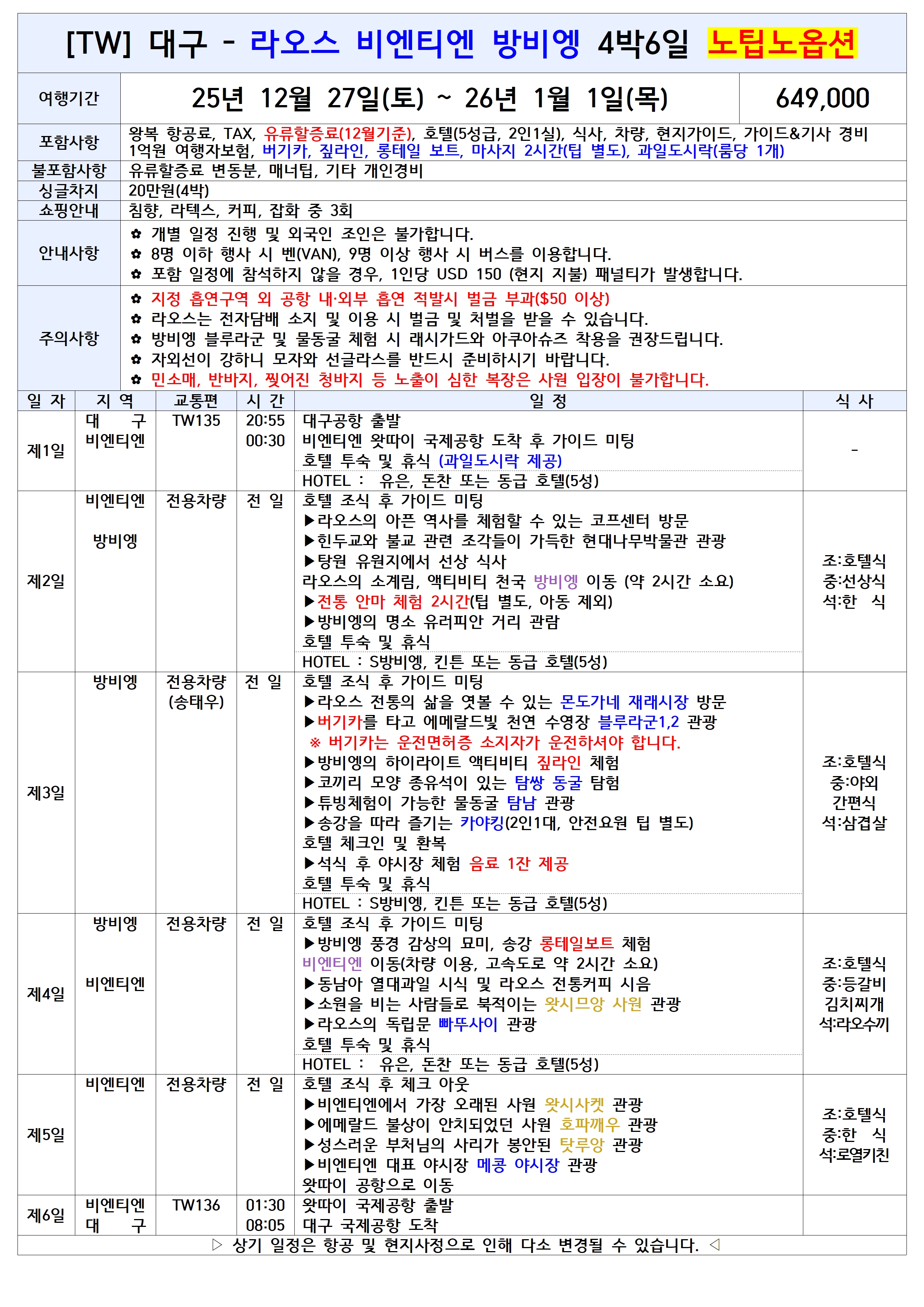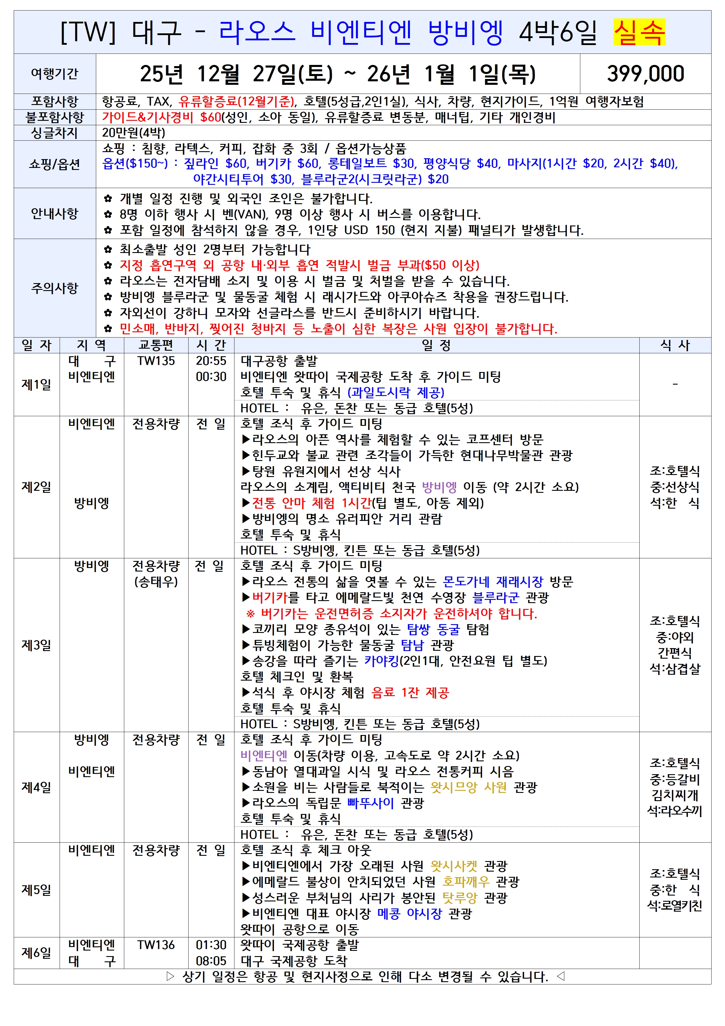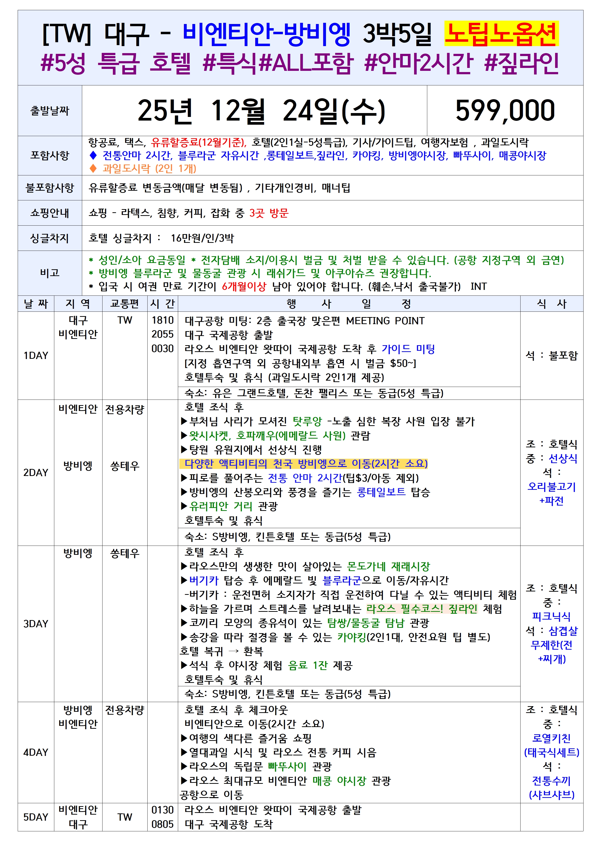 🔥선착순특가🔥[대구출발] 라오스 비엔티엔/방비엥/루앙프라방 패키지