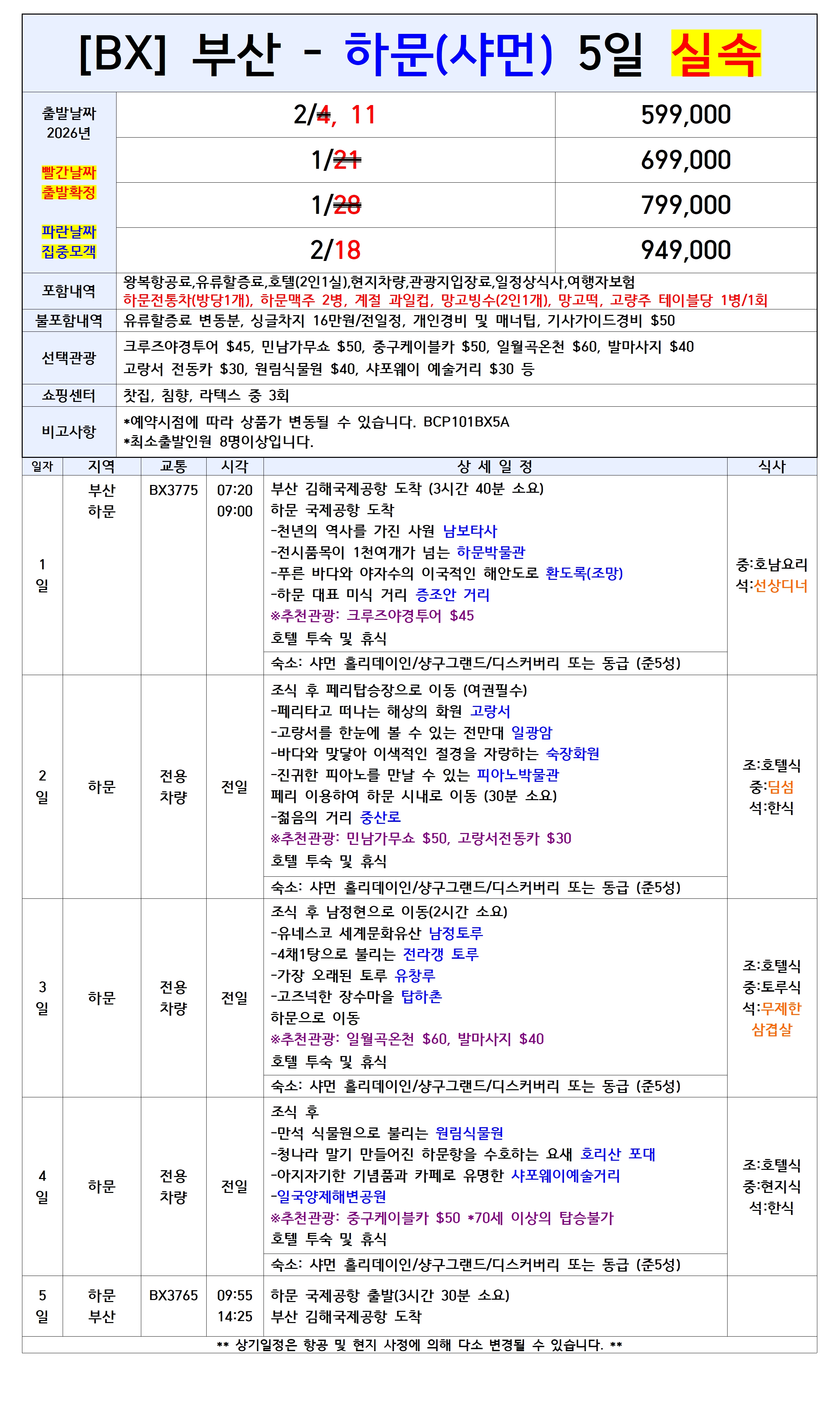 [부산출발] 하문(샤먼) 4일/5일 실속/품격 패키지 에어부산
