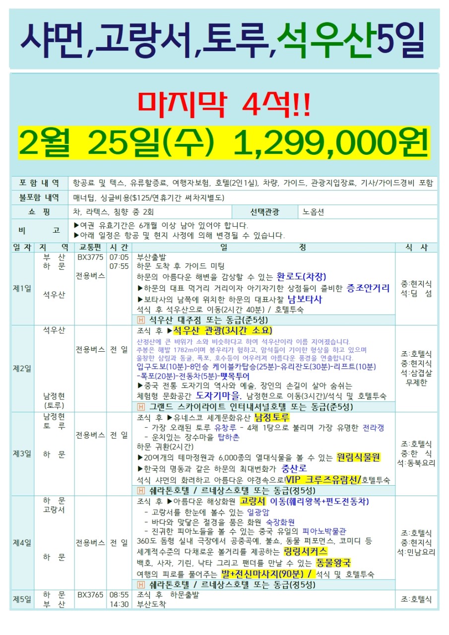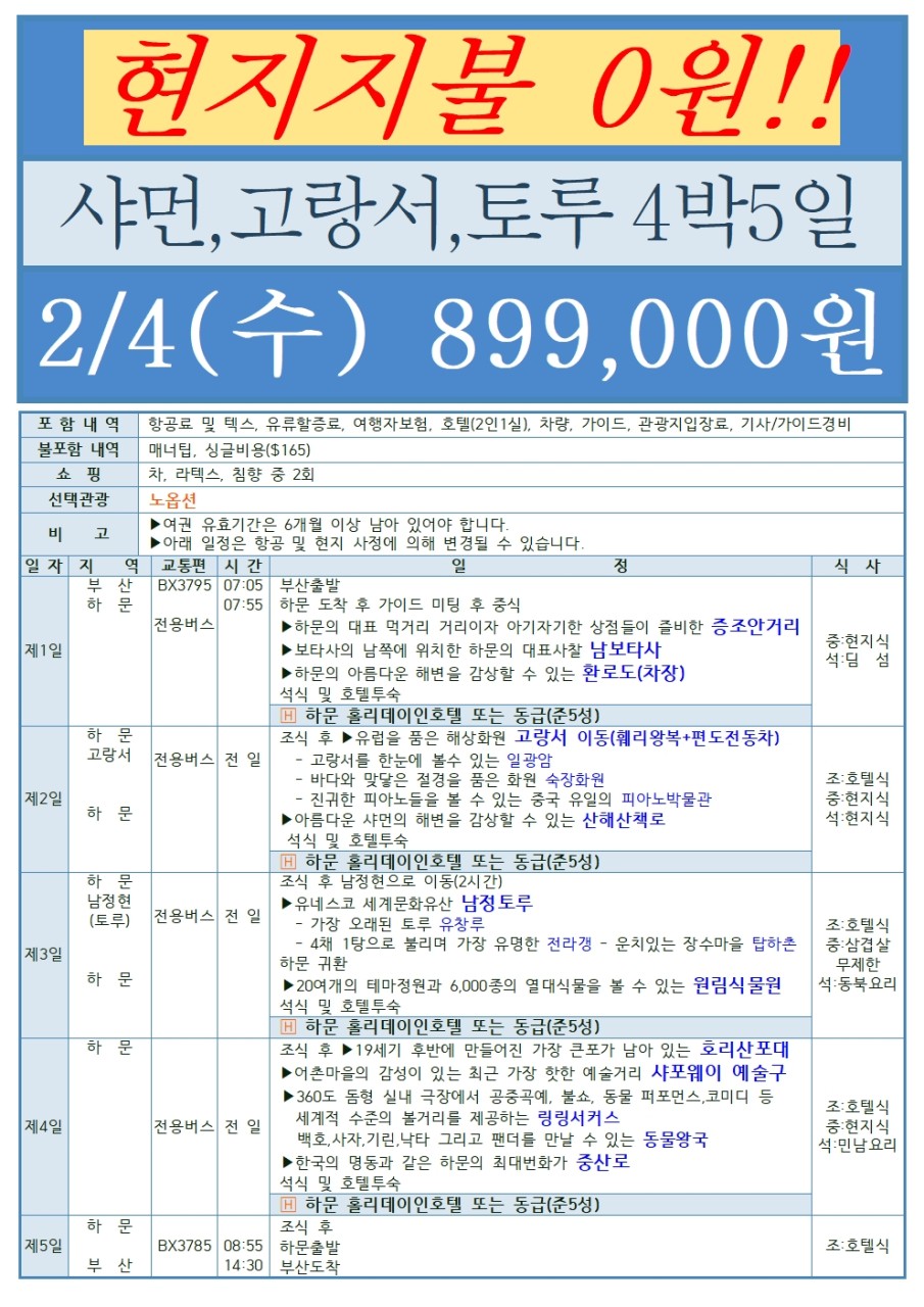 🔥선착순특가/집중모객🔥[부산출발] 하문(샤먼) 패키지