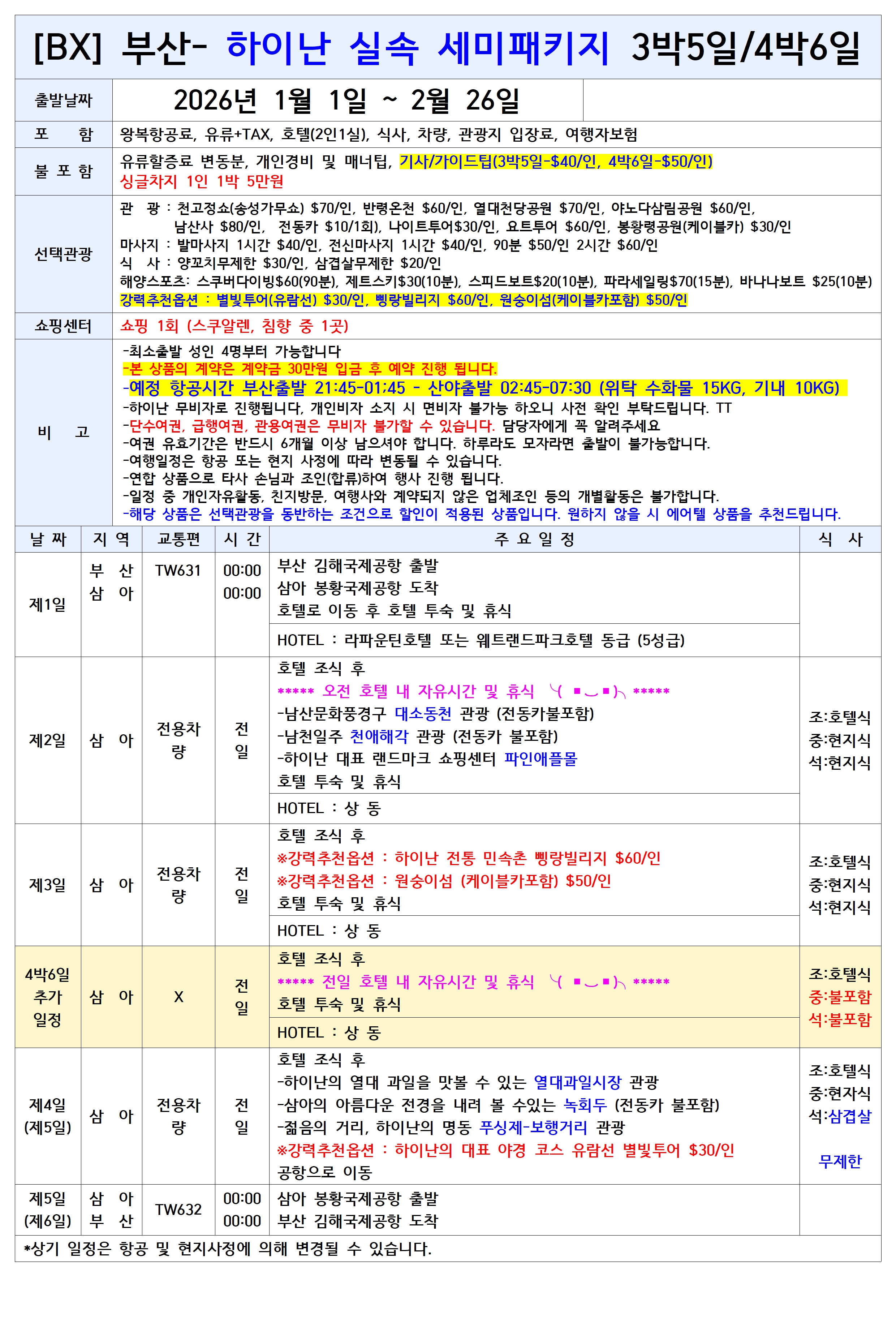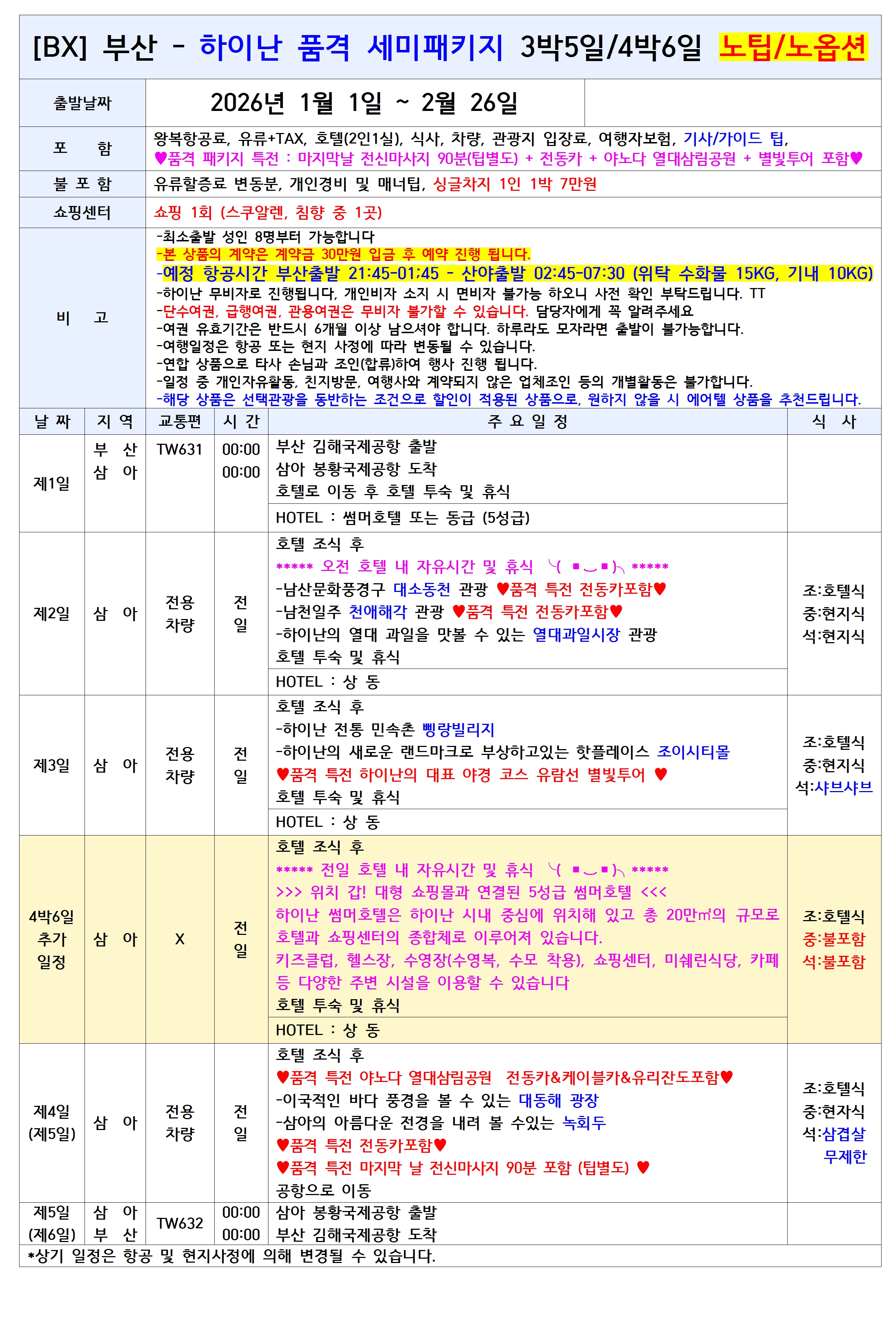 ✈️ TW 티웨이 부산-하이난 전세기