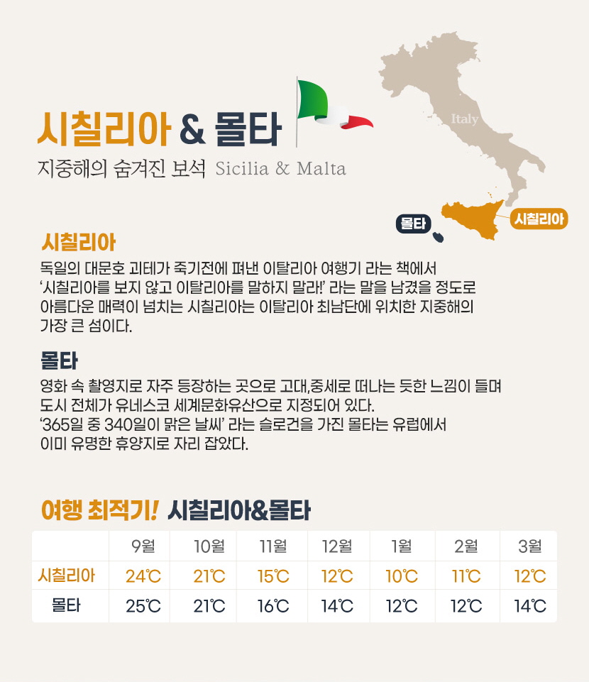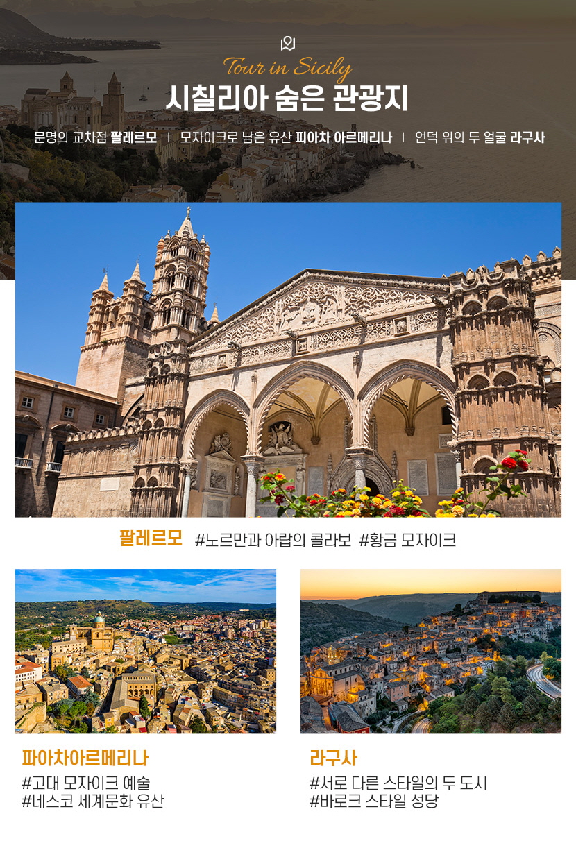 아름다운 매력이 넘치는 시칠리아는 이탈리아 최남단에 위치한 지중해의 가장 큰 섬이다