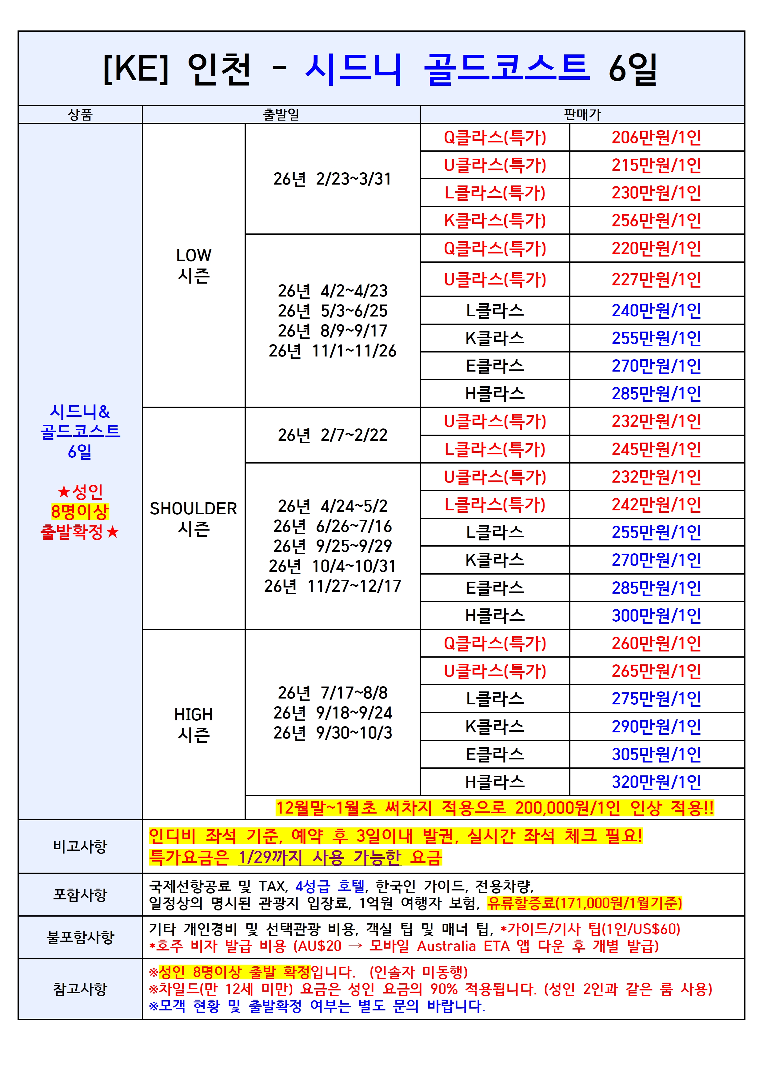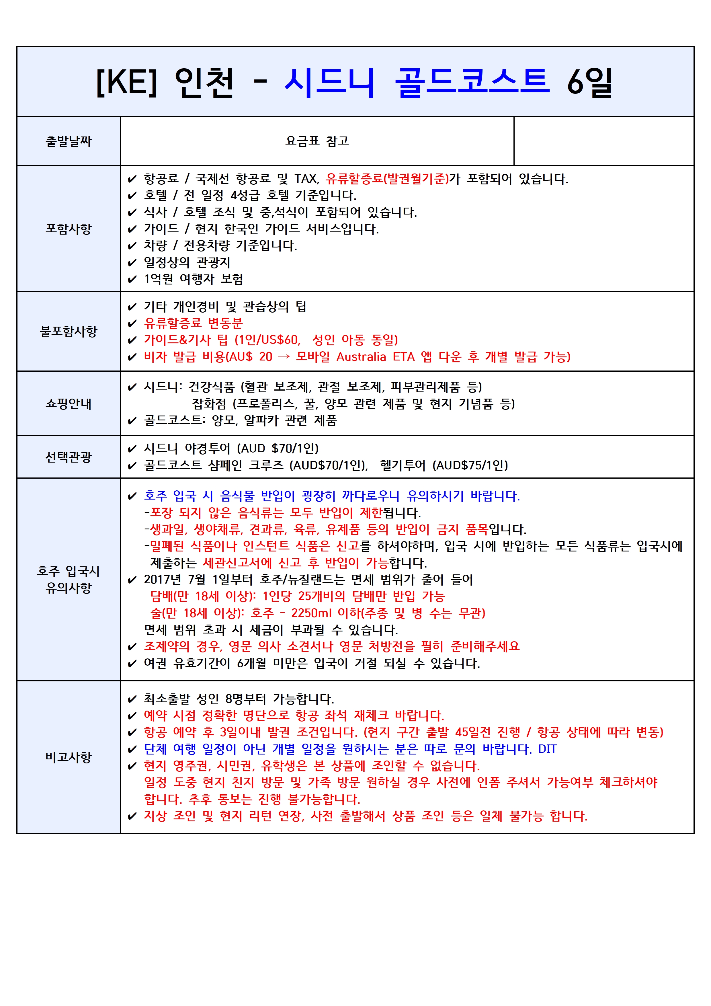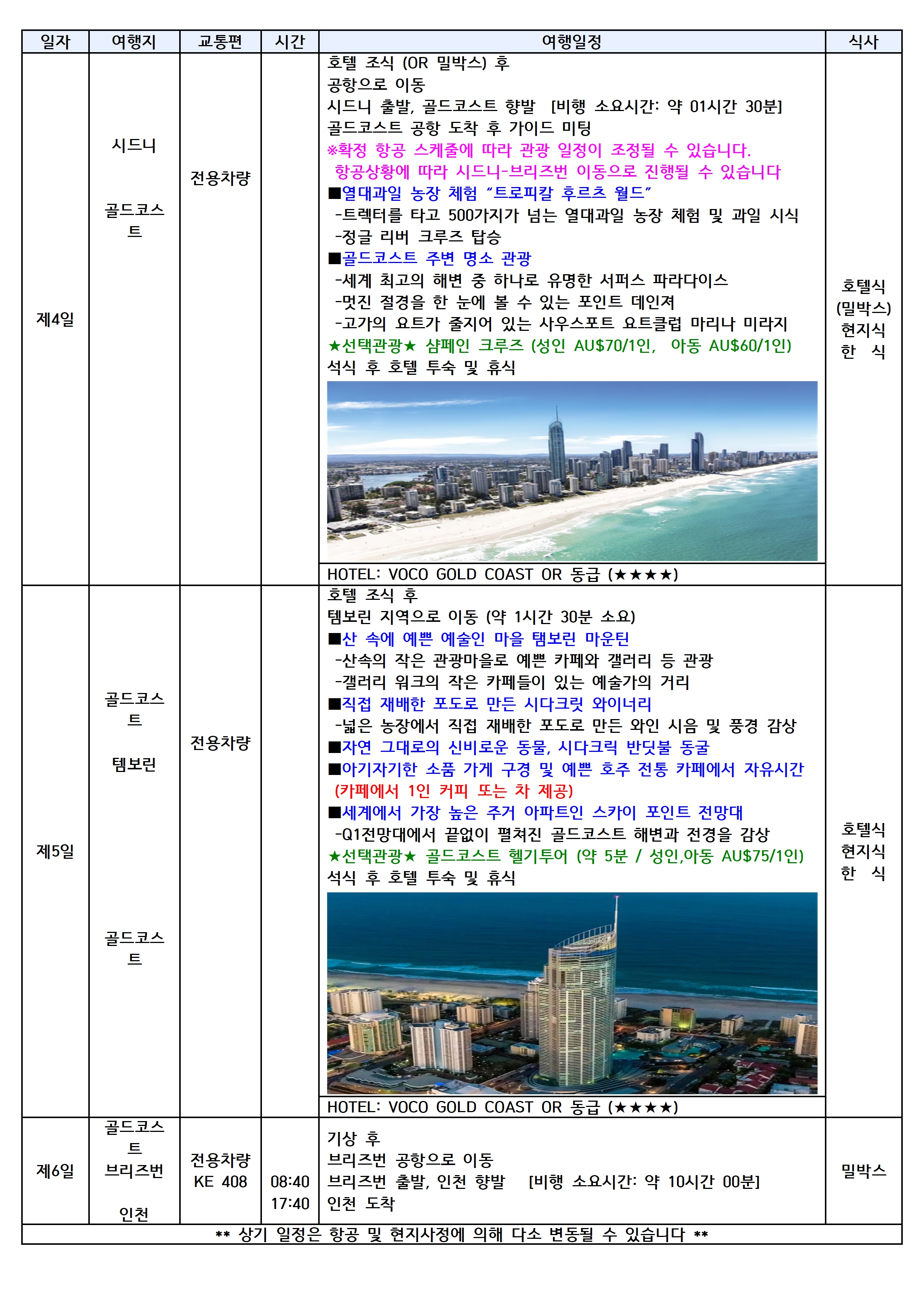 [인천출발] 시드니 골드코스트 6일 대한항공