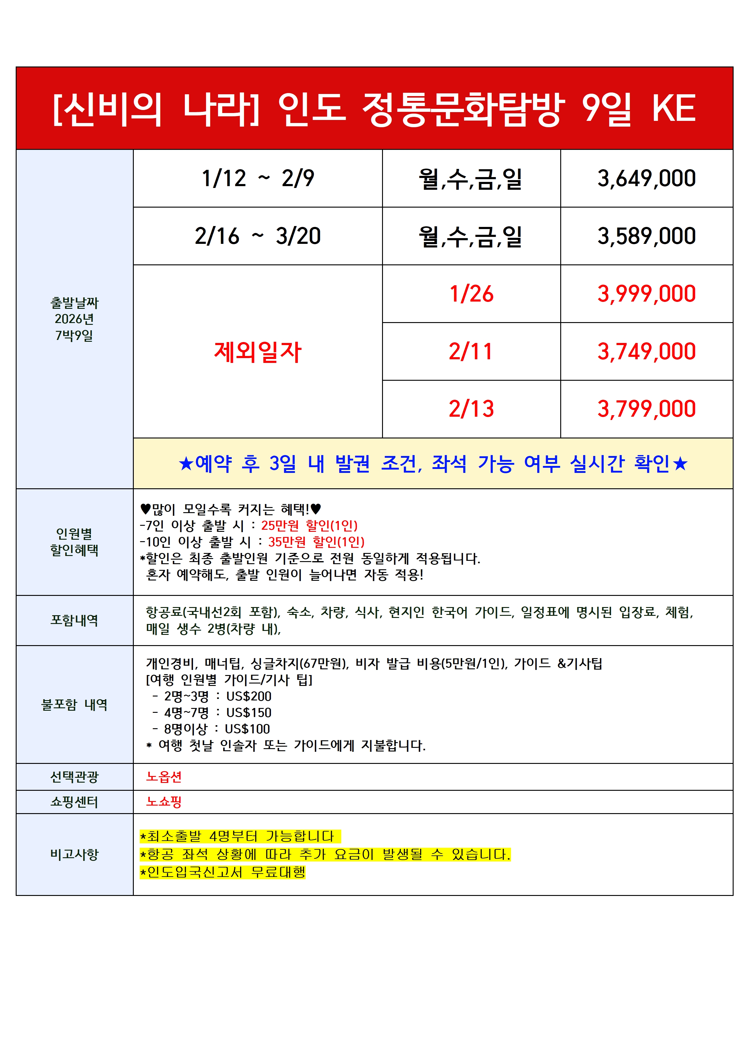 ✈️ 국내선 포함 / 4명부터 출발 확정