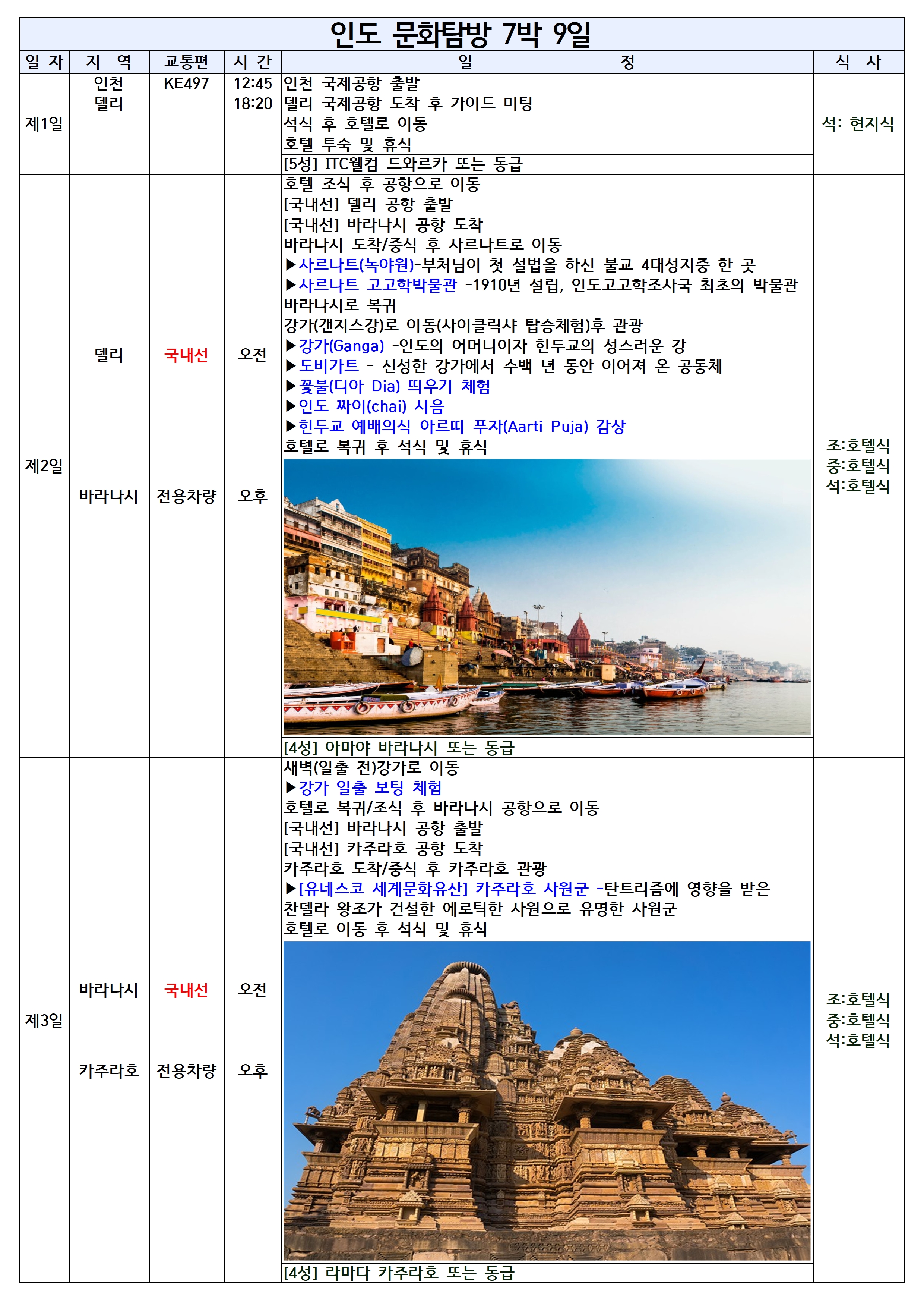 ✔️ 델리 · 바라나시 · 카주라호 · 아그라 · 자이푸르 핵심 일정