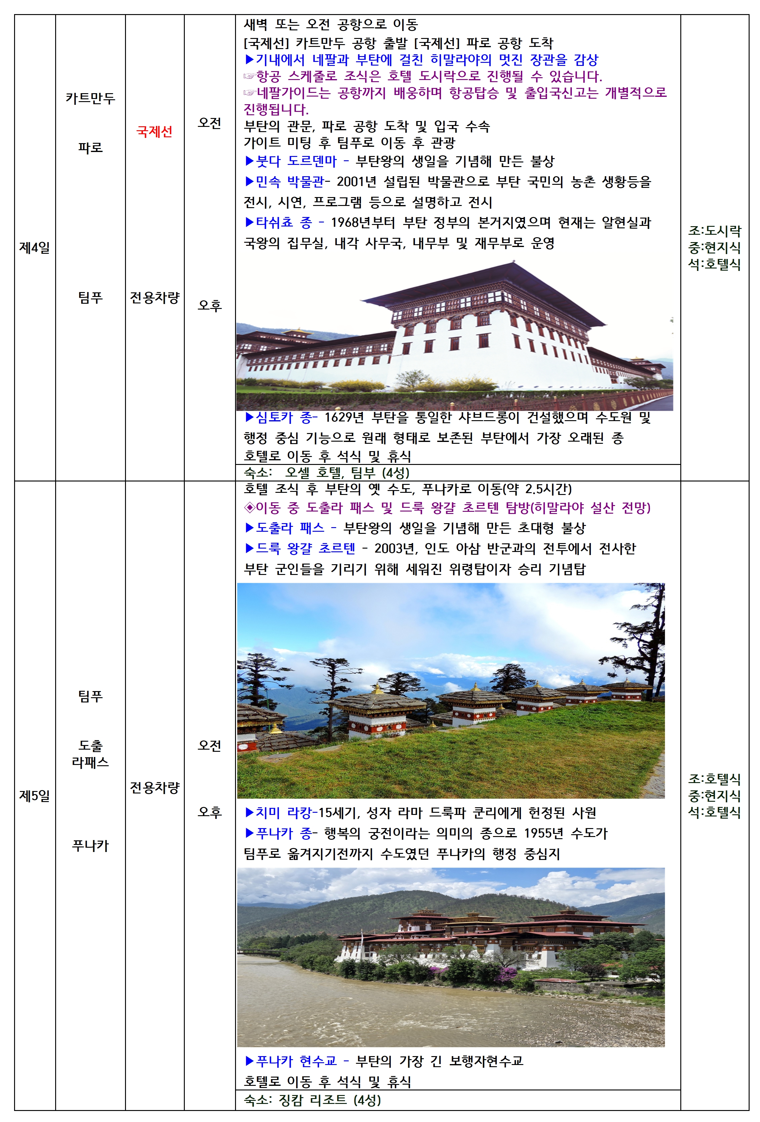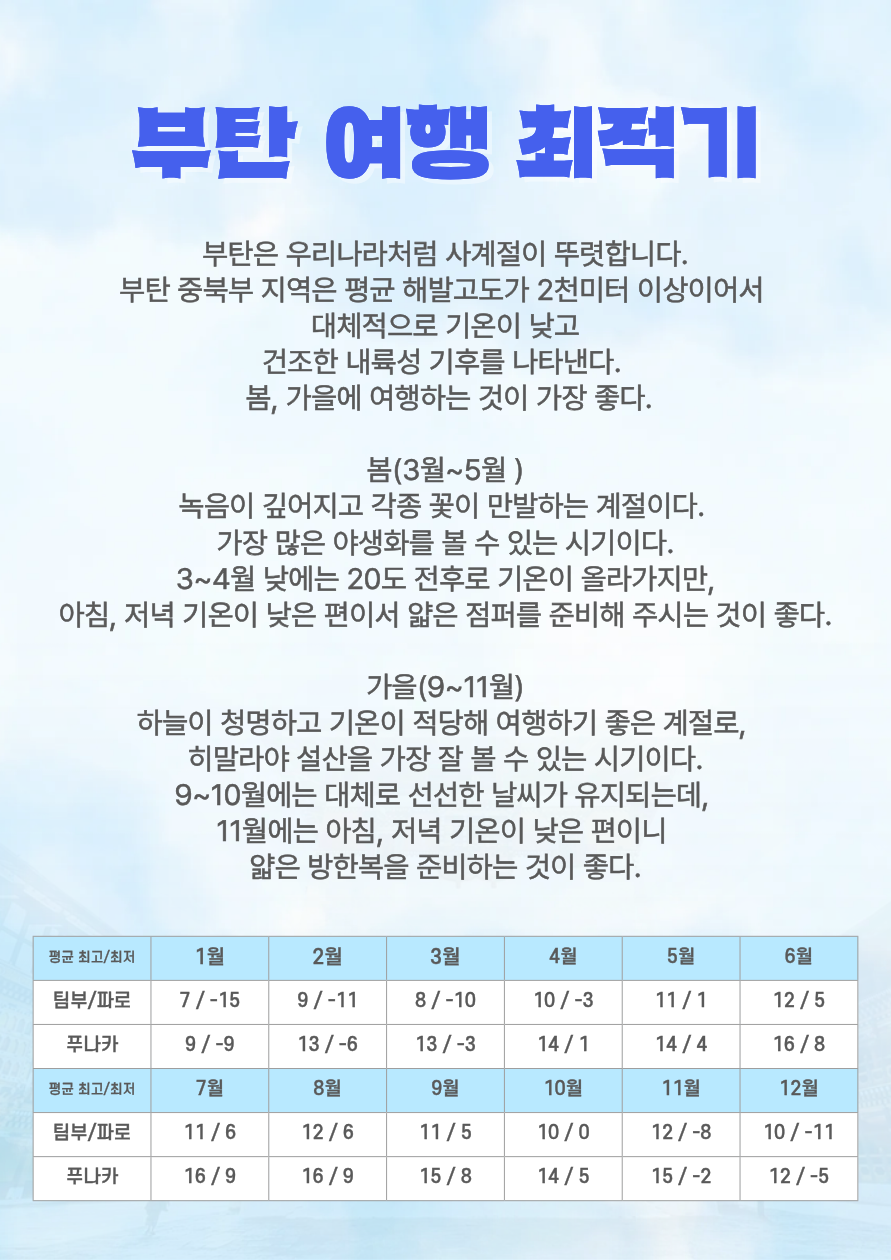 ✔️파로, 팀푸, 푸나카 등 부탄의 핵심 도시를 가장 여유롭게 탐방하는 일정
