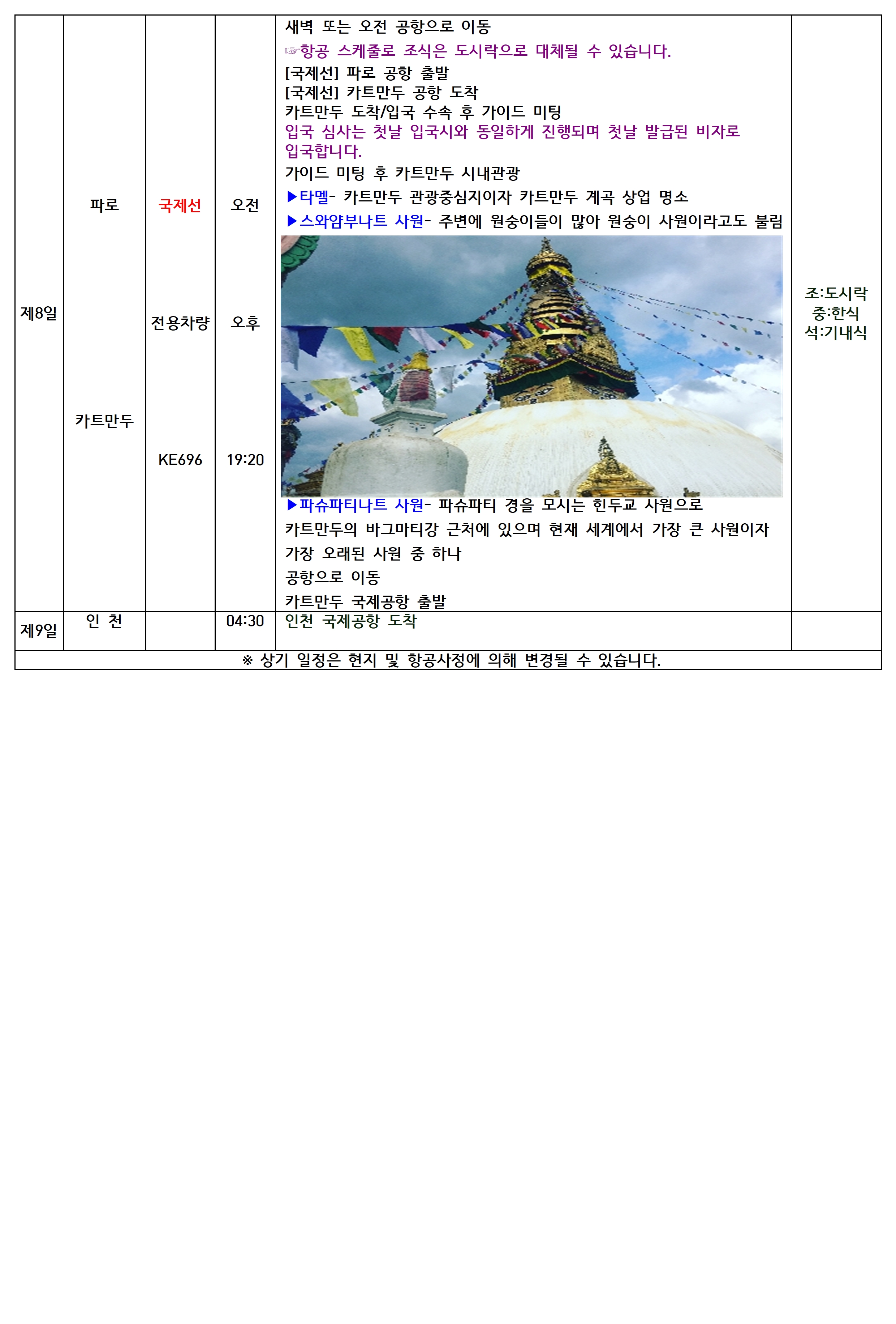 ※ 현지 기상 및 항공사 사정에 따라 일정이 변경될 수 있습니다. 🙏