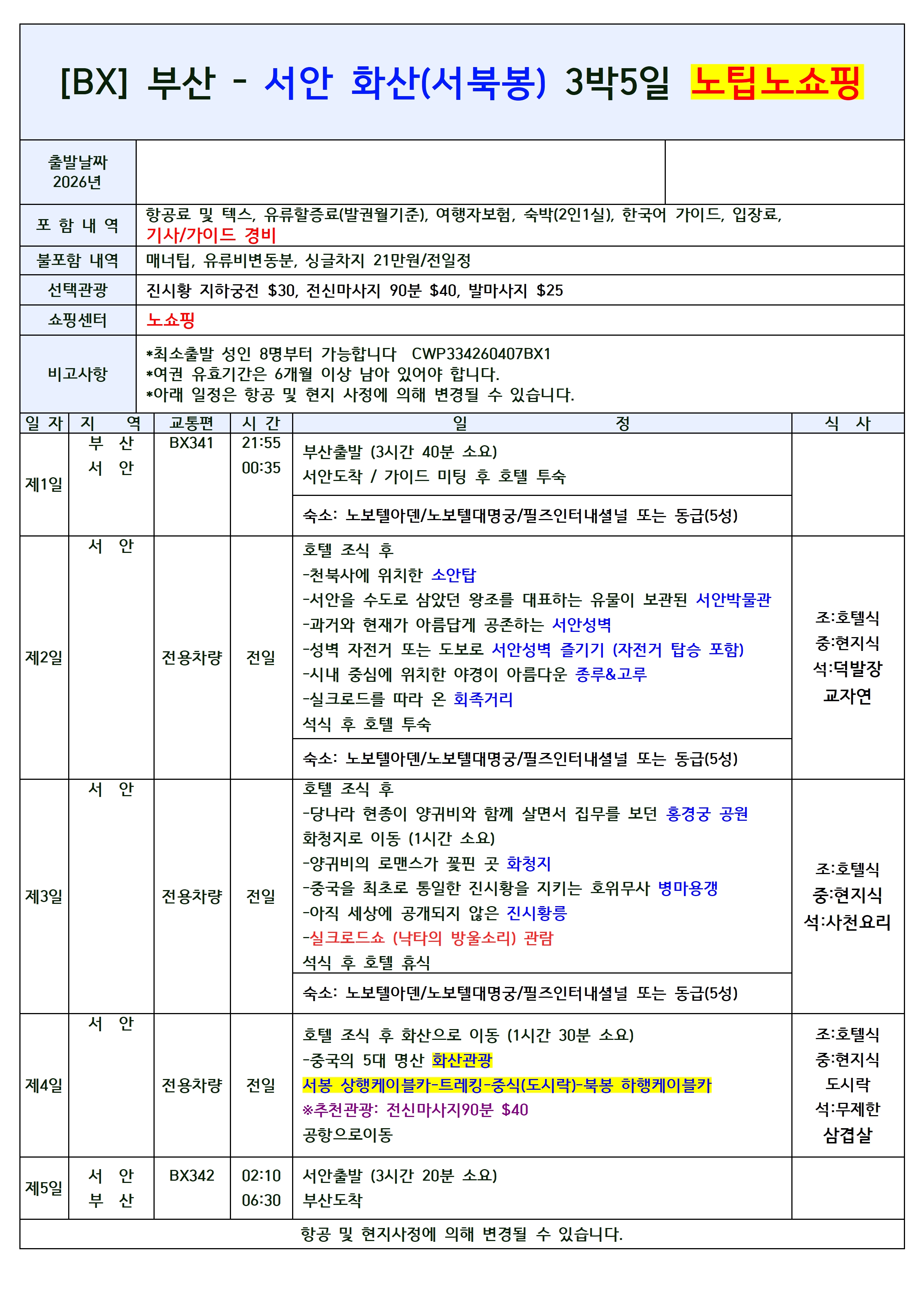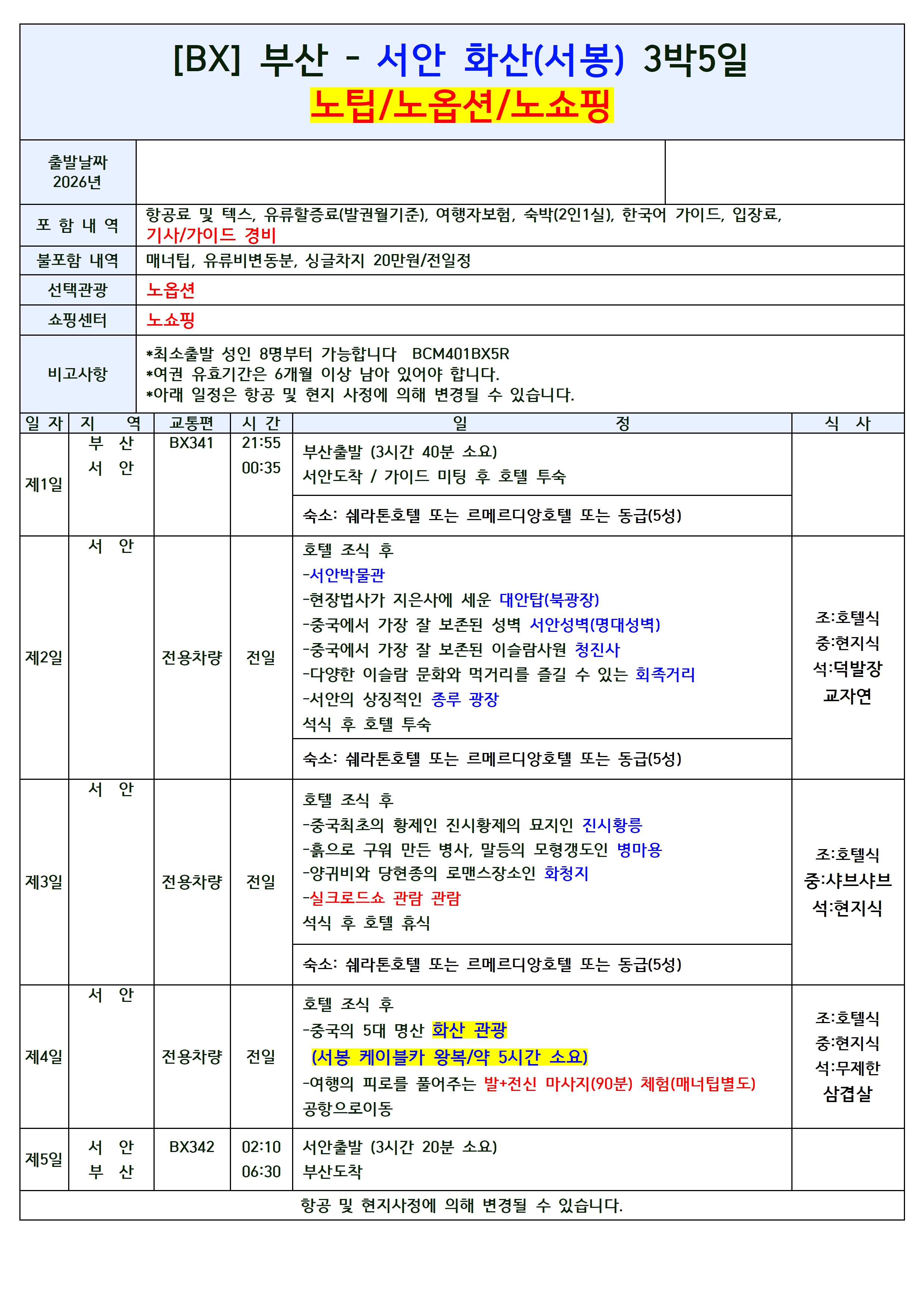 🎯[노쇼핑/노옵션/노팁] 추가경비無 프리미엄 상품