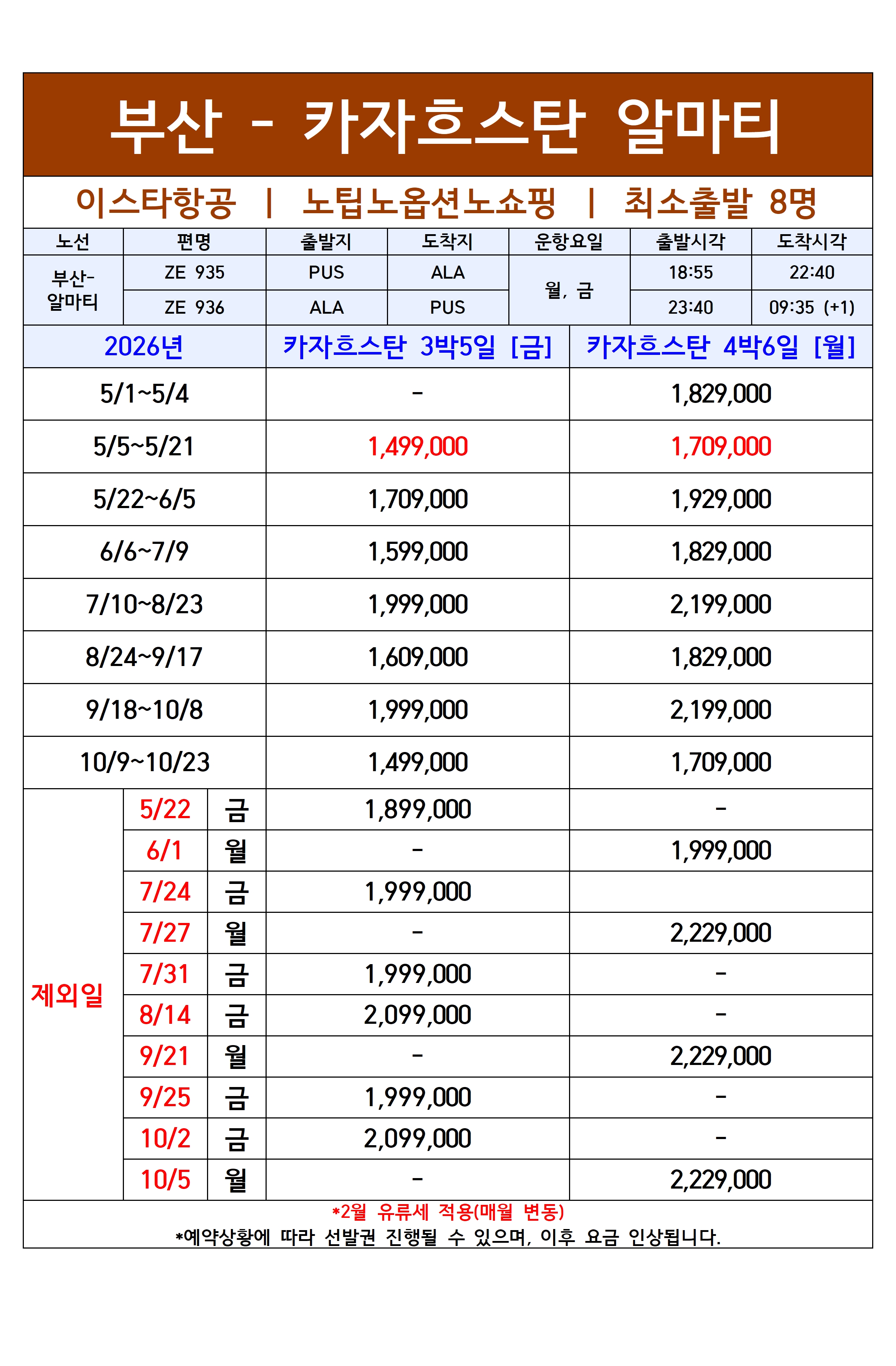 🎀 부산 - 카자흐스탄 알마티 직항 취항 🎀