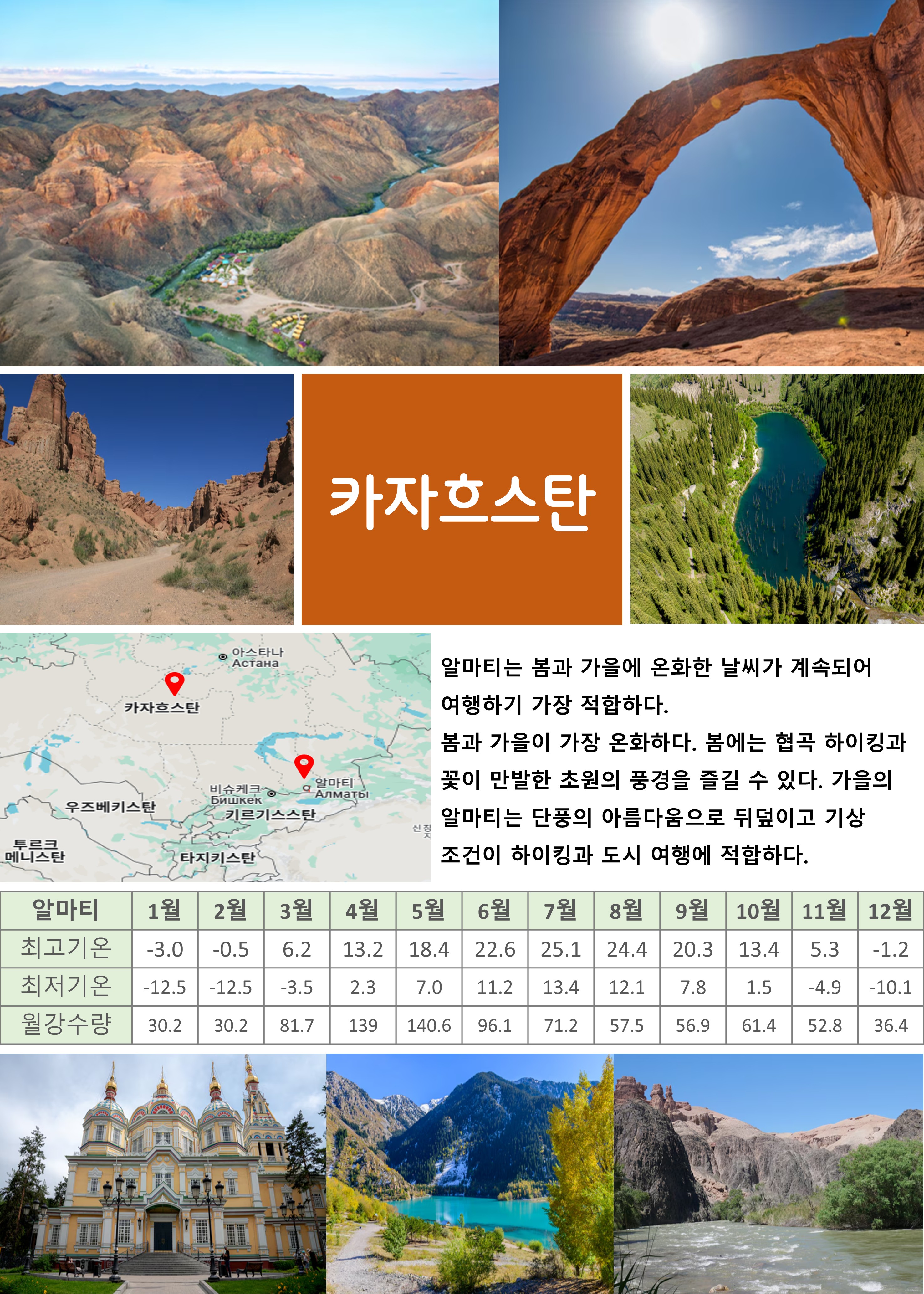 카자흐스탄의 대표 도시 알마티를 중심으로 근교와 시내 자연경관 탐방